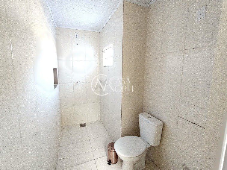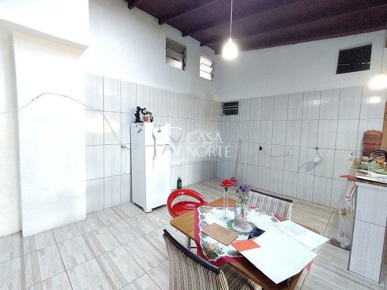 Casa com 2 dormitórios, banheiro social, cozinha e sala integradas, e lavanderia no primeiro pavimento. Área com churrasqueira
