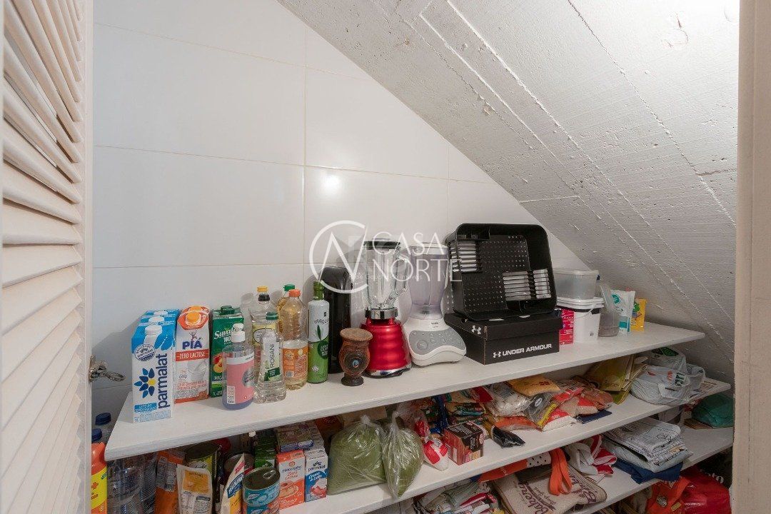 Cozinha fechada, com despensa para alimentos e armários planejados.