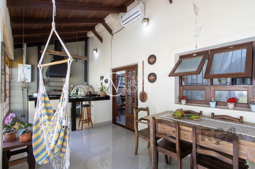 Casa com 02 pavimentos, 03 dormitórios sendo 01 suíte, sala para dois ambientes, lareira, cozinha com móveis planejados, churrasqueira, forno para pizza, lavanderia, hidromassagem e pátio com piscina, garagem para 04 carros sendo 02 cobertas.
