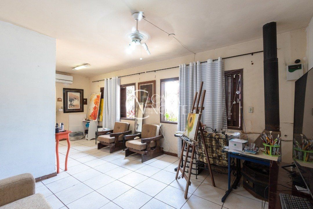 Casa em alvenaria, com 2 andares independentes, sendo que no andar térreo 3 quartos sendo 1 suite, sala ,ante sala e cozinha. Andar superior 3 quartos sendo 1 suite e cozinha, sacada e jardim de inverno.. Edícula com 1 quartos, sala e cozinha integradas e entrada independente. Piscina em funcionamento.
