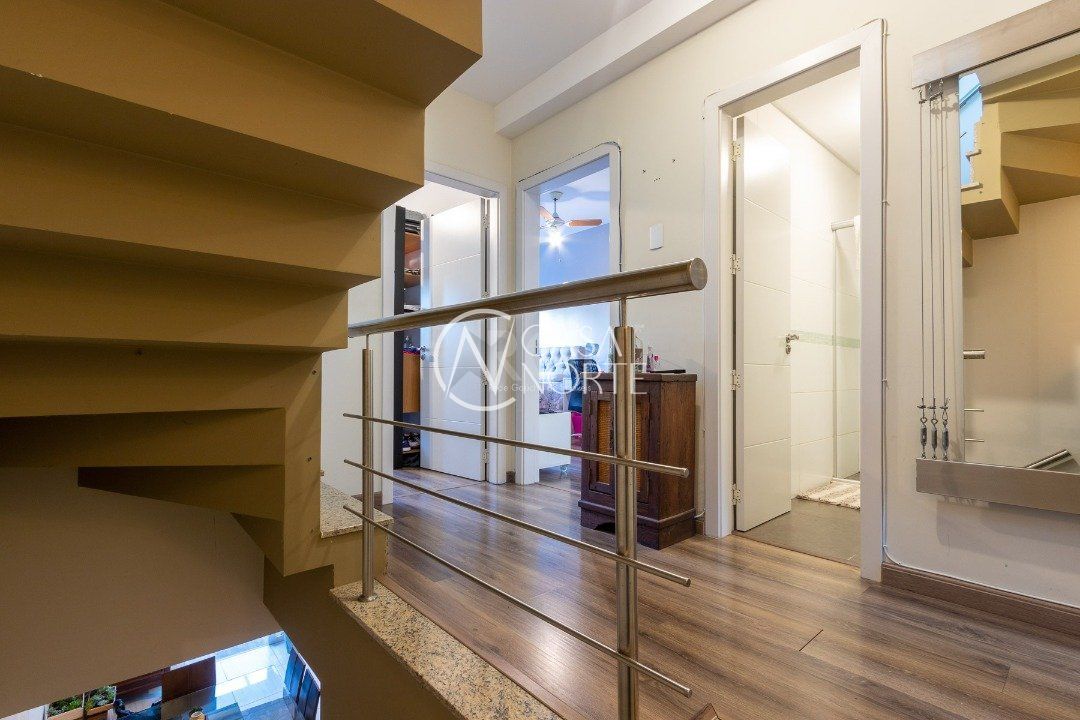Ótima casa em condomínio no Bairro Tristeza, zona sul de Porto Alegre, pertinho do Rio Guaíba e do centro comercial do Bairro, living para três ambientes, lavabo, cozinha com churrasqueira, segundo andar três dormitórios sendo uma suite banheiro auxiliar, piso com laminado, sótão, transformado na suíte do casal, mais terraço, 02 vagas de carro.