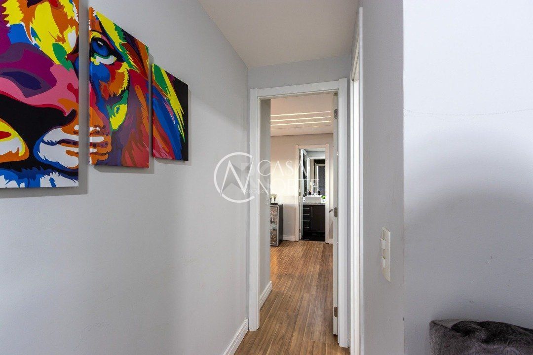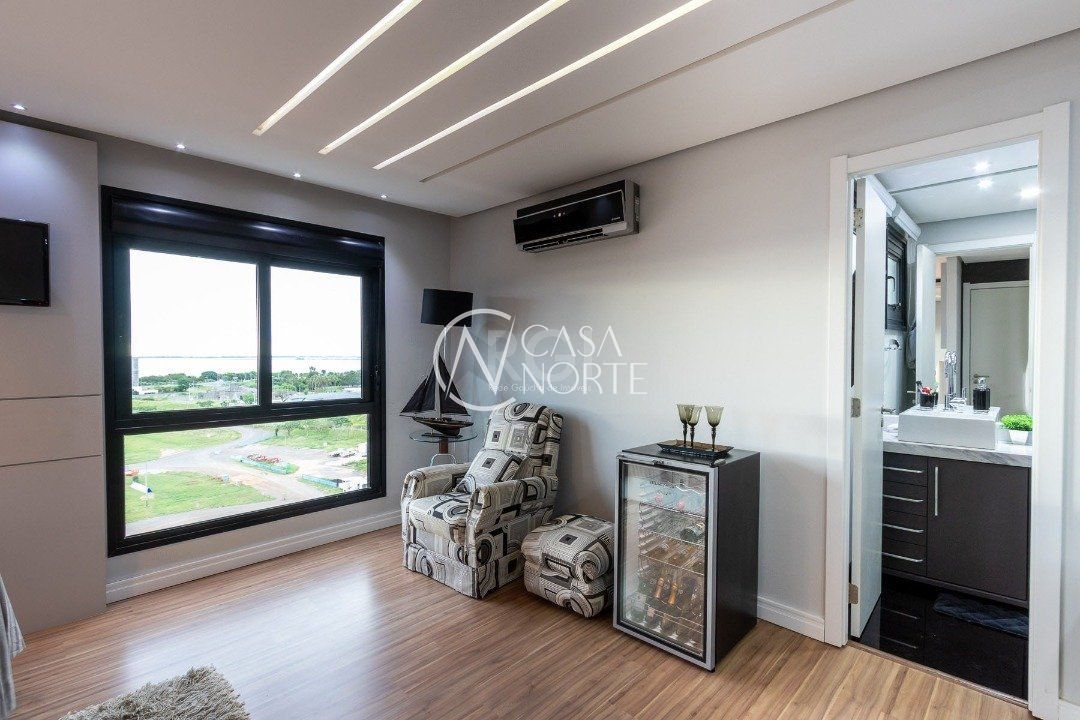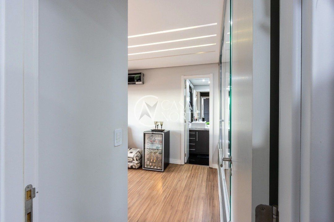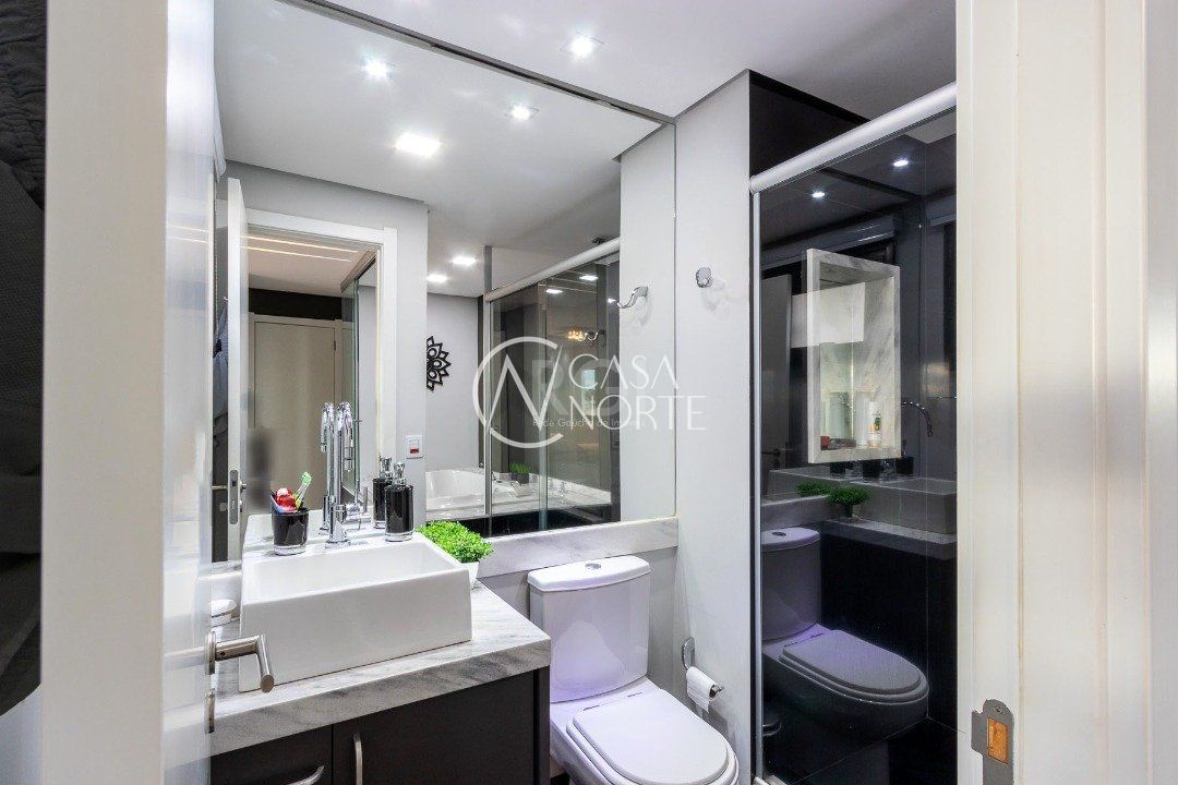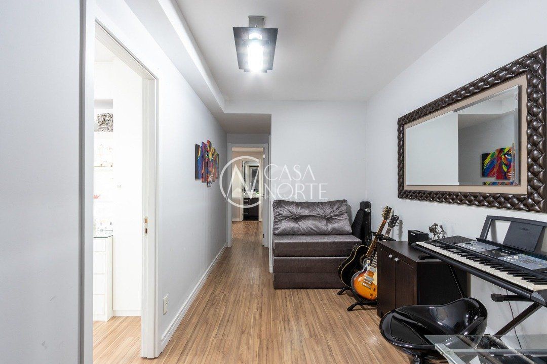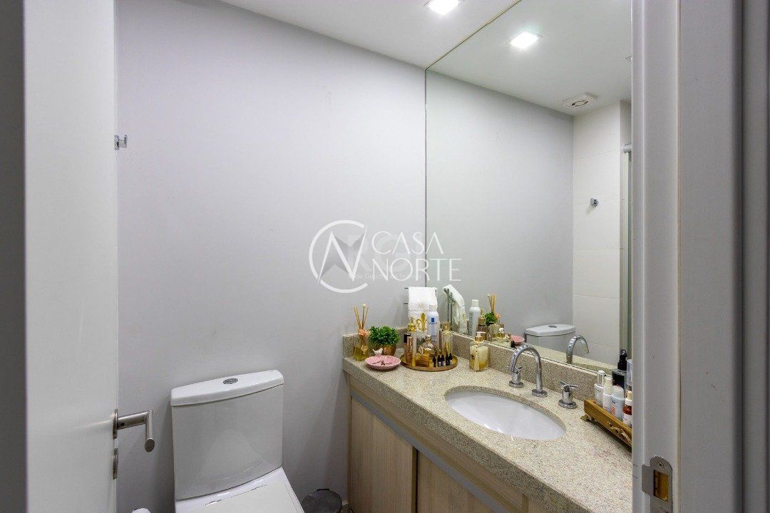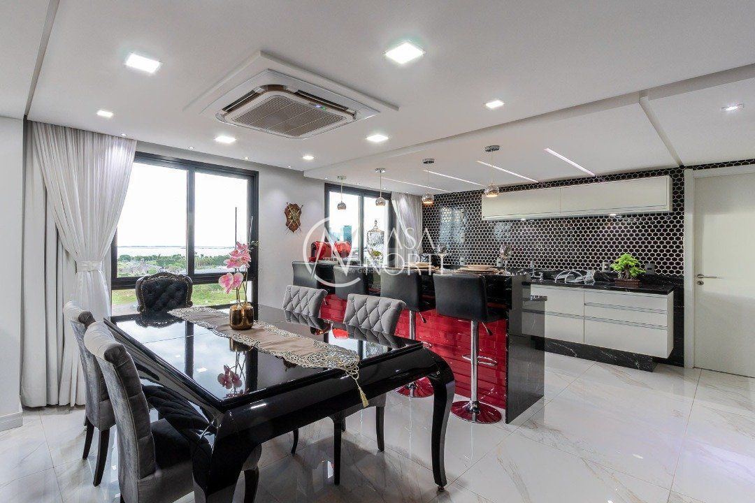 Duplex, dois dormitorios reversível para tres, com suíte master (hidromassagem), banheiro no andar superior e lavado social no piso inferior. Todas as peças com móveis sob medida, closet, escritório/sala de estudo, escada com mármore preto galáxia, bancadas e pias tbm, piso porcelanato no andar de baixo e laminado no superior, revestimento de parede com madeira, bar com iluminação e parece da escada com revestimento em tijolos. Área de serviço separada e tres vagas de garagem. Ar condicionado em todas as peças, sendo um K7 de 48 mil btus no andar inferior.