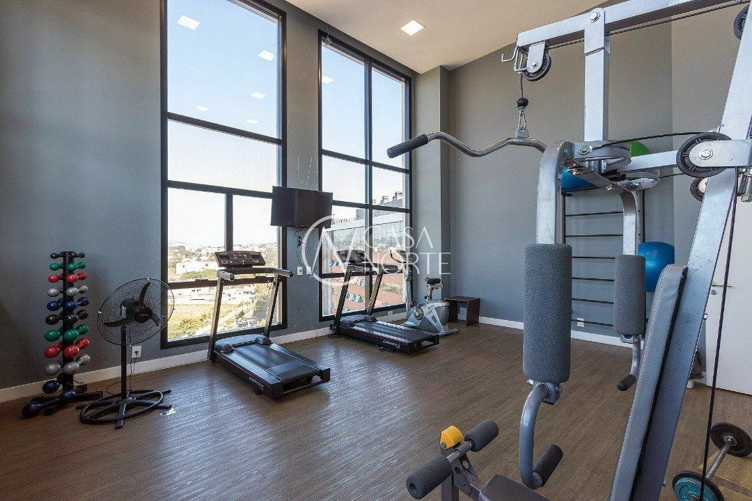 Condomínio conta com salão de festas, terraço coletivo, elevador, piscina, academia, bicicletário, portaria e circuito interno de câmeras.