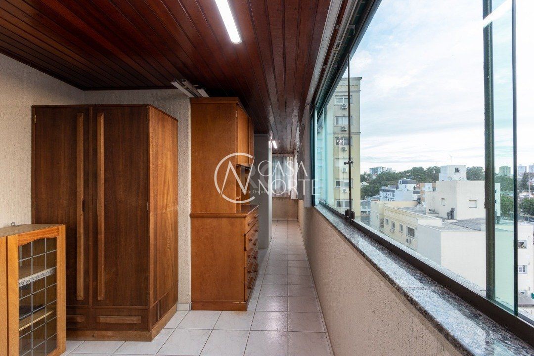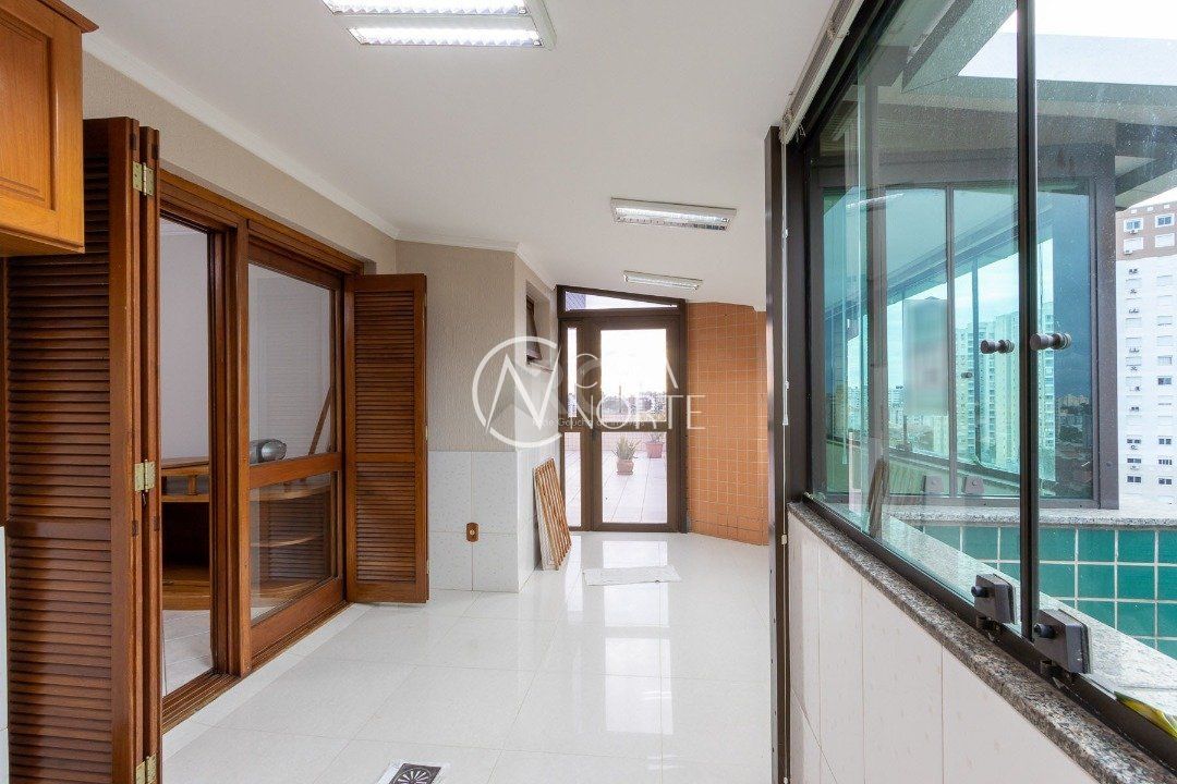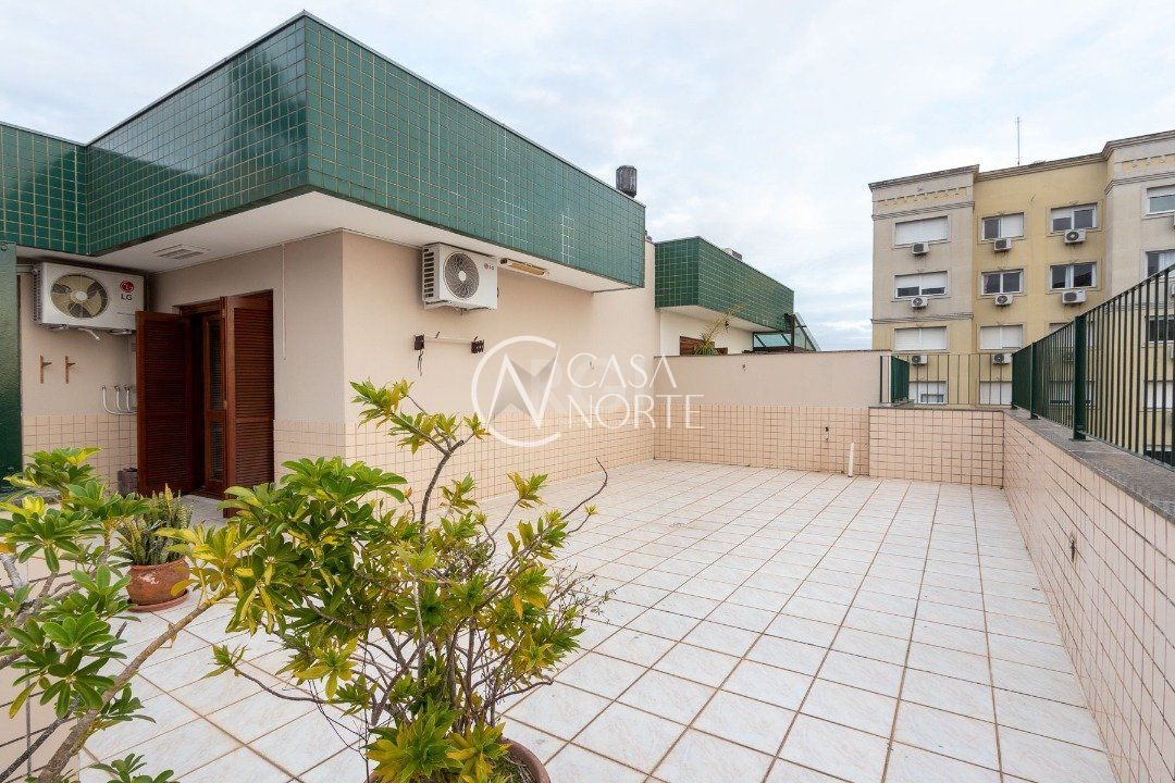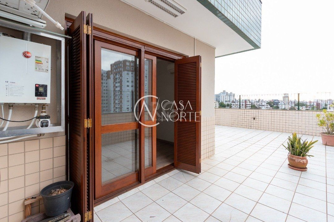 Cobertura com 3 dormitórios no bairro Vila Ipiranga, 247,08m² de área privativa.Cozinha mobiliada e balcão em granito com fogão cooktop, ampla sala de estar/jantar. Sacada de frente fechada, em separado, com vista perene e ensolarada. Área de serviço fechada equipada com armários e tanque. Na parte superior com acesso por escada em madeira nobre da cobertura (não é caracol). Área gourmet, com balcão e churrasqueira, climatizada e armários. Sala de TV com sofá, climatizada e home theater instalado e armário. Banheiro completo. Sala fechada com vidro. Amplo pátio com espera para piscina e ou instalação de pergolado. Possui dois box-garagem cobertas (lado a lado). Aquecimento a gás, com dois aquecedores para os três banheiros e as duas cozinhas. Todas as aberturas e esquadrias em louro frejó. Próximo a todos os recursos e muito bem localizada.
