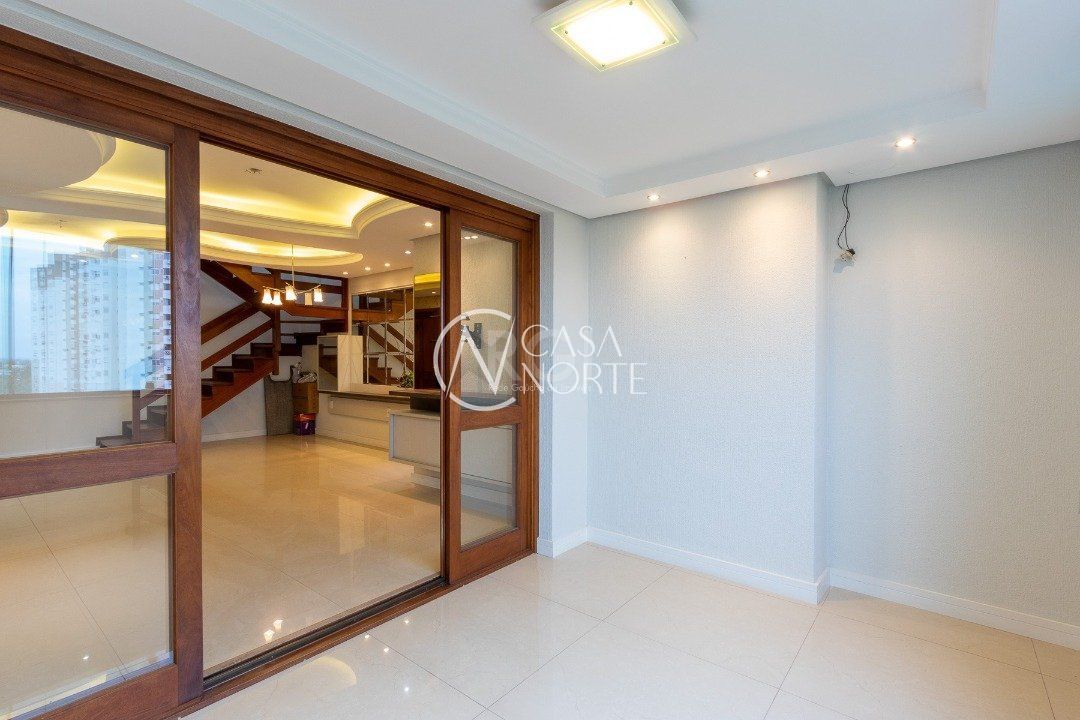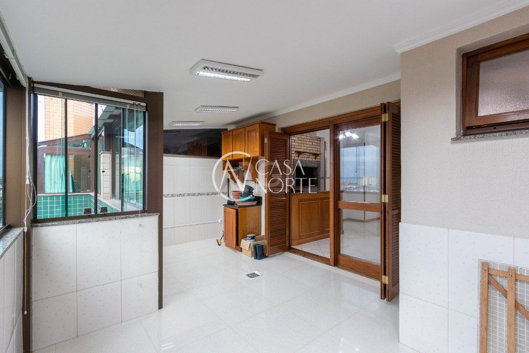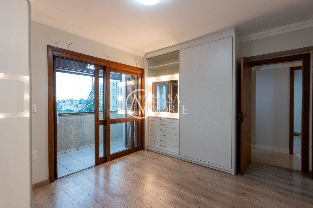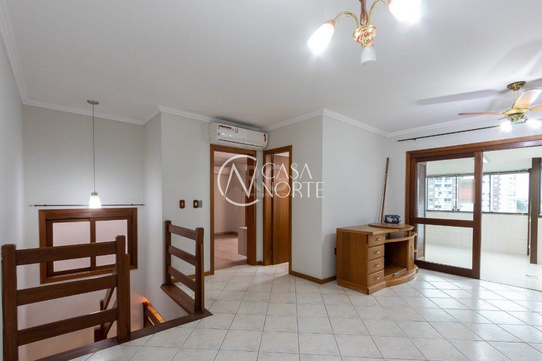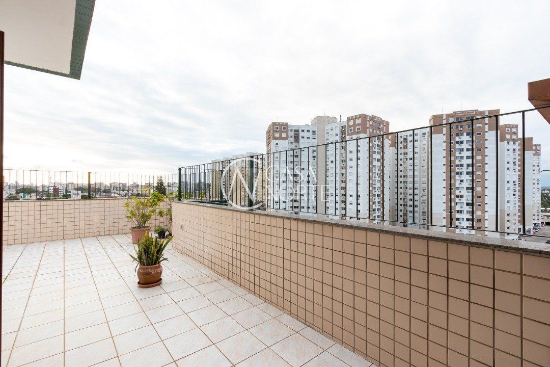 Cobertura com 3 dormitórios no bairro Vila Ipiranga, 247,08m² de área privativa.Cozinha mobiliada e balcão em granito com fogão cooktop, ampla sala de estar/jantar. Sacada de frente fechada, em separado, com vista perene e ensolarada. Área de serviço fechada equipada com armários e tanque. Na parte superior com acesso por escada em madeira nobre da cobertura (não é caracol). Área gourmet, com balcão e churrasqueira, climatizada e armários. Sala de TV com sofá, climatizada e home theater instalado e armário. Banheiro completo. Sala fechada com vidro. Amplo pátio com espera para piscina e ou instalação de pergolado. Possui dois box-garagem cobertas (lado a lado). Aquecimento a gás, com dois aquecedores para os três banheiros e as duas cozinhas. Todas as aberturas e esquadrias em louro frejó. Próximo a todos os recursos e muito bem localizada.
