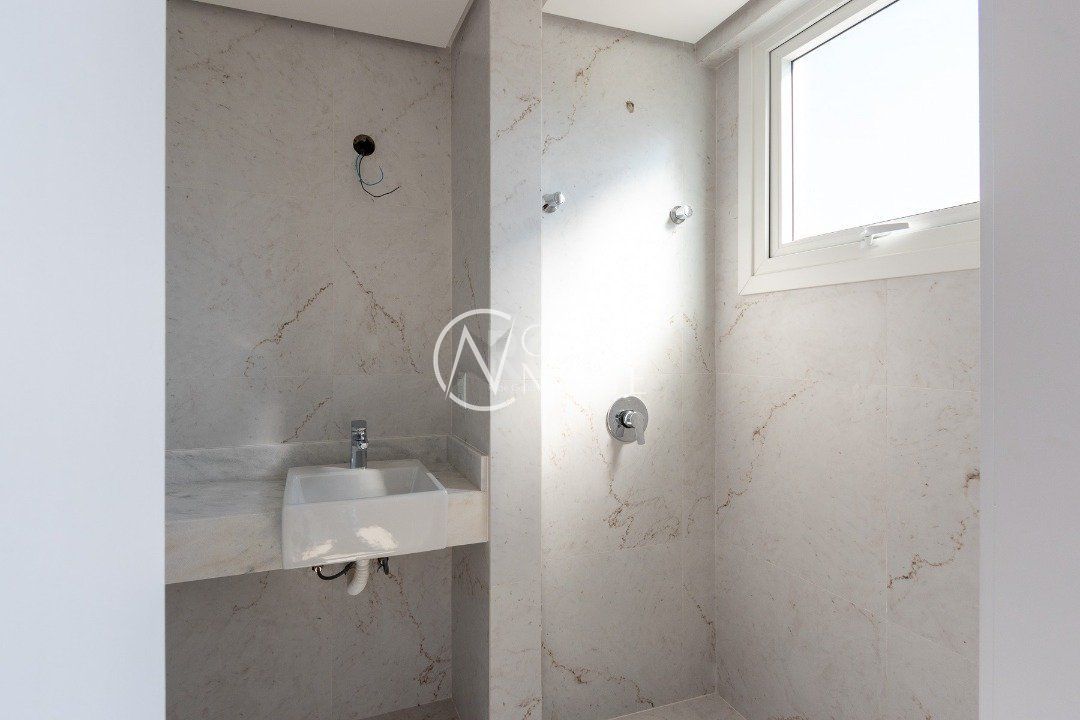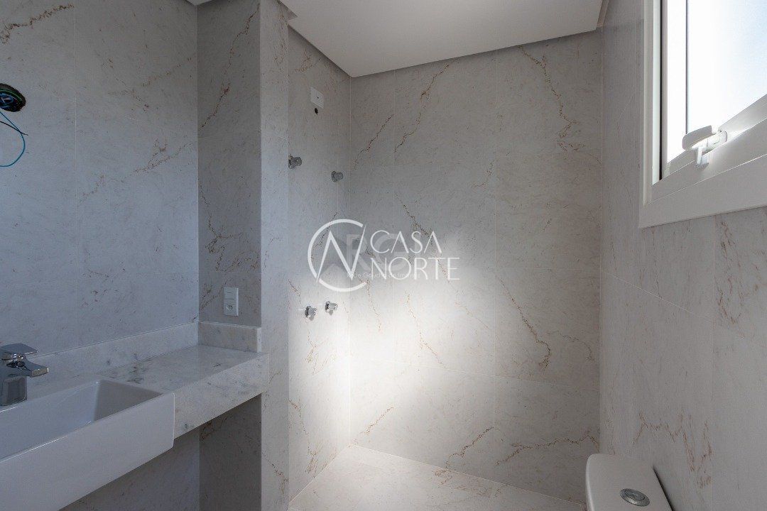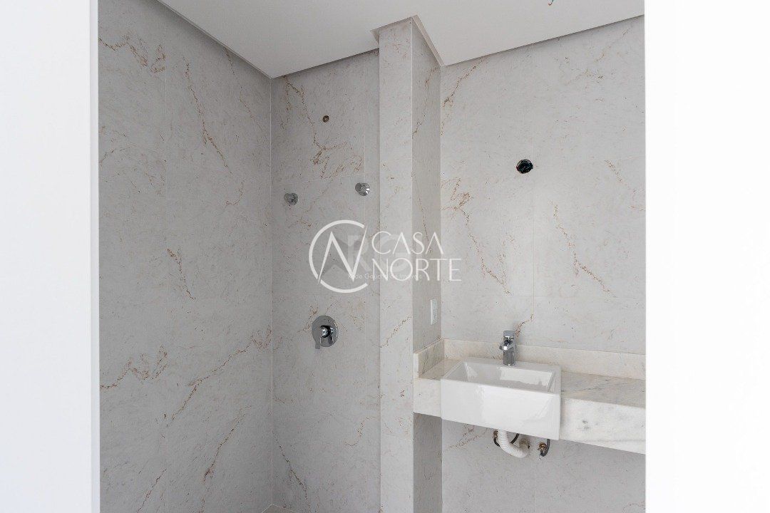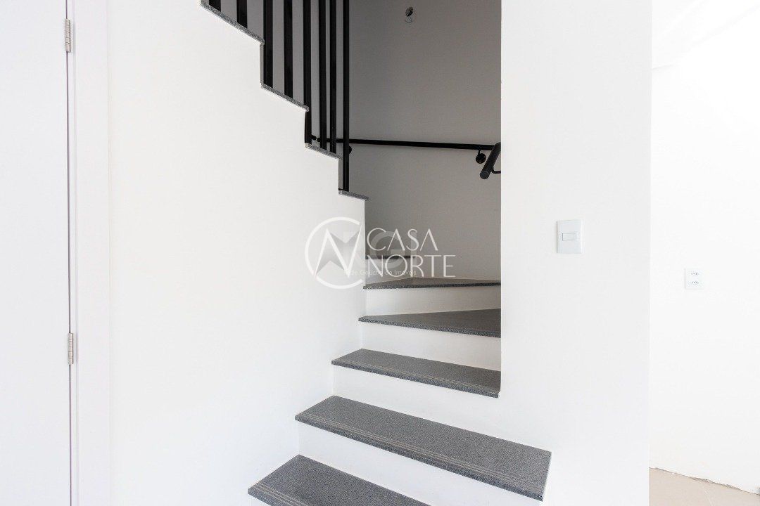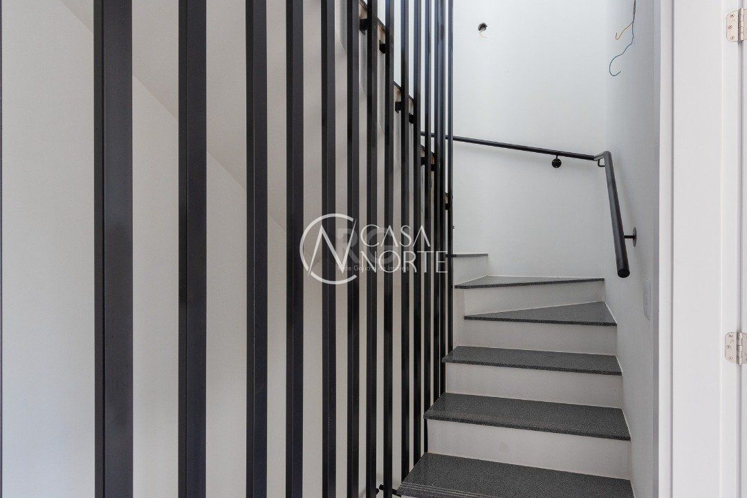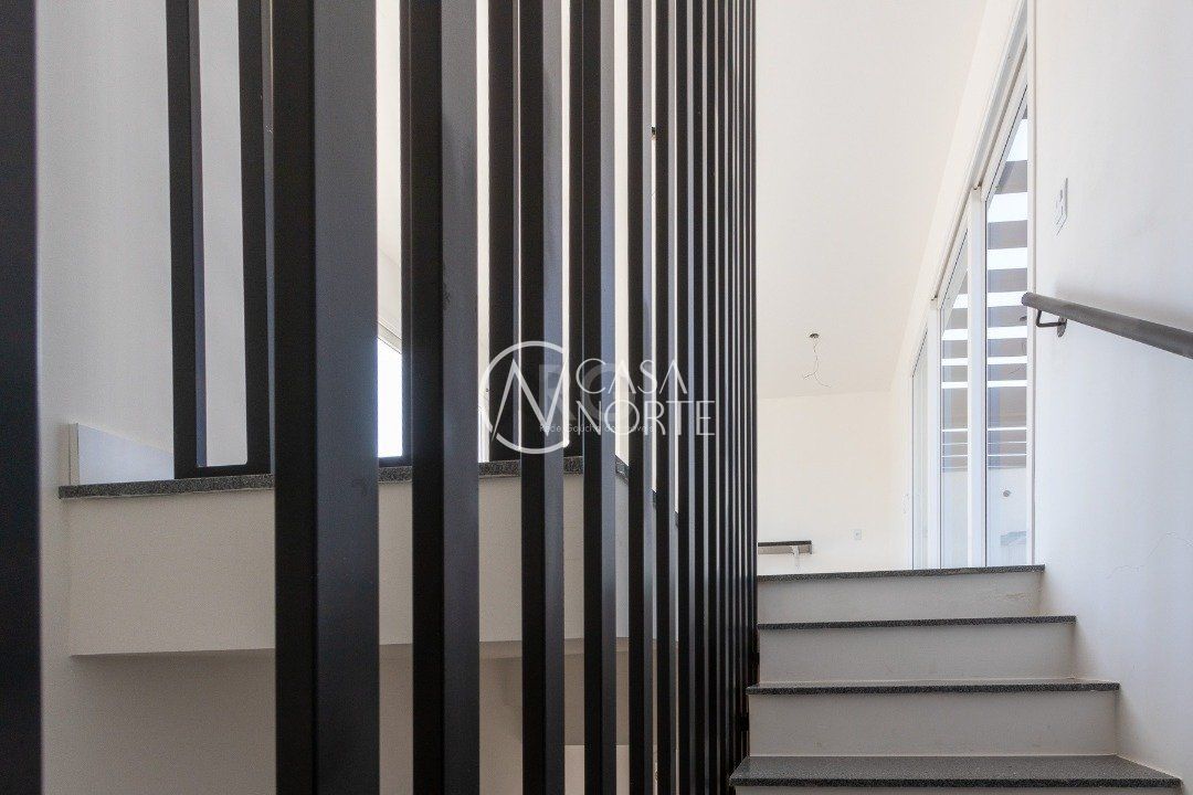 No primeiro pavimento, hall de entrada, lavabo, living integrado com estar e cozinha, lavanderia e banheiro de serviço, pátio interno, espera para elevador, 03 vagas de estacionamento cobertas com disponibilidade de mais 01 vaga.
