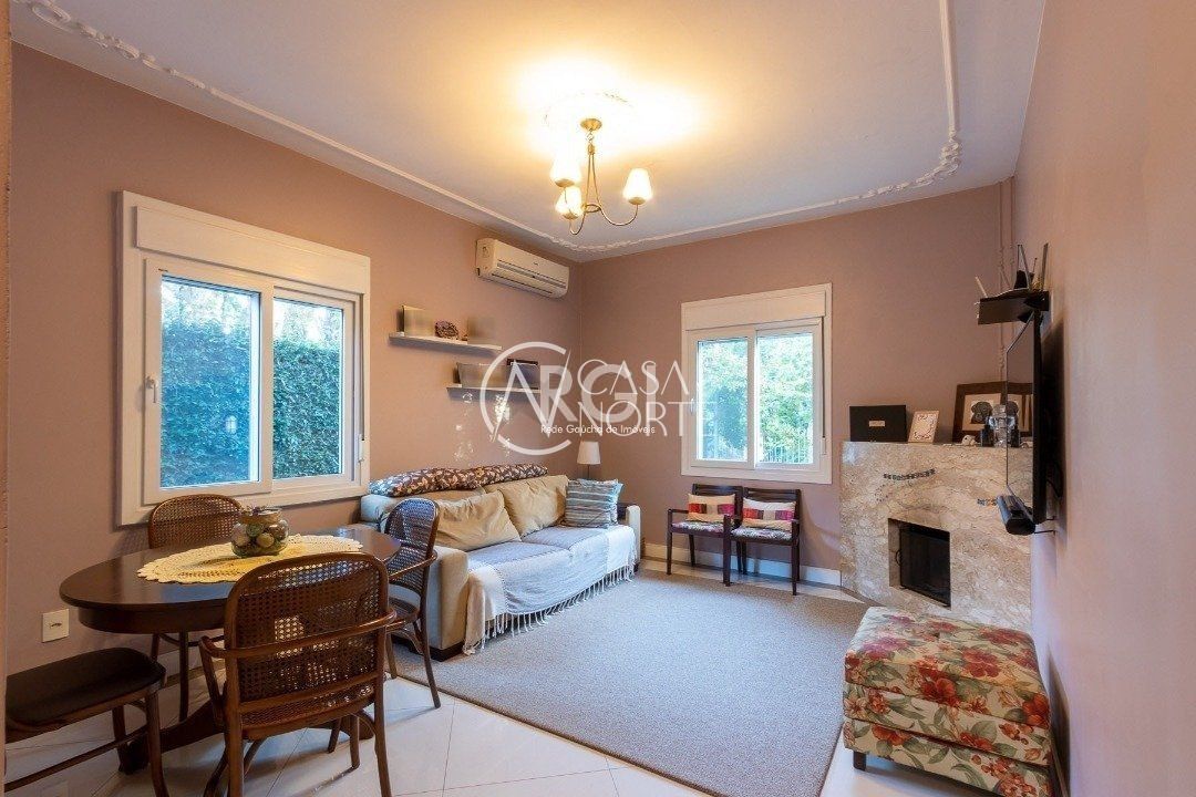 São 03 dormitórios amplos, sendo 01 suíte com sacada, banheiro social, living para 03 ambientes, piso em porcelanato com lareira, sala de jantar, copa-cozinha, lavabo, área de serviço, estar, churrasqueira, 02 vagas de garagem e pátio.