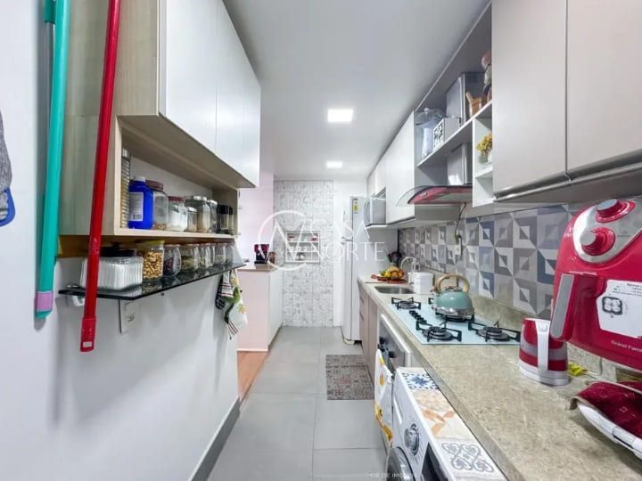 Apartamento 03 dormitórios, transformado em 02, fácil reversão, (uma suíte); piso laminado, cozinha americana equipada com forno, fogão cooktop e depurador; sala com 02 ambientes estar e jantar; banheiros com armários e box de vidro; ar condicionado SPLIT. 02 Vagas de garagem. Infraestrutura completa.