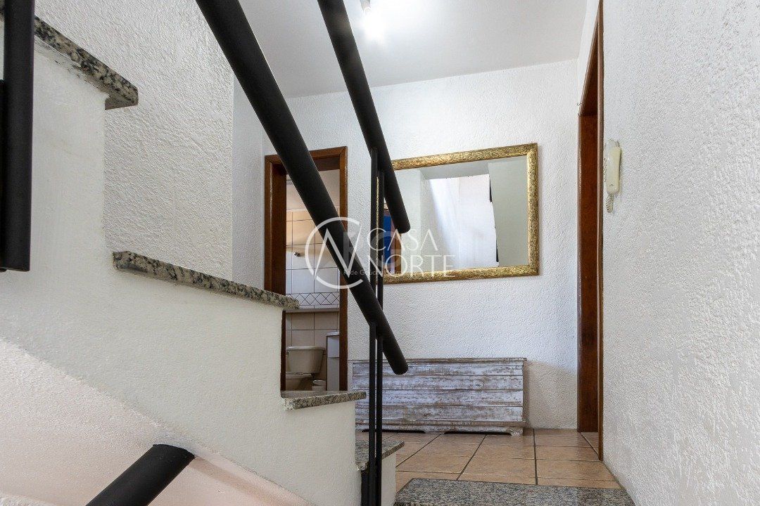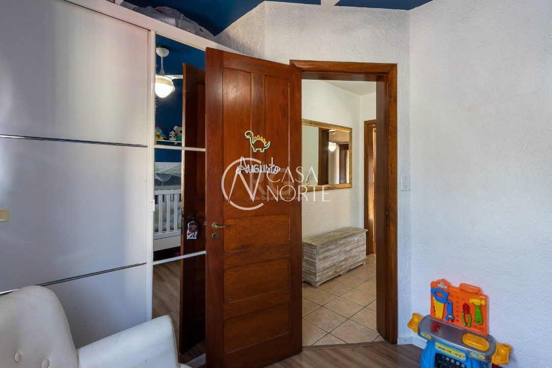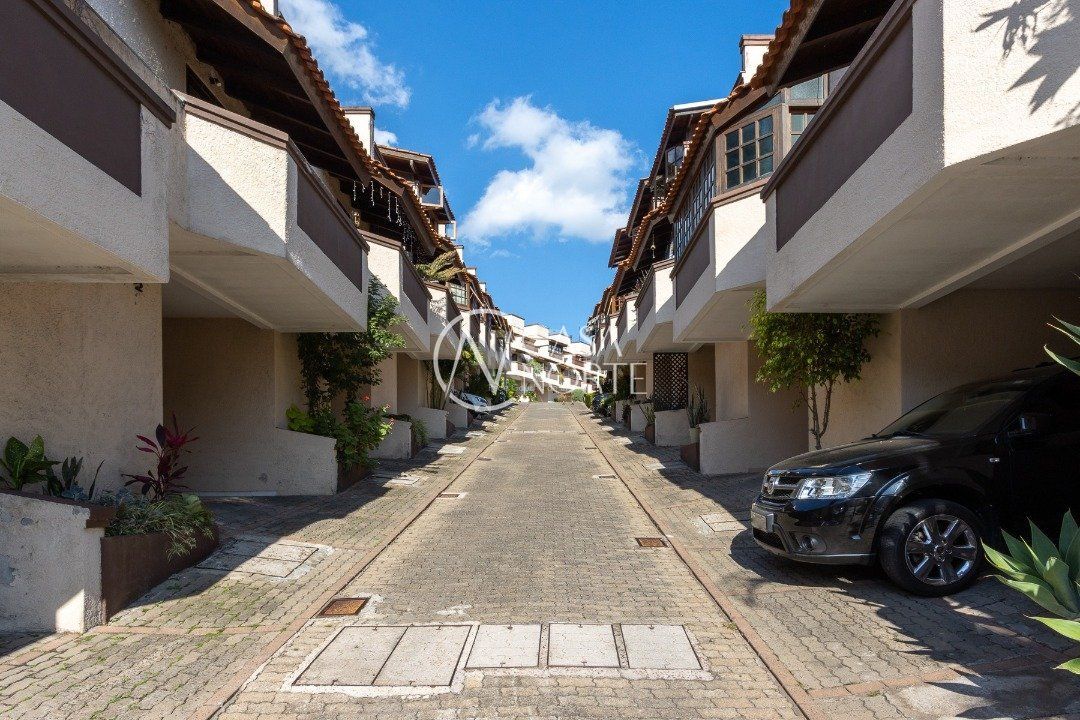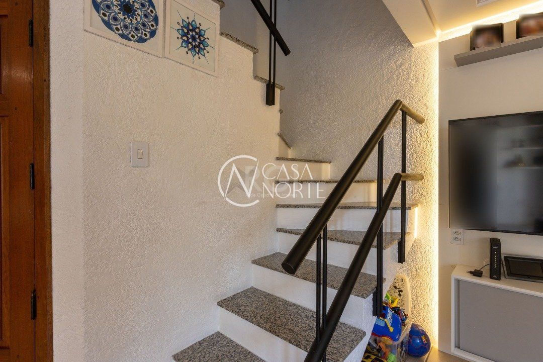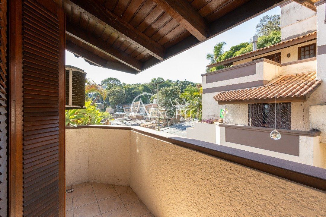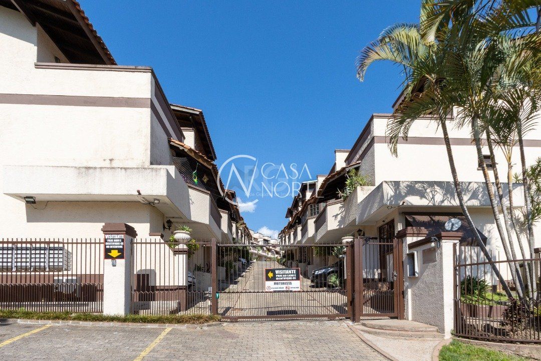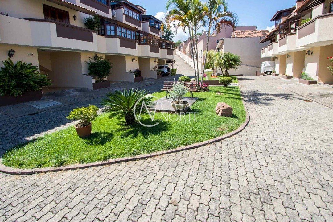Impecável sobrado em condomínio fechado! A casa conta com 3 dormitórios, sendo 2 suítes, living dois ambientes e cozinha com móveis planejados, lindo terraço com churrasqueira e vista maravilhosa do rio. Sacada na suíte. Garagem para dois carros. Condomínio com infra completa.