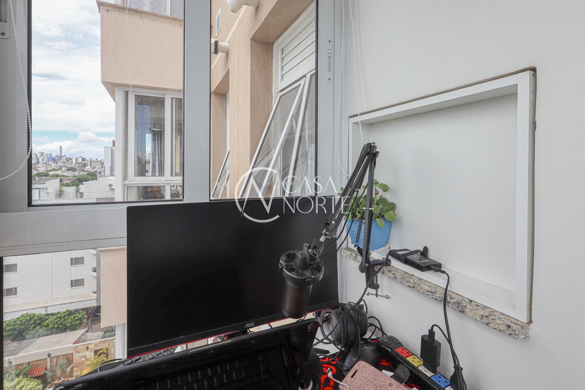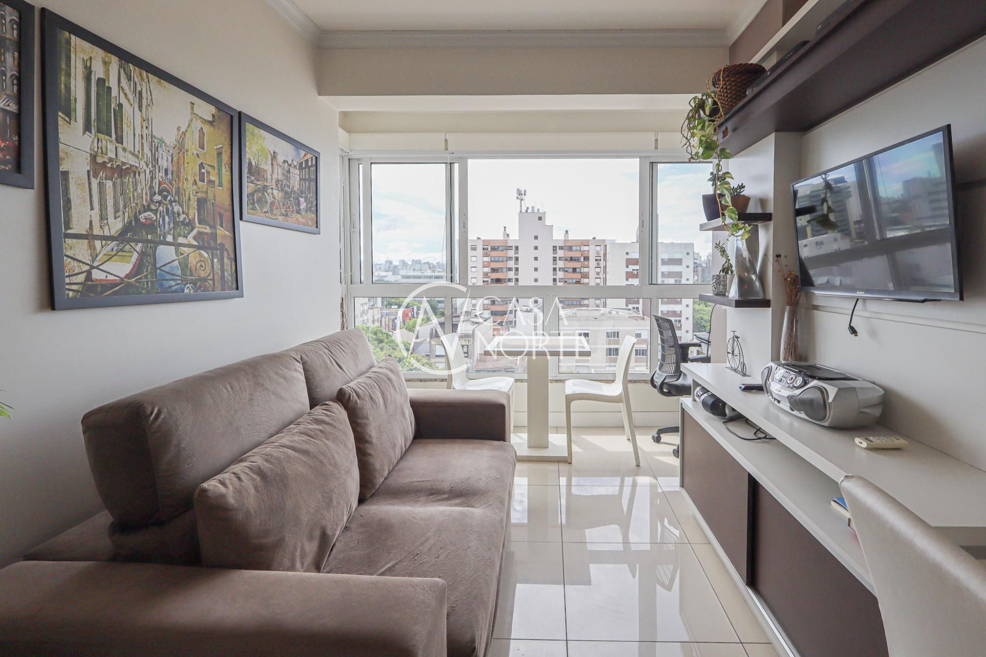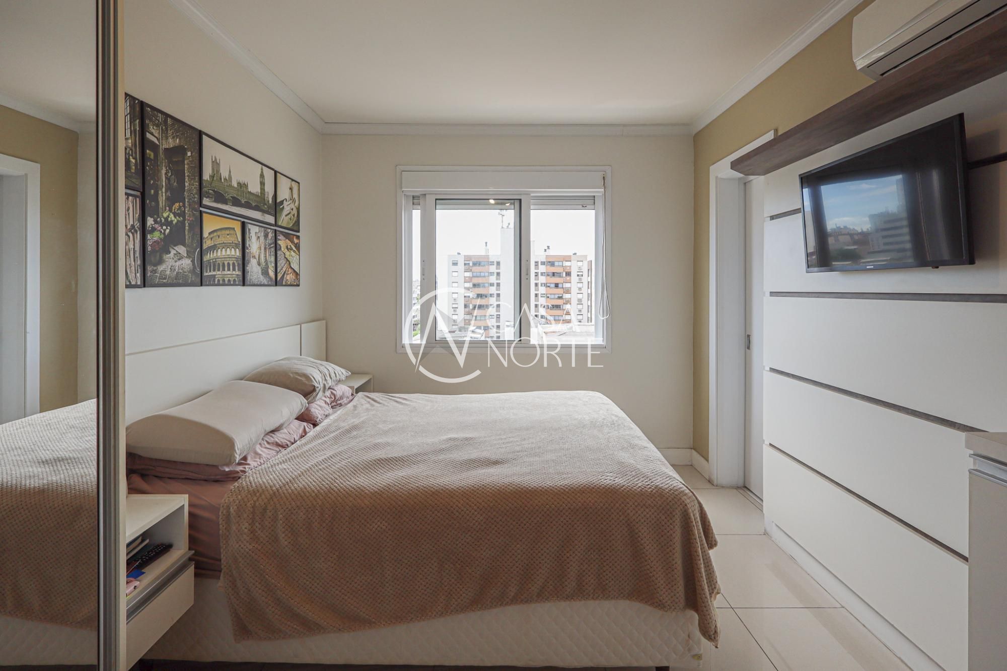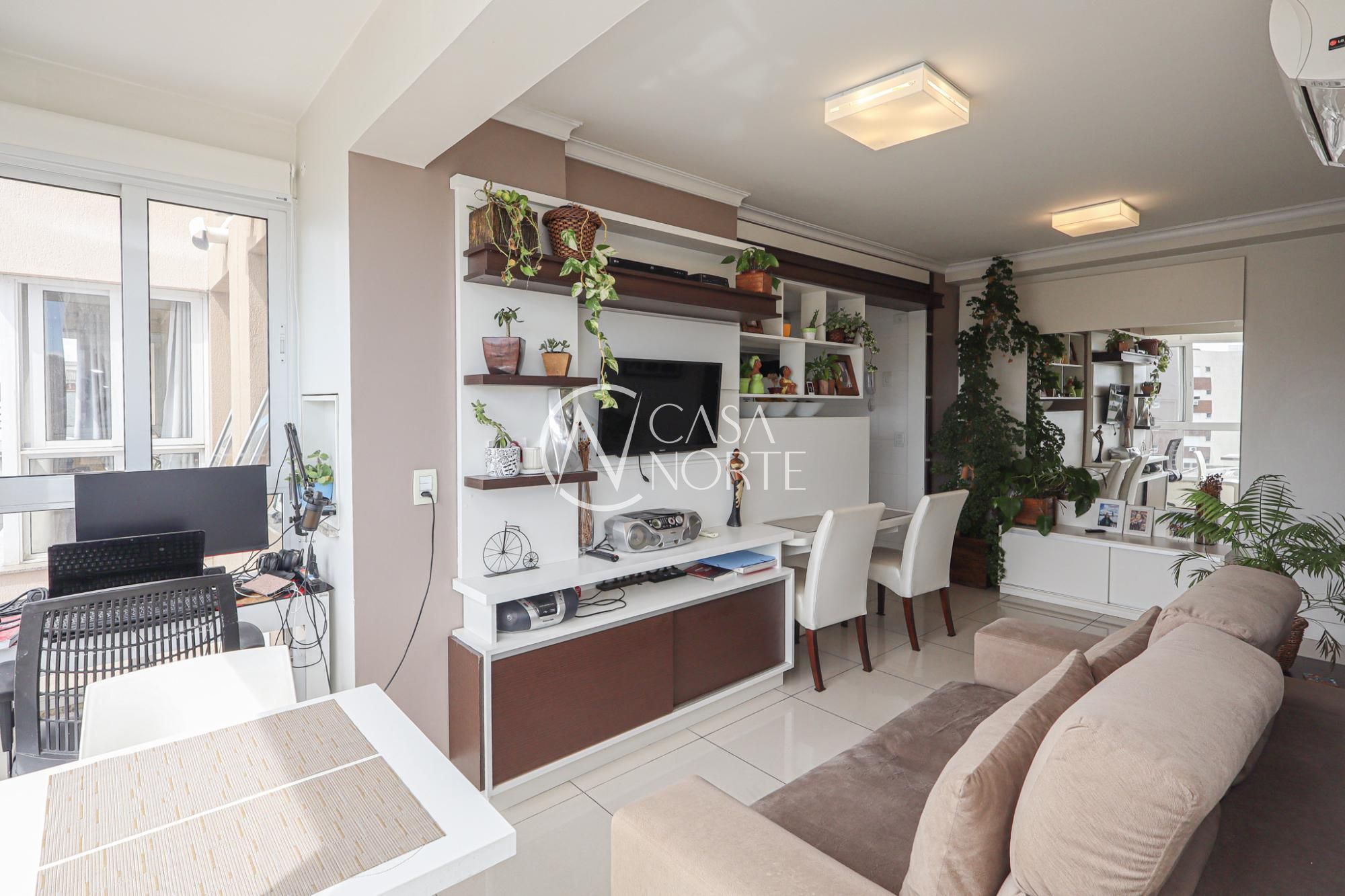 Apartamento em andar alto semimobiliado com 65 m² de área privativa com 2 dormitórios sendo 1 suíte, banheiro social, living amplo para 2 ambientes com com churrasqueira, linda vista e iluminação, sol norte, cozinha americana planejada com área de serviço individual. Possui 1 vaga de garagem coberta e escriturada.