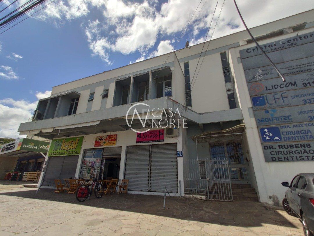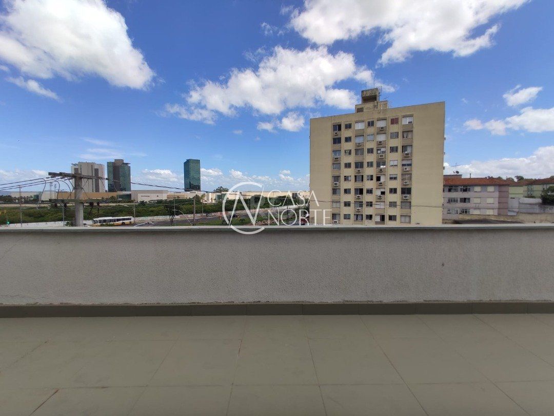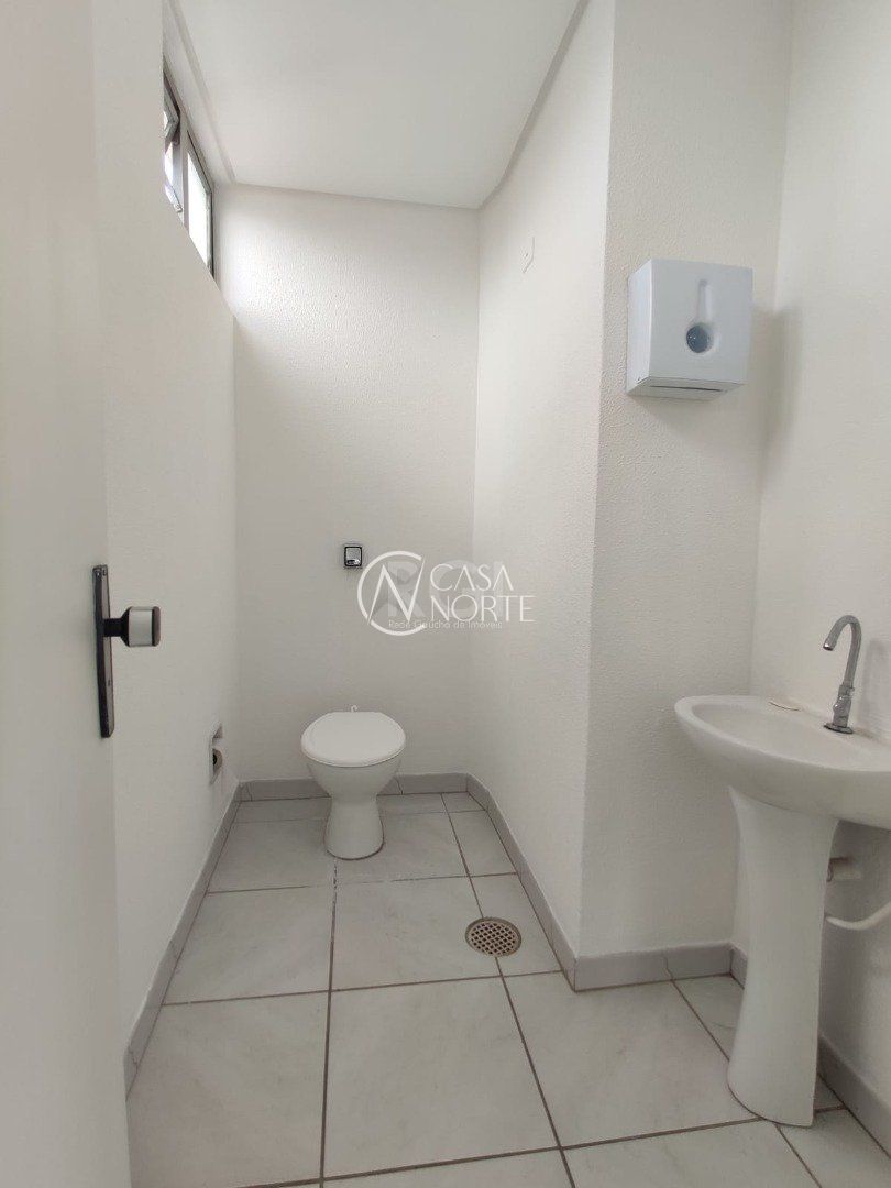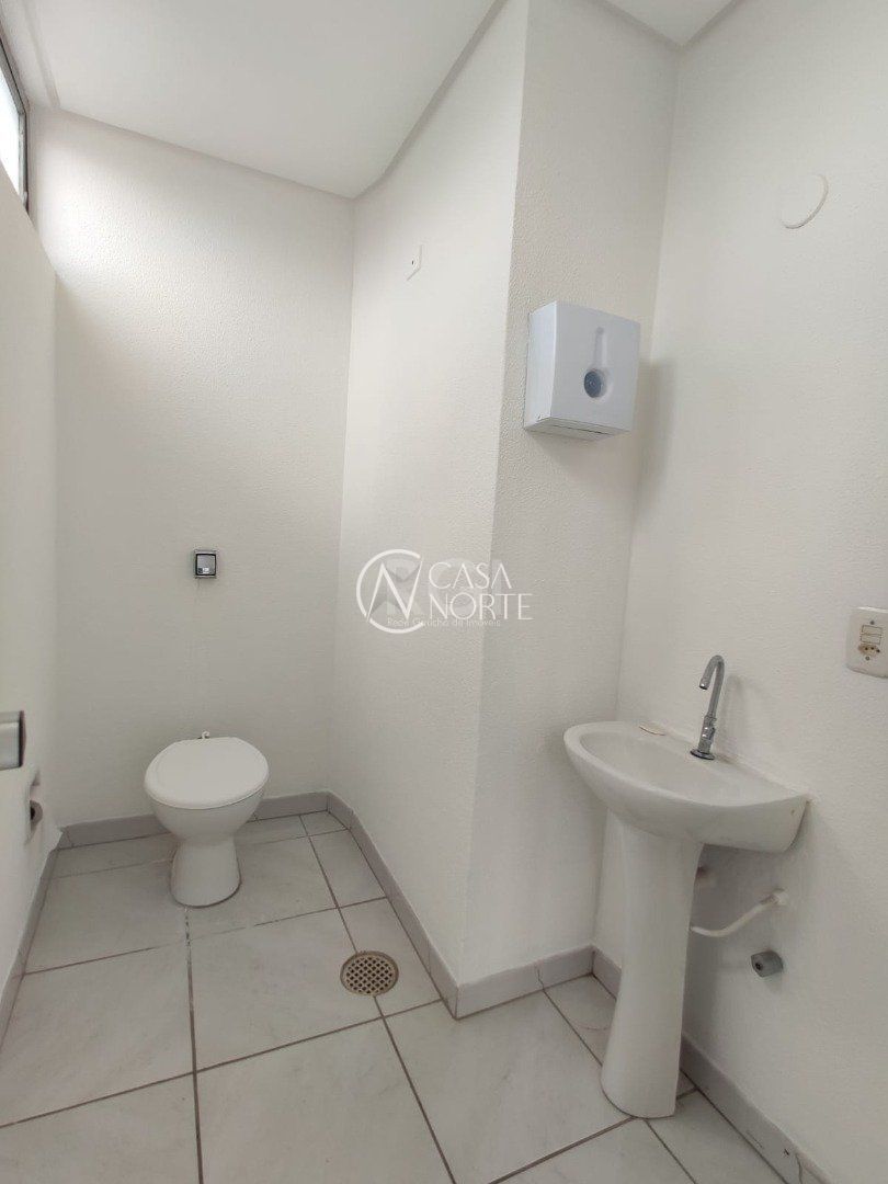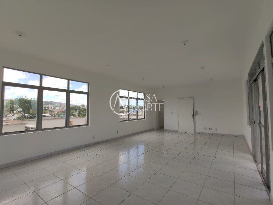 Ampla sala comercial com cerca de 97,47m² privativos, de frente, terceiro andar, com terraço, banheiro social e estacionamento em frente ao local.