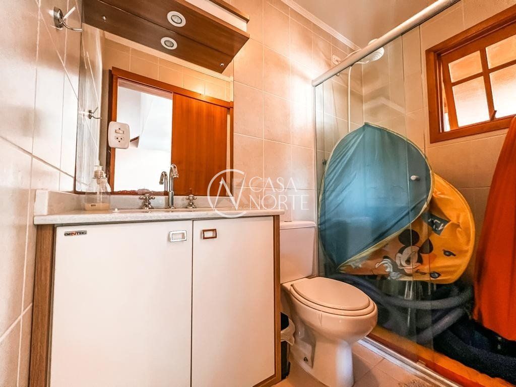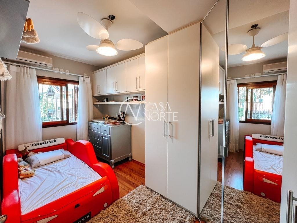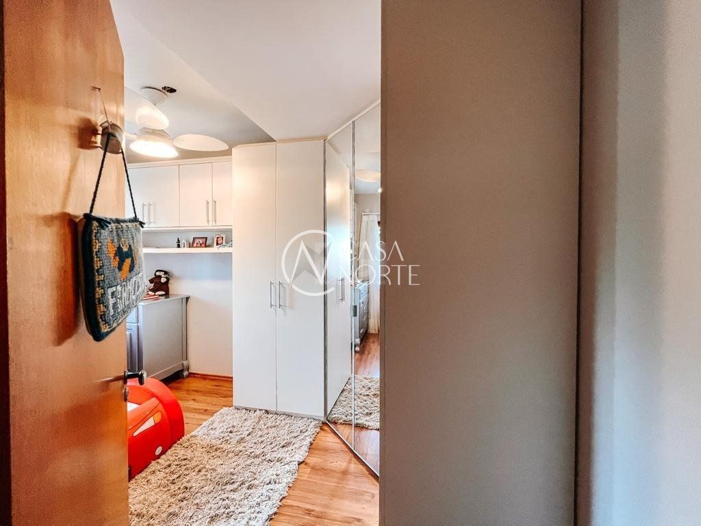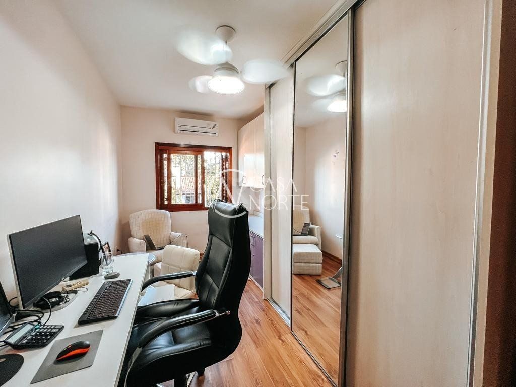 No segundo pavimento temos o banheiro social, 3 dormitórios, sendo 1 suíte com closet e sacada.