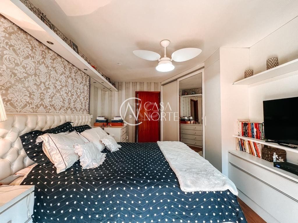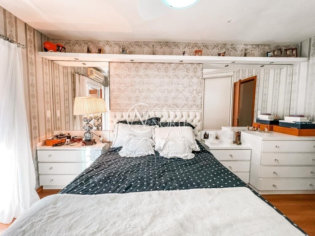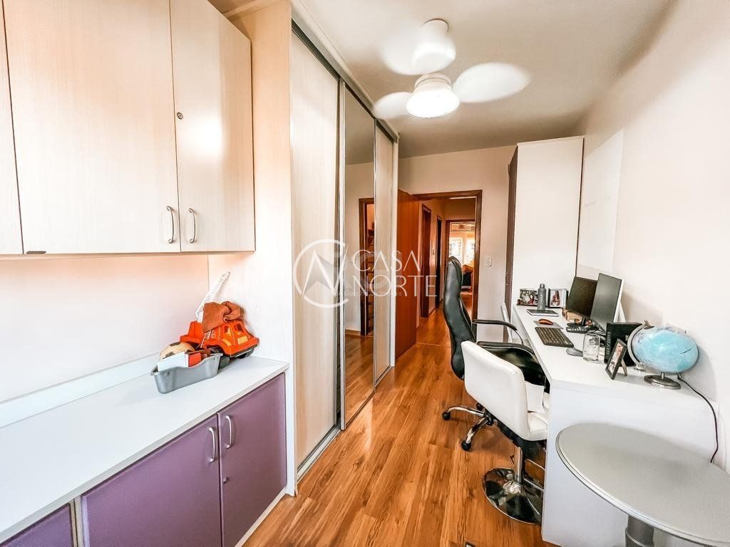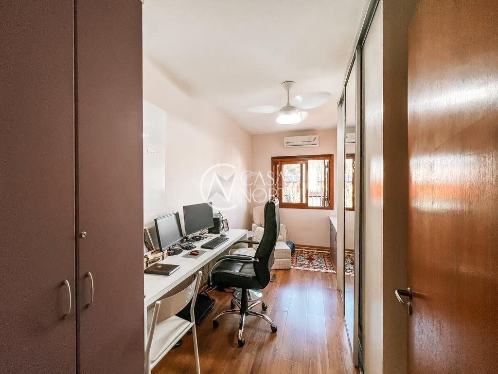 No segundo pavimento temos o banheiro social, 3 dormitórios, sendo 1 suíte com closet e sacada.