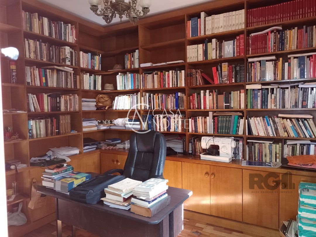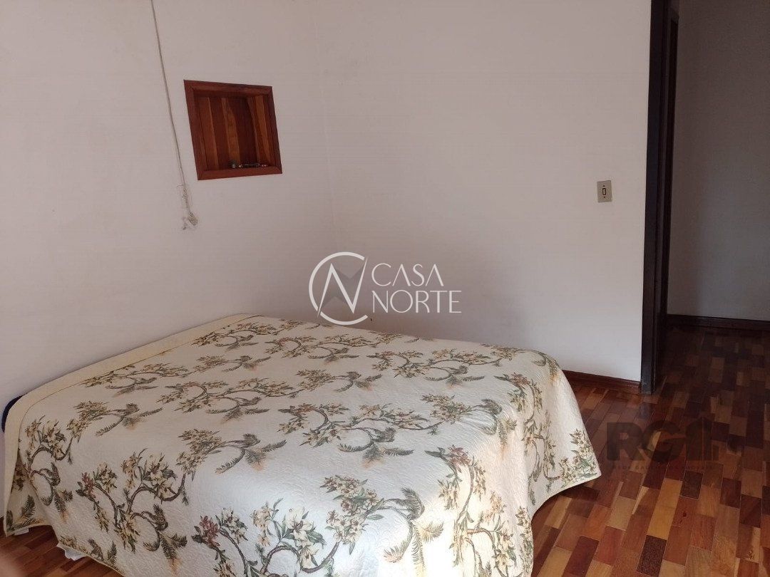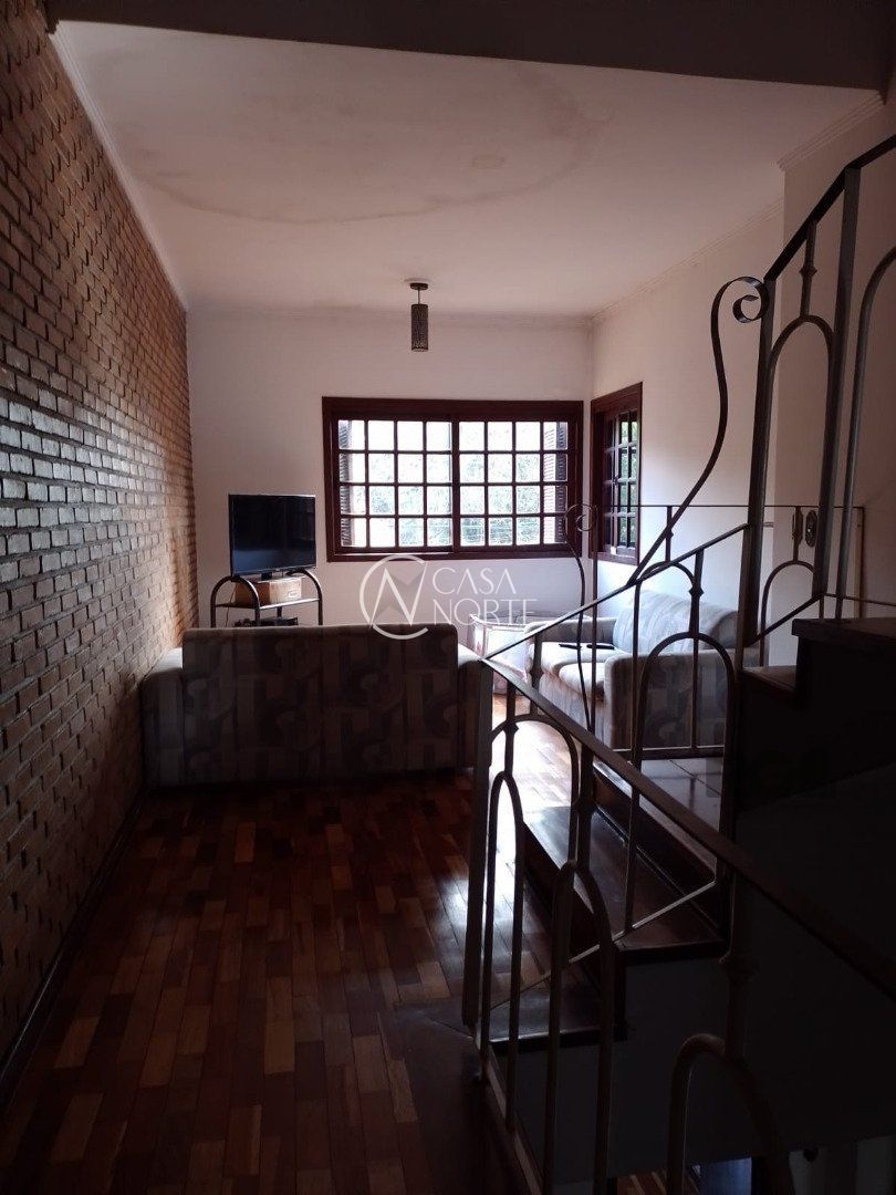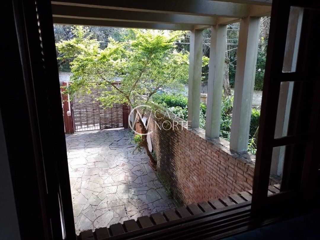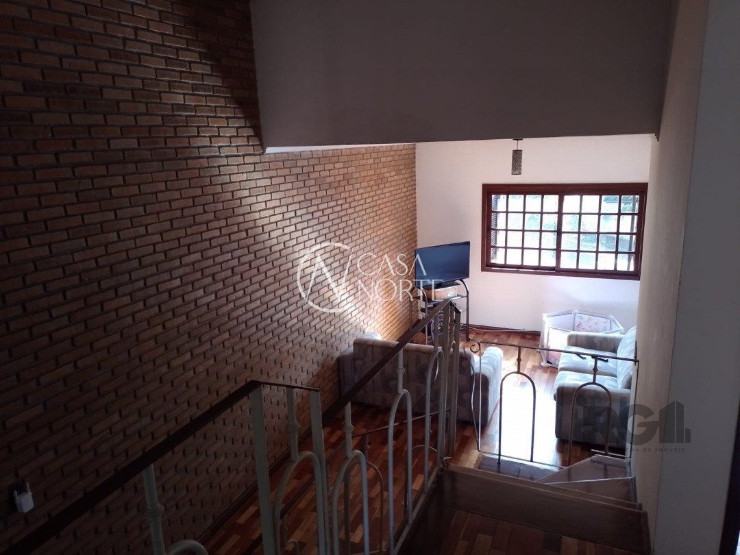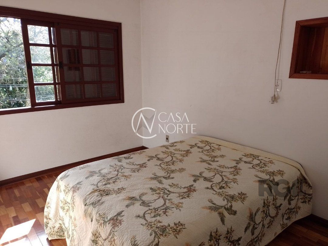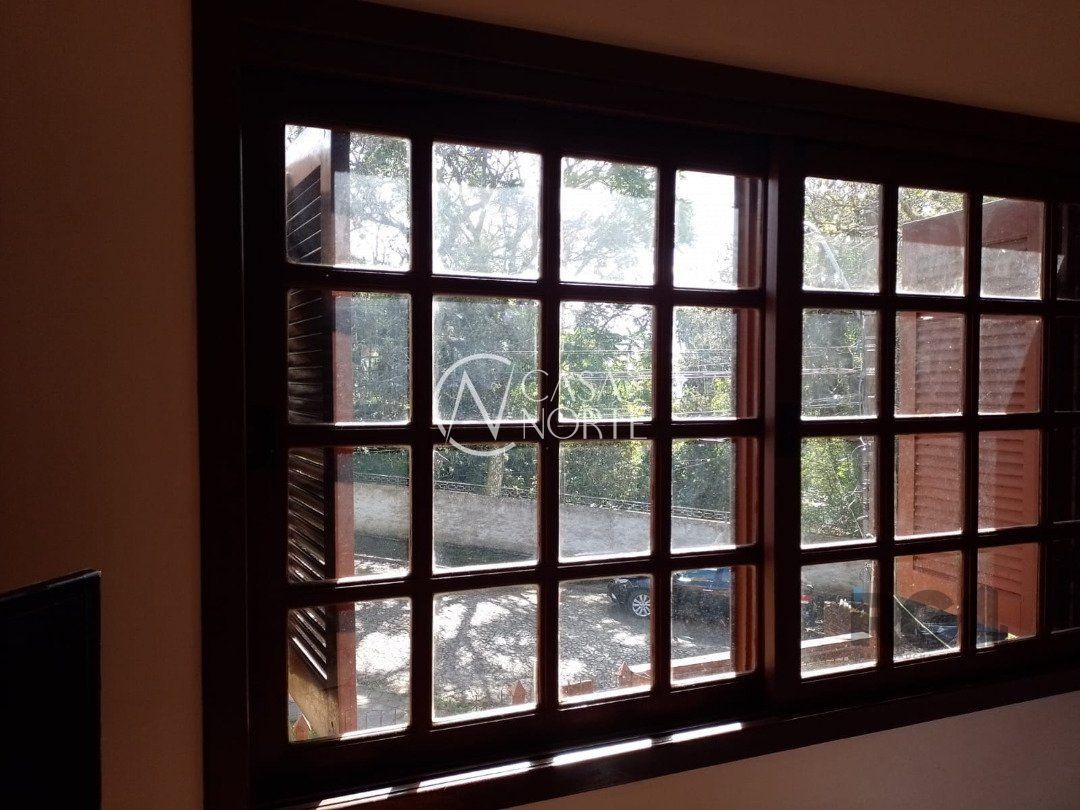 Possui dois dormitórios, uma suíte, living para dois ambientes com lareira, cozinha, área de serviço, dependência de empregada, salão de festa com churrasqueira, três banheiros, pátio, vaga de garagem.