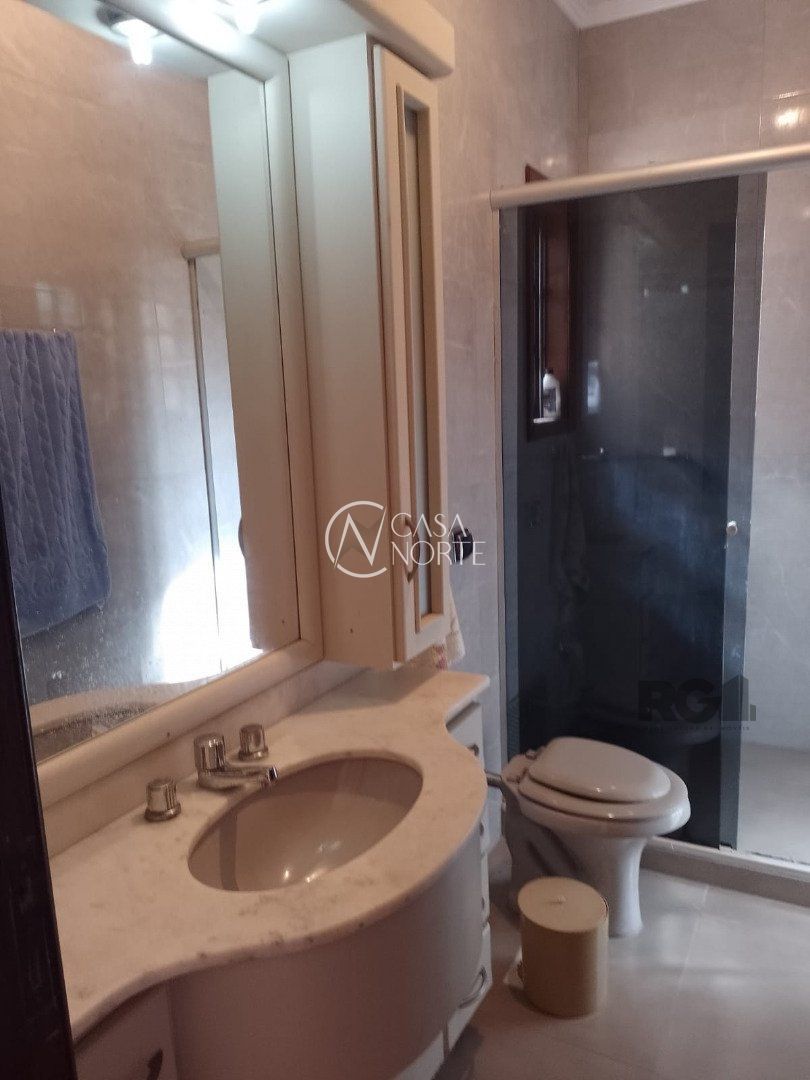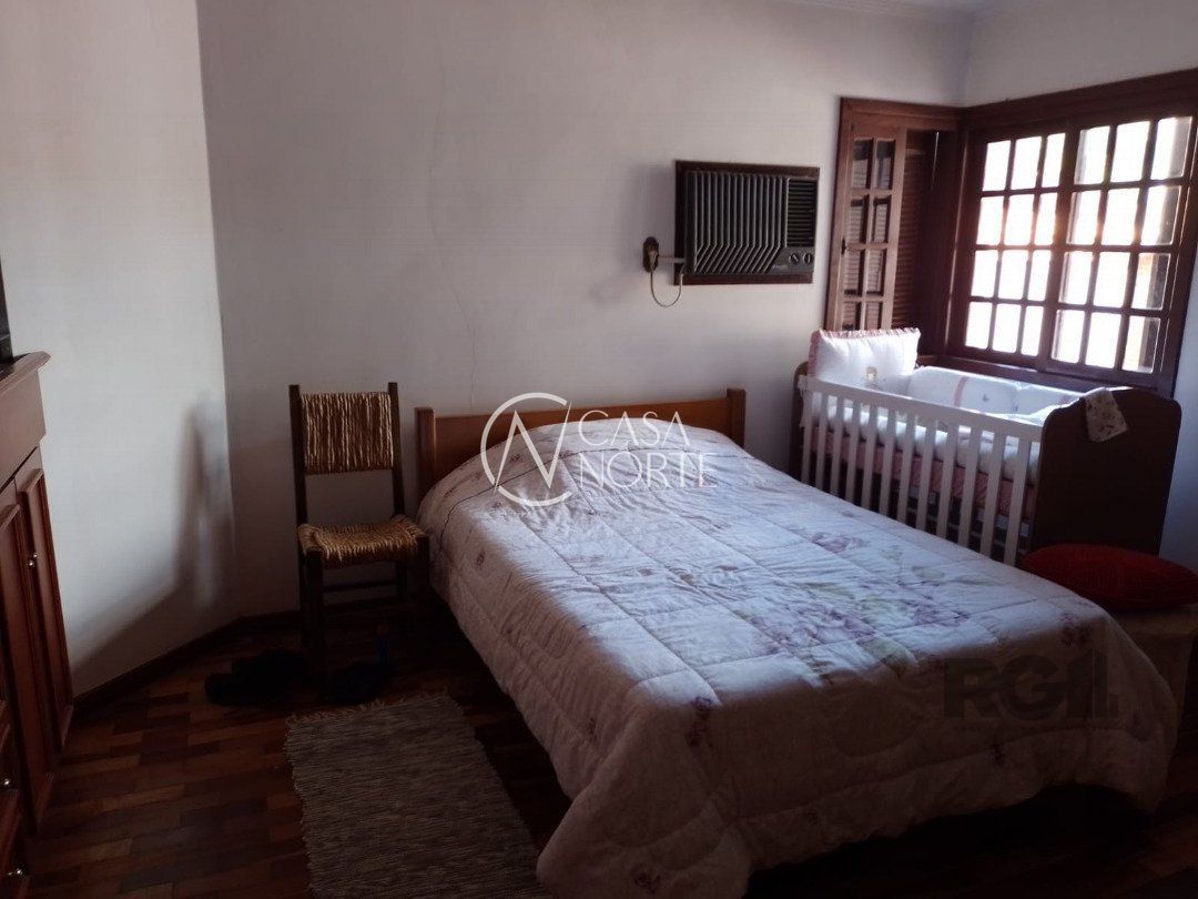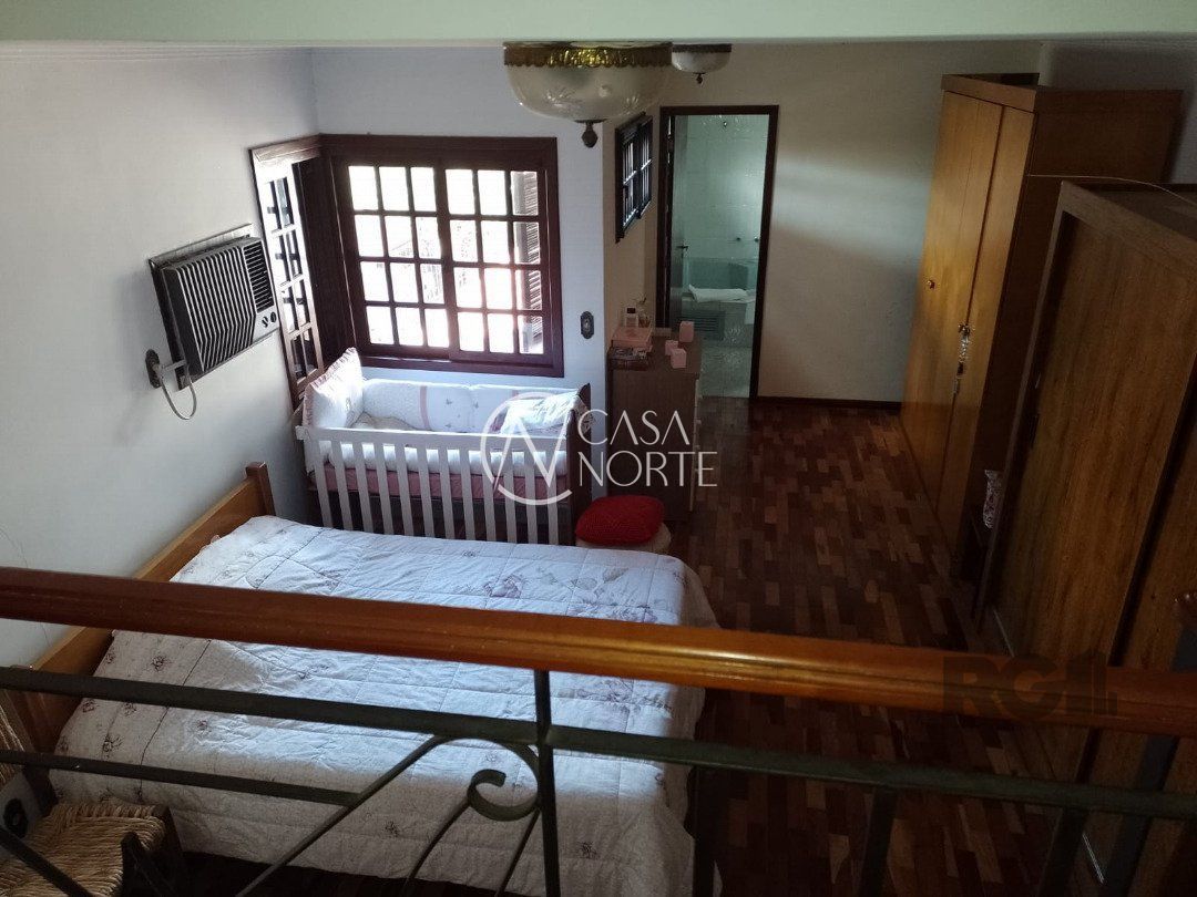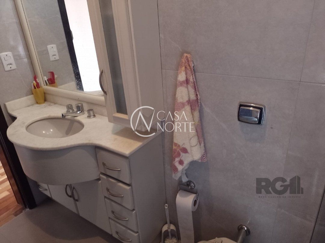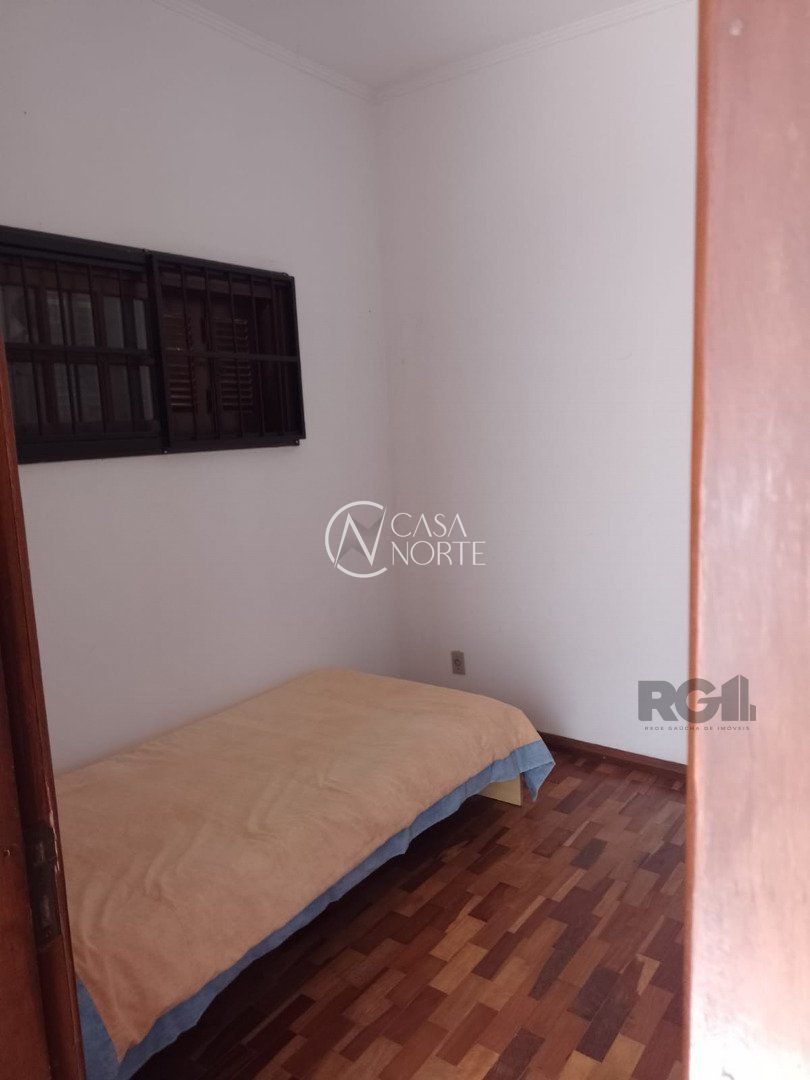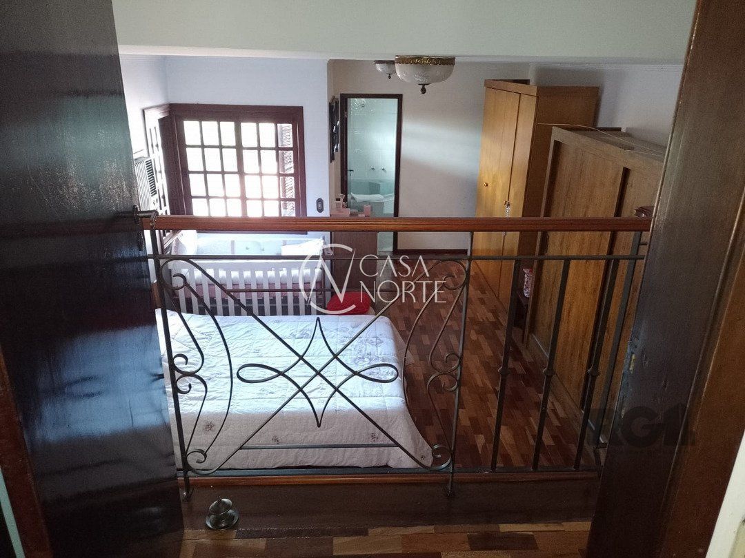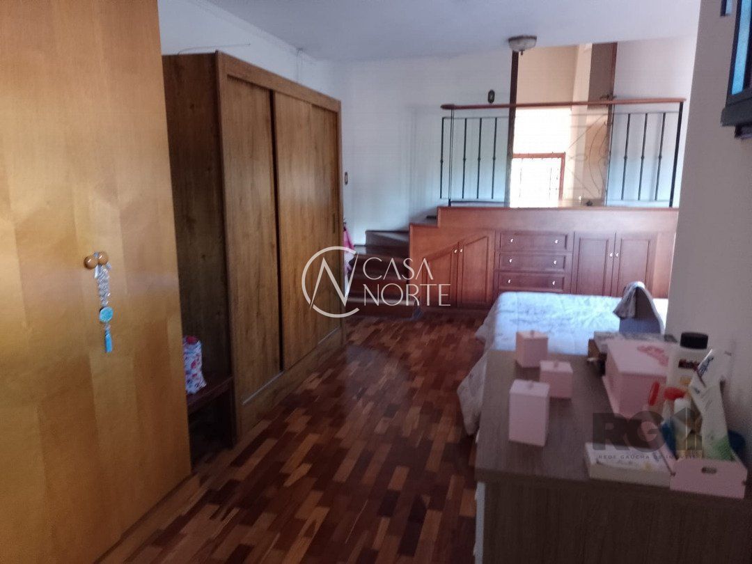 Possui dois dormitórios, uma suíte, living para dois ambientes com lareira, cozinha, área de serviço, dependência de empregada, salão de festa com churrasqueira, três banheiros, pátio, vaga de garagem.