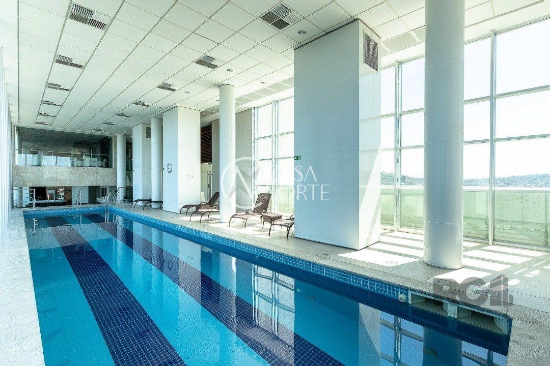 Studio no residence du lac, com 52m2, sacada e vista para o guaíba e do shopping barra sul. Com cama box casal, 2 armários com espelhos sob medida, sofá, 2 split, televisão 4k, banheiro com bancada e box em vidro, cozinha americana, balcão com pia e fogão elétrico, pia micro-ondas, refrigerador side by side em inox, churrasqueira, tanque, mesa redonda 4 cadeiras, lustre, balcão com louça. Piso em porcelanato. Serviço de camareira e lavanderia, portaria 24 horas , piscina aquecida, sala de jogos, academia e garagem no subsolo. Agende agora sua visita!
