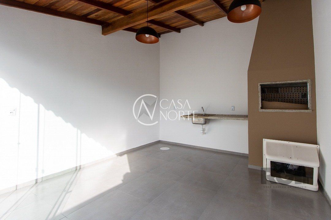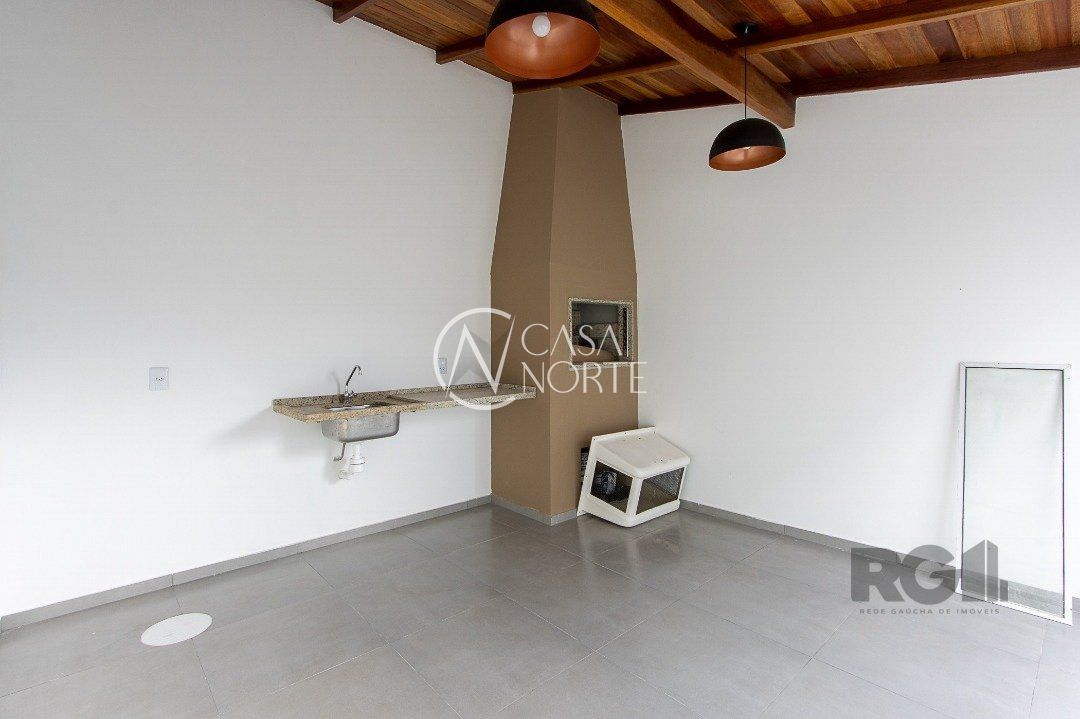 Possui dois dormitórios com sacada, duas suítes, living com lareira, lavabo, cozinha planejada, quiosque com churrasqueira, uma vaga de garagem.