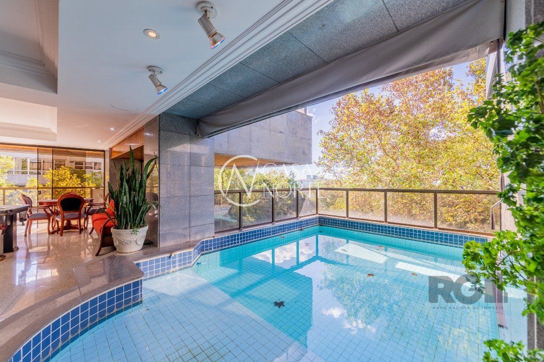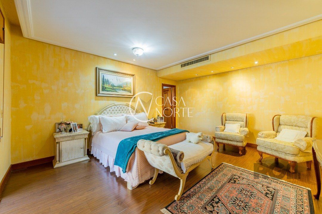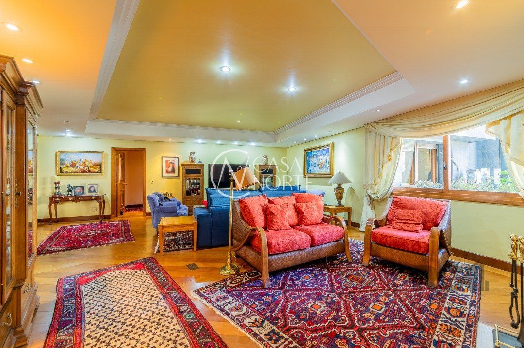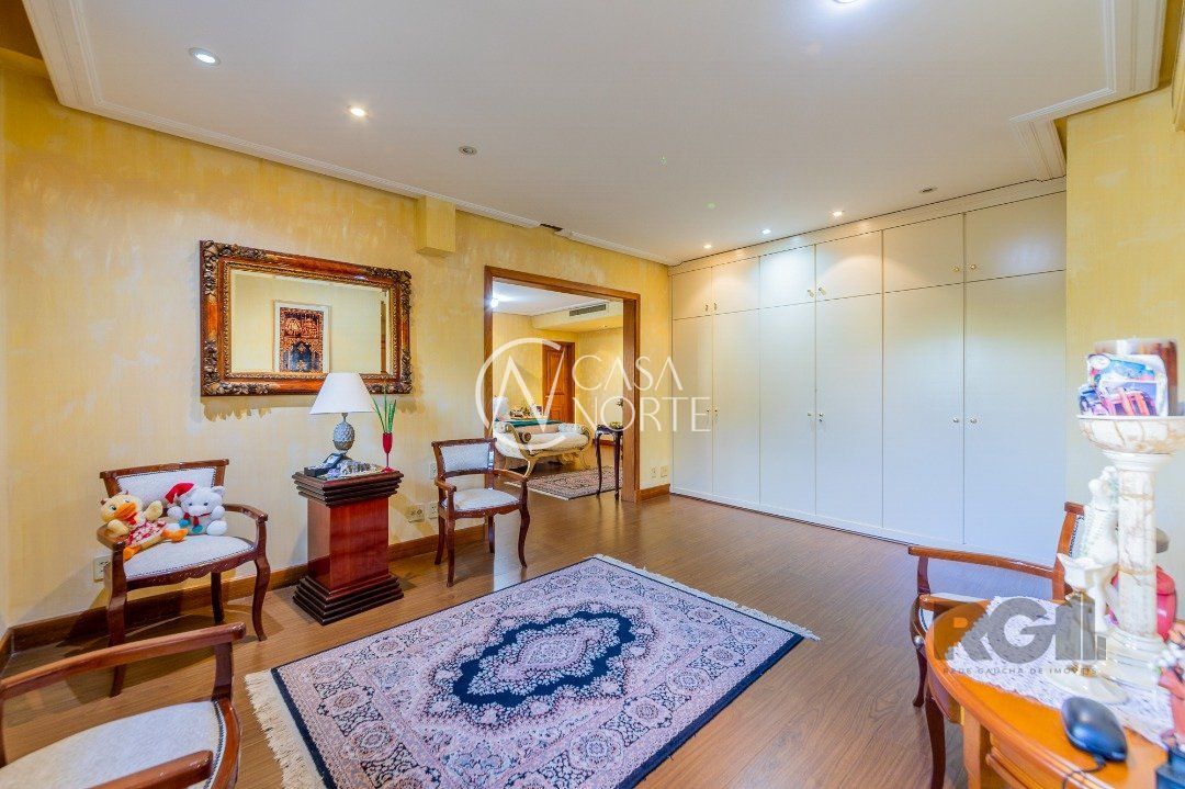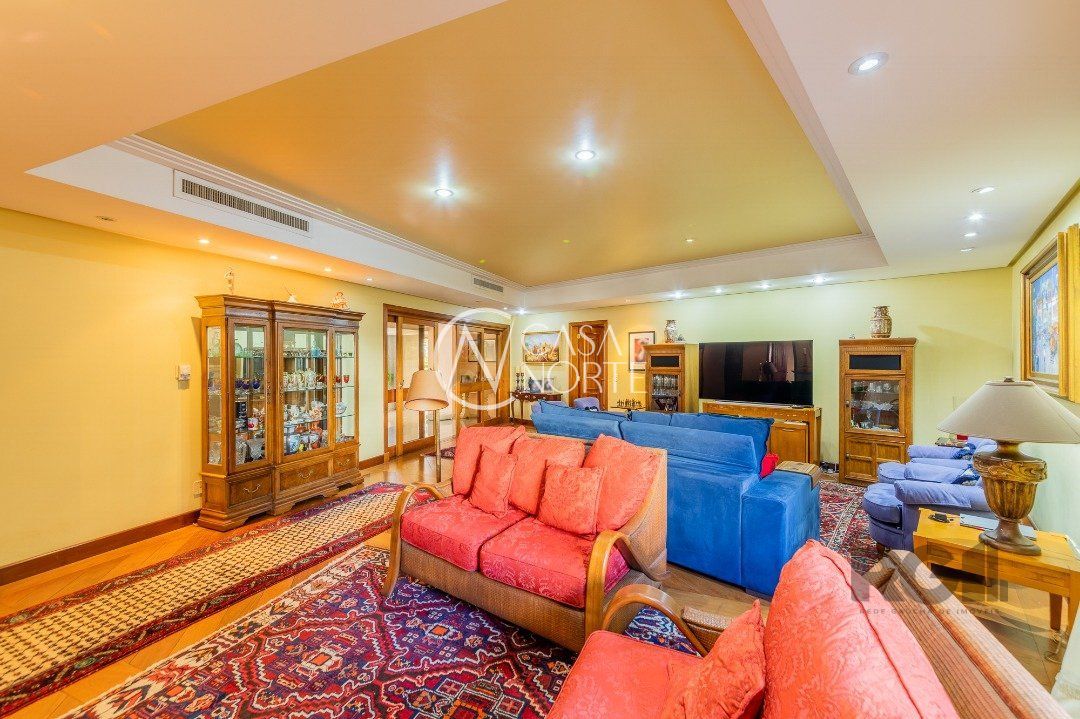 Apartamentos Magnifico com 776 m² de área privativa. 4 suítes completas com hidromassagem, duas com closet, suíte master , 120 m² de área privativa, com sacada fechada, sendo banheiro masculino e feminino, , mais banheira hidromassagem com espaço para sauna e cama de massagem. Living portando 4 ambientes, entre estar, jantar e dois ambientes sociais, gabinete, adega, chapelaria e lavabo. Ampla sacada em 'L' com piscina, espaço gourmet e banheiro social. Área gourmet interna com churrasqueira, cozinha, 02 dependência de empregada completa e dispensa. Living estar com lareira. 5 garagens individuais mais depósito. mais dois espaços de estacionamento para visitas( não coberto) Gerador para todo prédio, inclusive garagens e elevador social( único que não recebe é o de serviço) Guarda armada Rudder Elevador com chave e código Cerca elétrica, pânico e totalmente monitorado, mais de 100 câmeras.