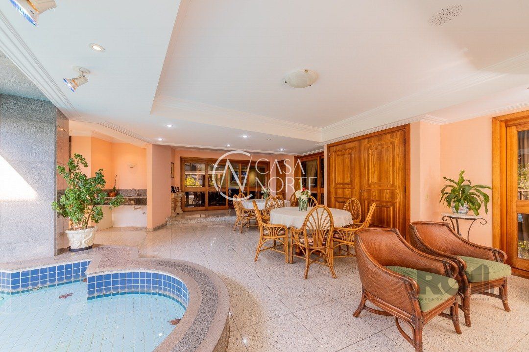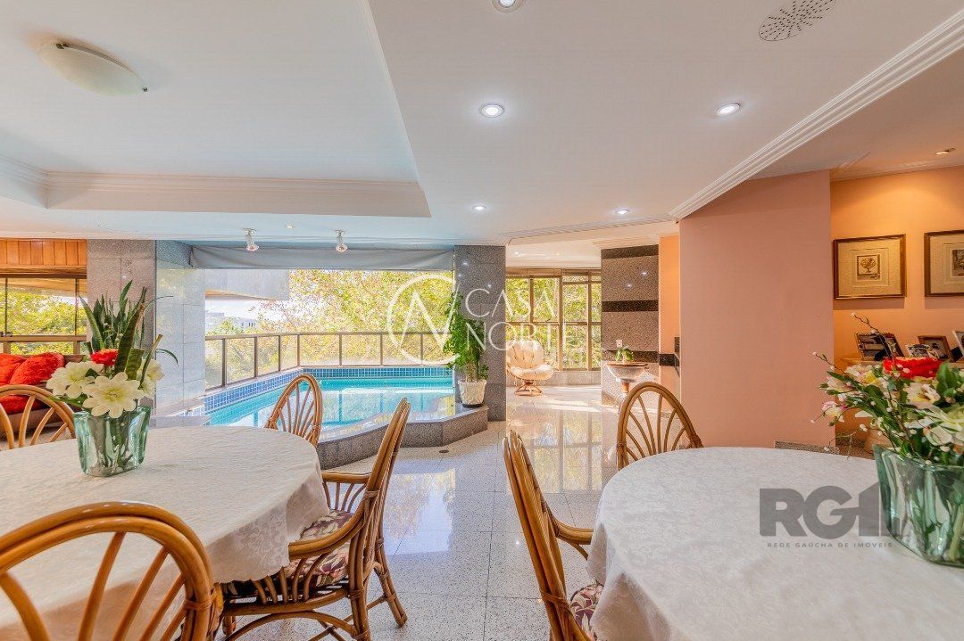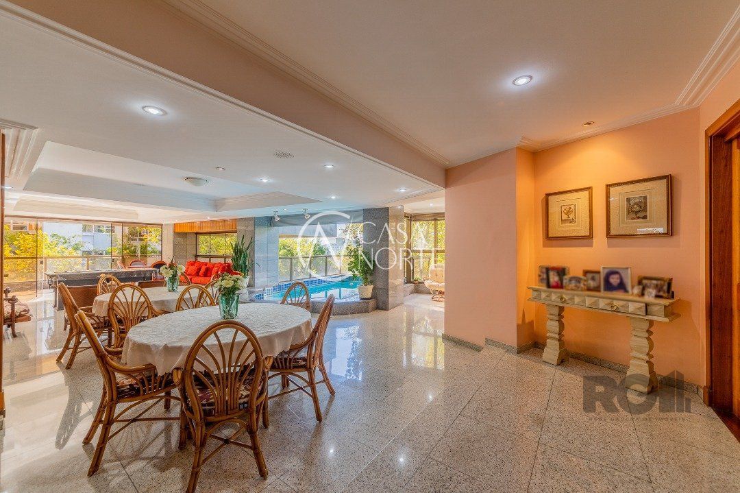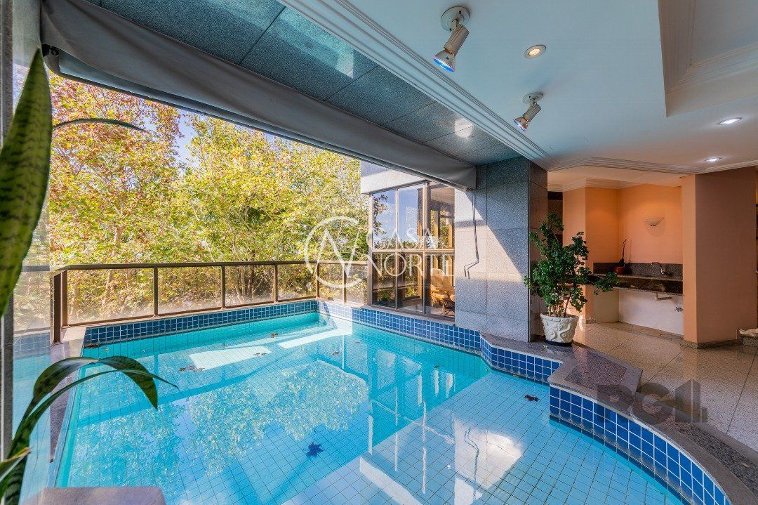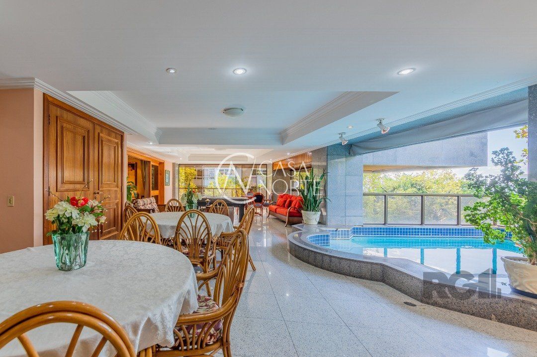 Apartamentos Magnifico com 776 m² de área privativa. 4 suítes completas com hidromassagem, duas com closet, suíte master , 120 m² de área privativa, com sacada fechada, sendo banheiro masculino e feminino, , mais banheira hidromassagem com espaço para sauna e cama de massagem. Living portando 4 ambientes, entre estar, jantar e dois ambientes sociais, gabinete, adega, chapelaria e lavabo. Ampla sacada em 'L' com piscina, espaço gourmet e banheiro social. Área gourmet interna com churrasqueira, cozinha, 02 dependência de empregada completa e dispensa. Living estar com lareira. 5 garagens individuais mais depósito. mais dois espaços de estacionamento para visitas( não coberto) Gerador para todo prédio, inclusive garagens e elevador social( único que não recebe é o de serviço) Guarda armada Rudder Elevador com chave e código Cerca elétrica, pânico e totalmente monitorado, mais de 100 câmeras.