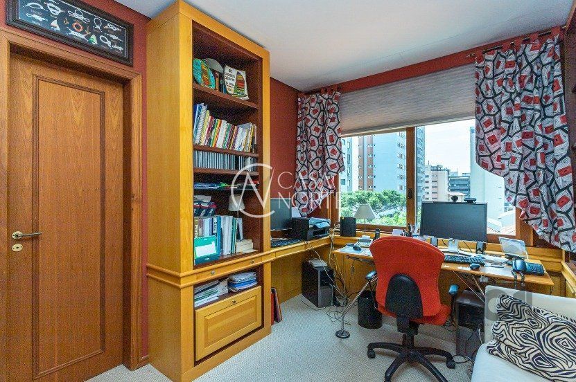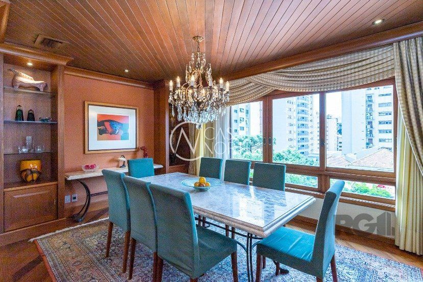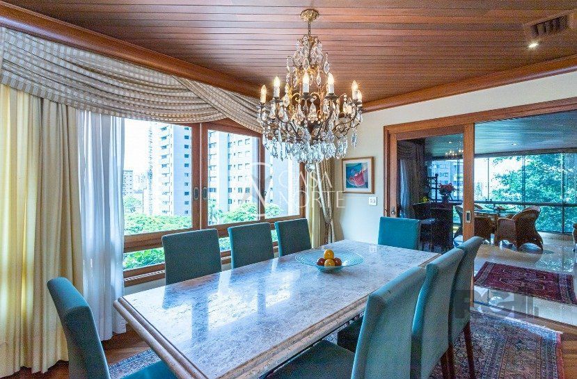 Amplo apartamento em bairro nobre, rua tranquila e segura. 270 m² bem distribuídos, com 3 suítes, duas com sacada e hidro, suíte master com closet, living para 3 ambientes com sacada integrada, lareira, espaço gourmet com churrasqueira, dependência completa, estar íntimo e ar central. Possui 03 vagas de garagem individuais + 1 depósito. O prédio possui piscina, salão de festas e portaria virtual.
