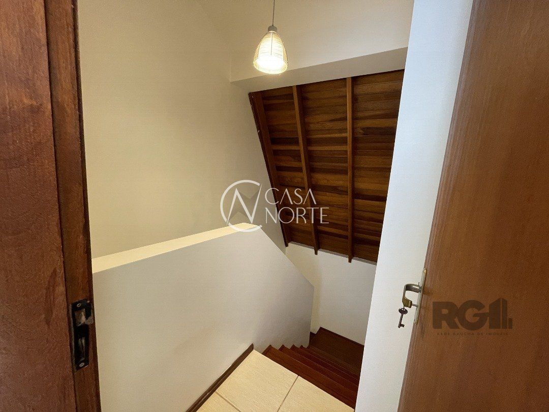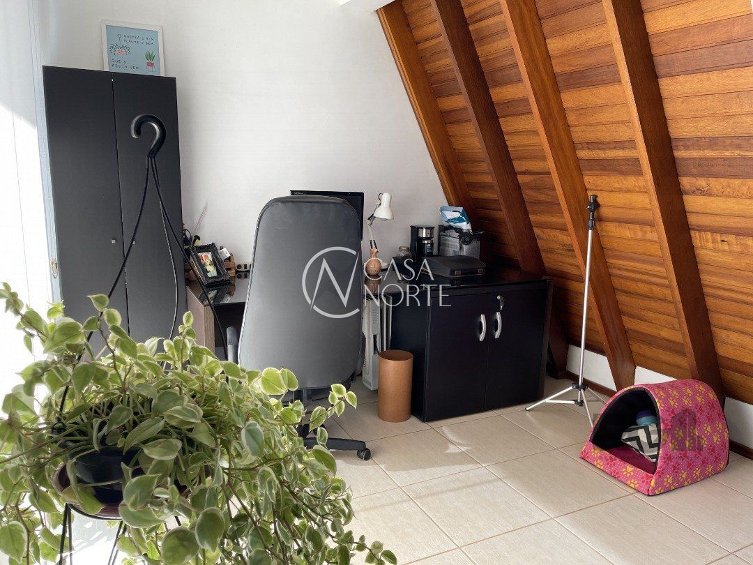Casa em condomínio com 3 dormitórios (sendo 1 suíte), living para 02 ambientes em porcelanato com lareira, piso em laminado, lavabo, cozinha com teto de vidro, sala de jantar, 4 banheiros e sótão.