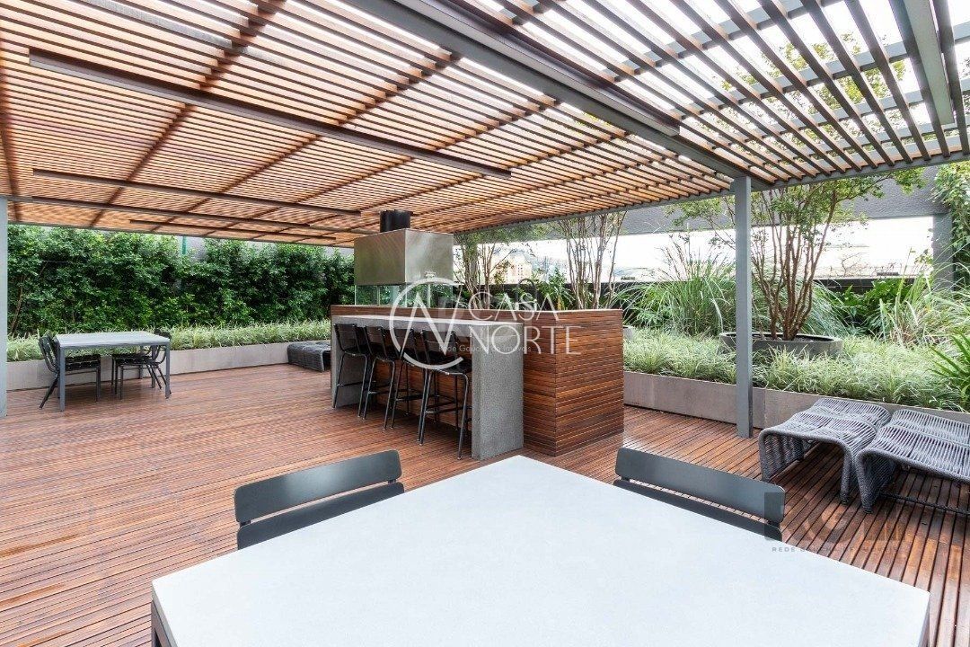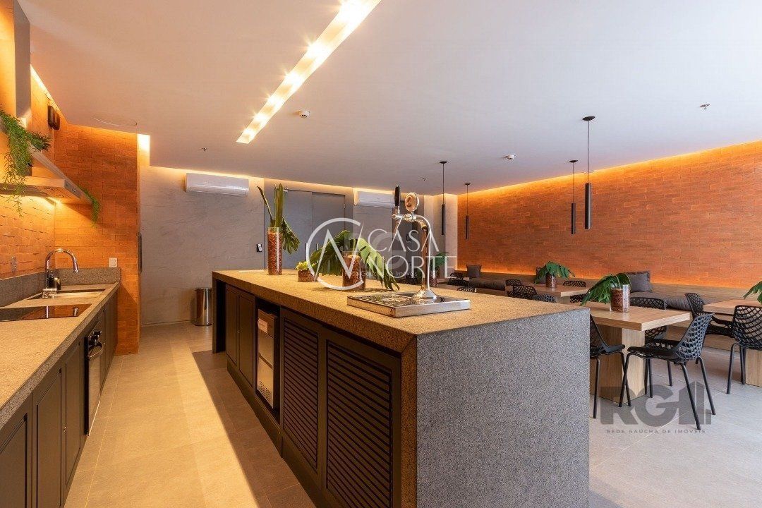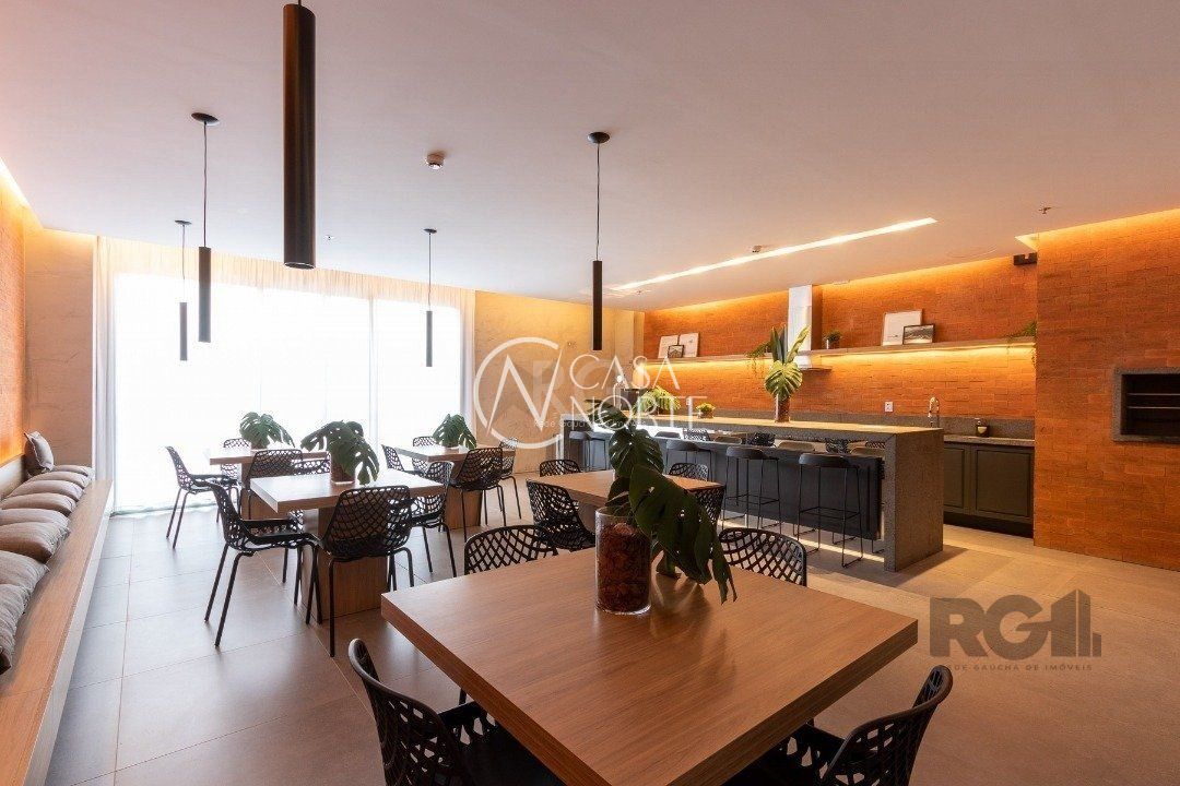 O condomínio oferece portaria 24 horas, playground, bicicletário, salão de festas com espaço gourmet, quiosque com churrasqueira, lavanderia e piscina.