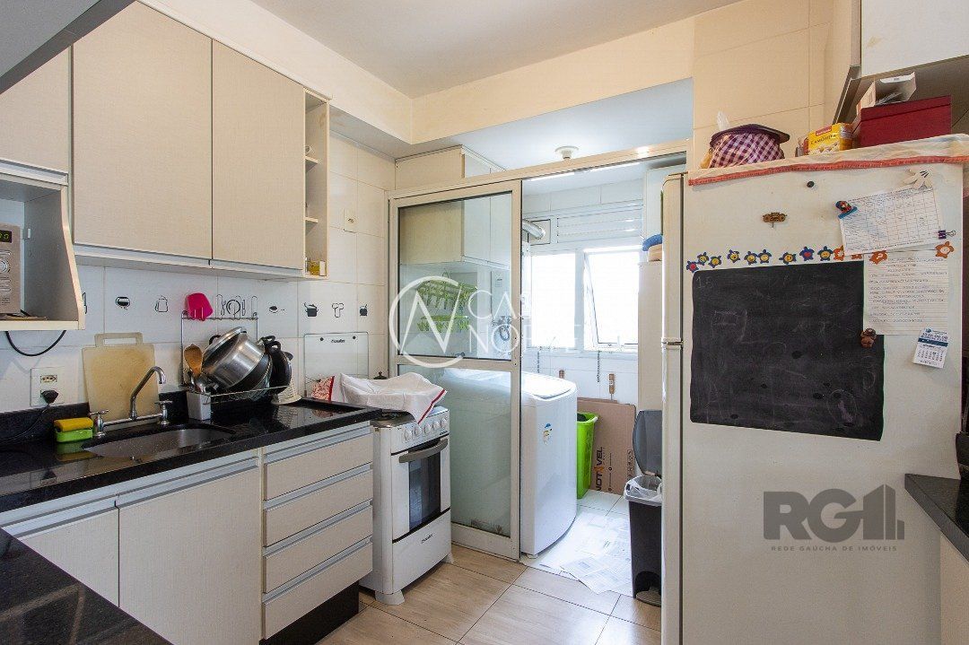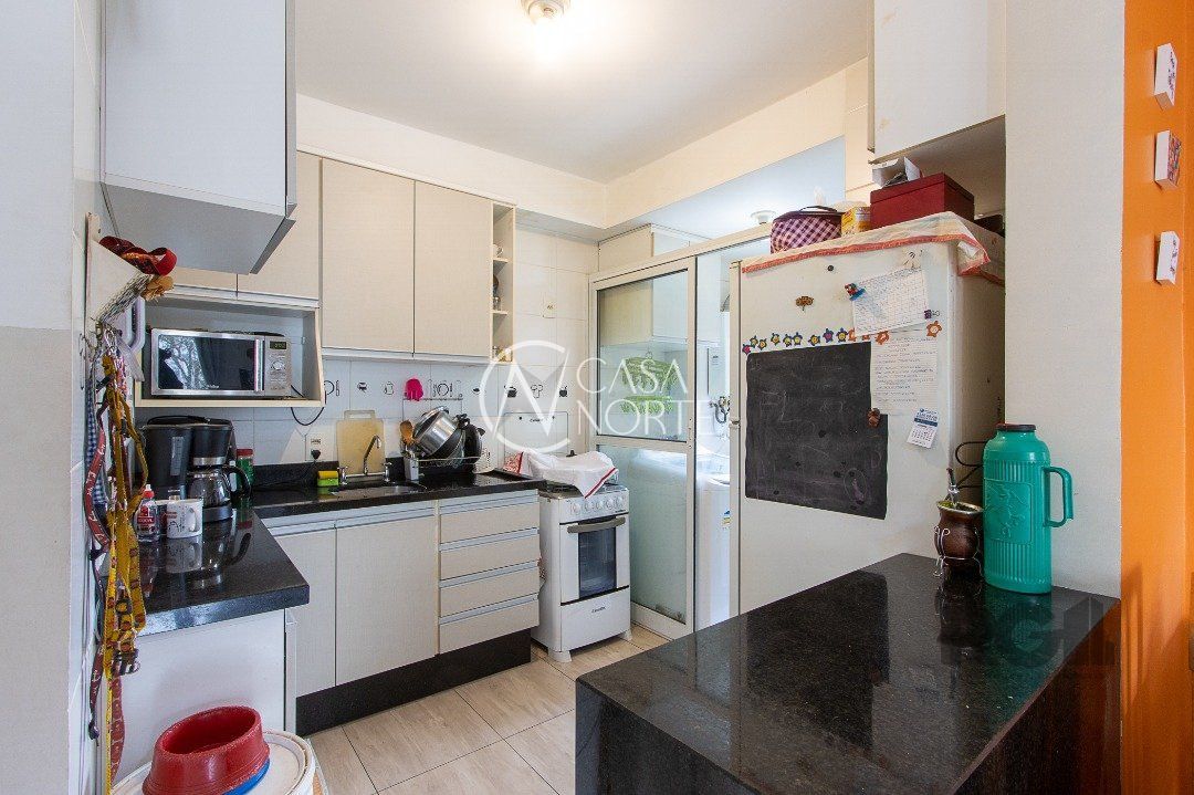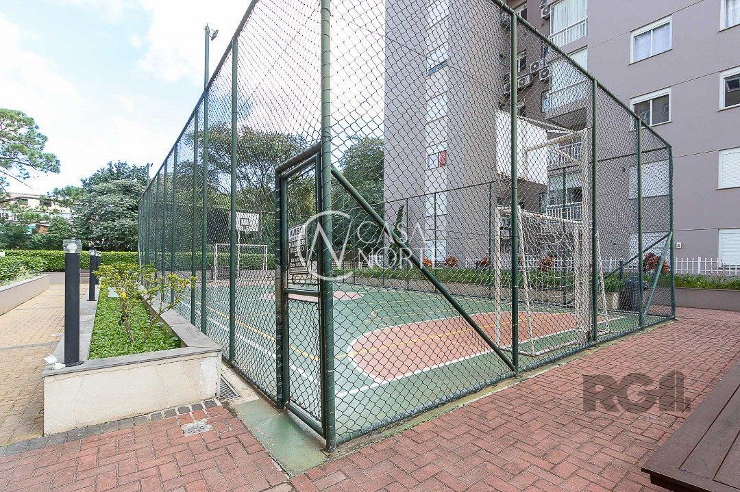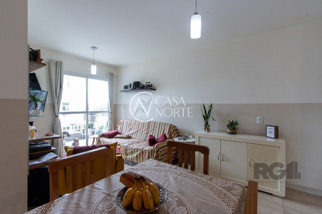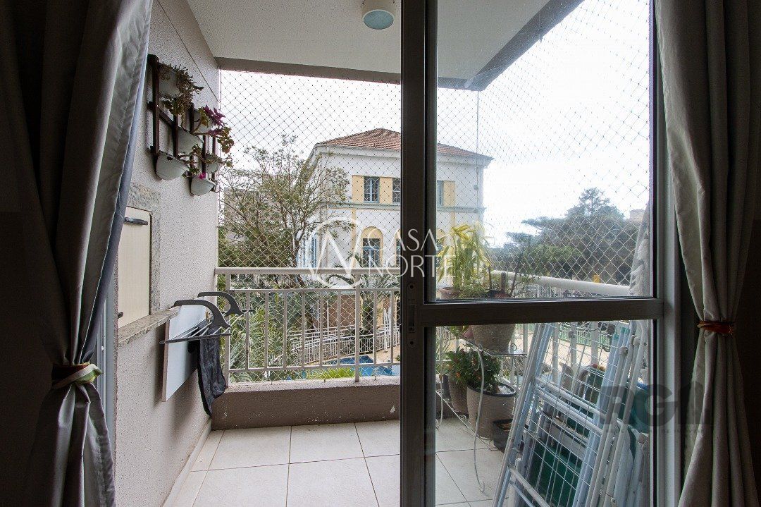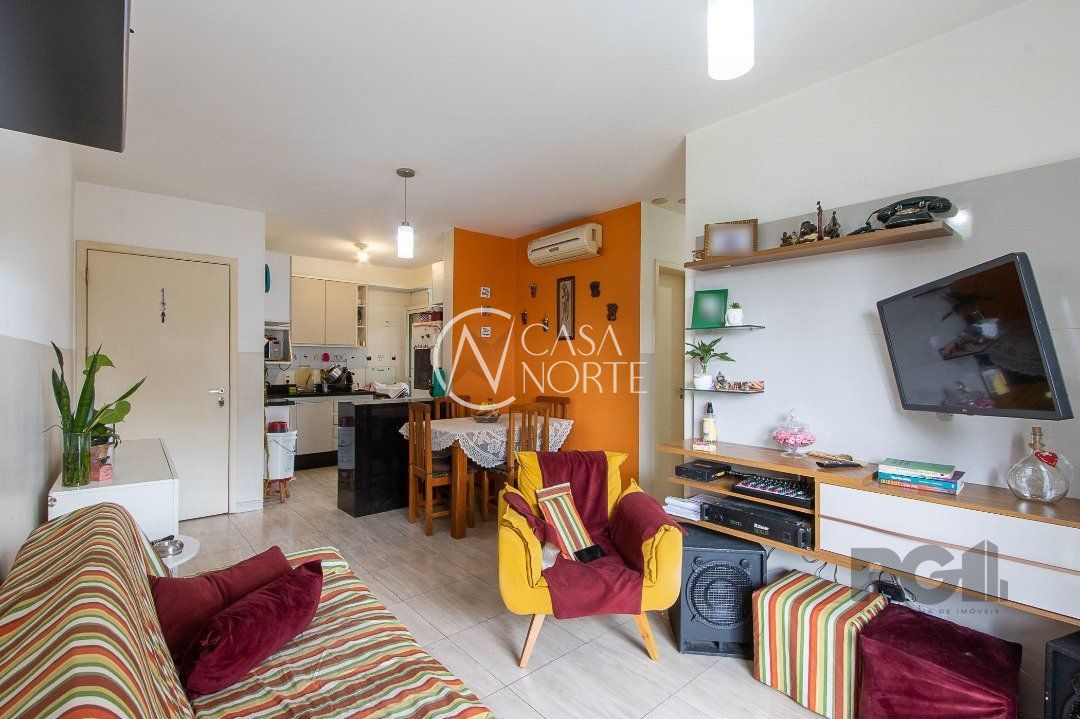 Apartamento de três dormitórios, uma suíte, living para dois ambientes, sacada com churrasqueira, cozinha planejada, área de serviço, banheiro social e uma vaga de garagem coberta.
