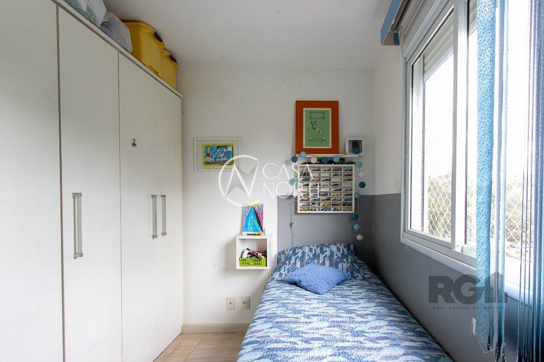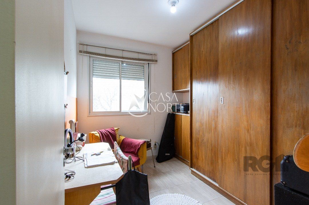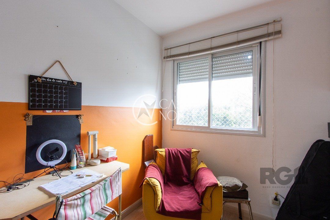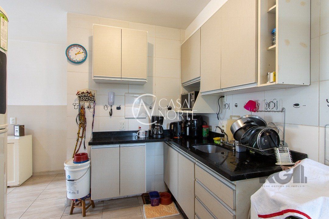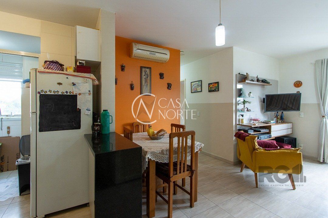 Apartamento de três dormitórios, uma suíte, living para dois ambientes, sacada com churrasqueira, cozinha planejada, área de serviço, banheiro social e uma vaga de garagem coberta.