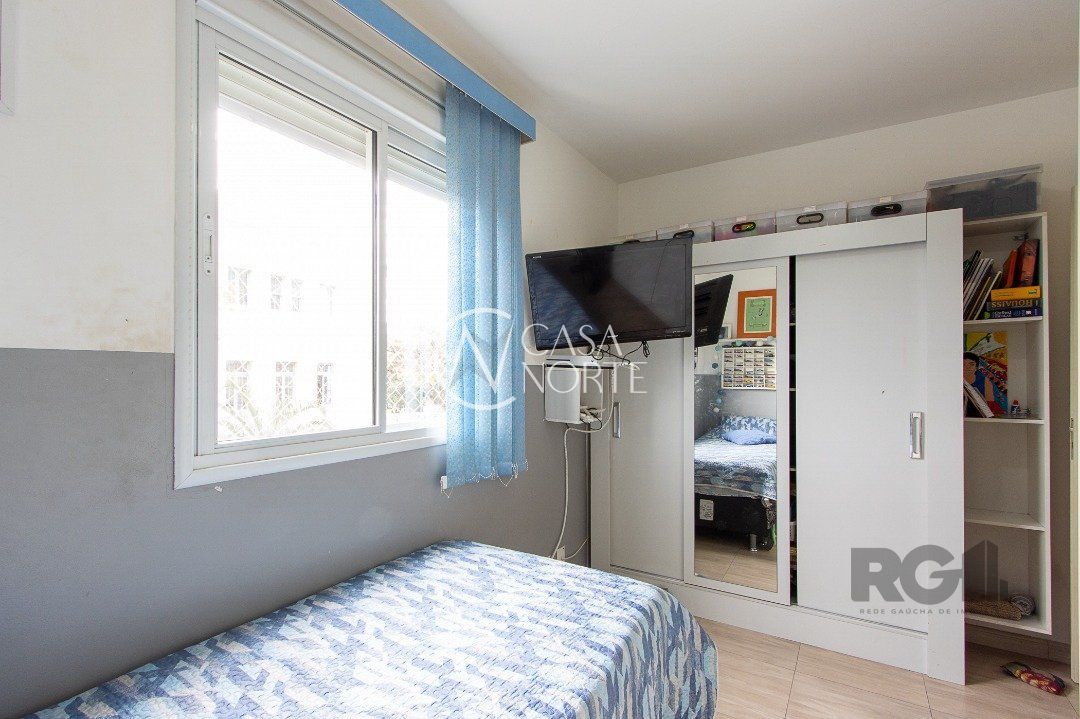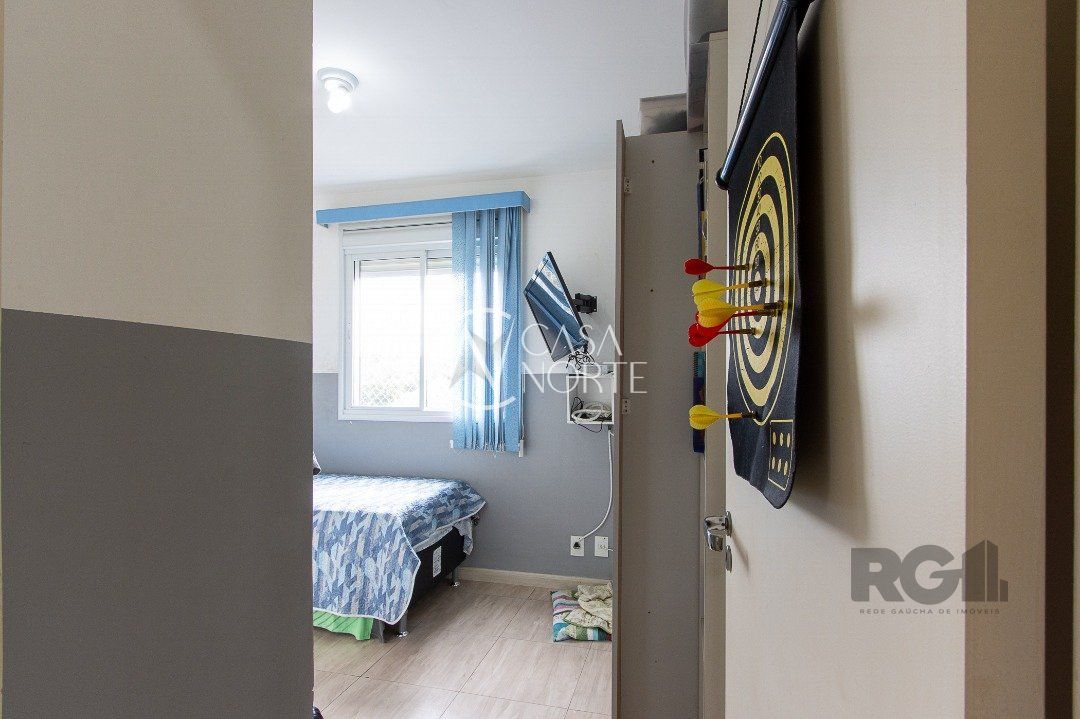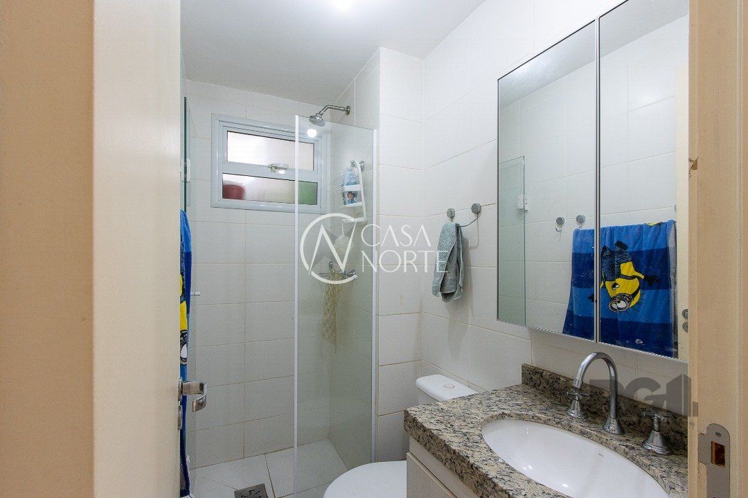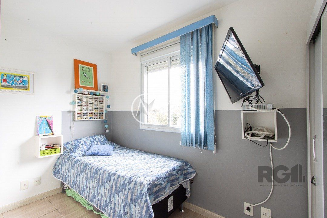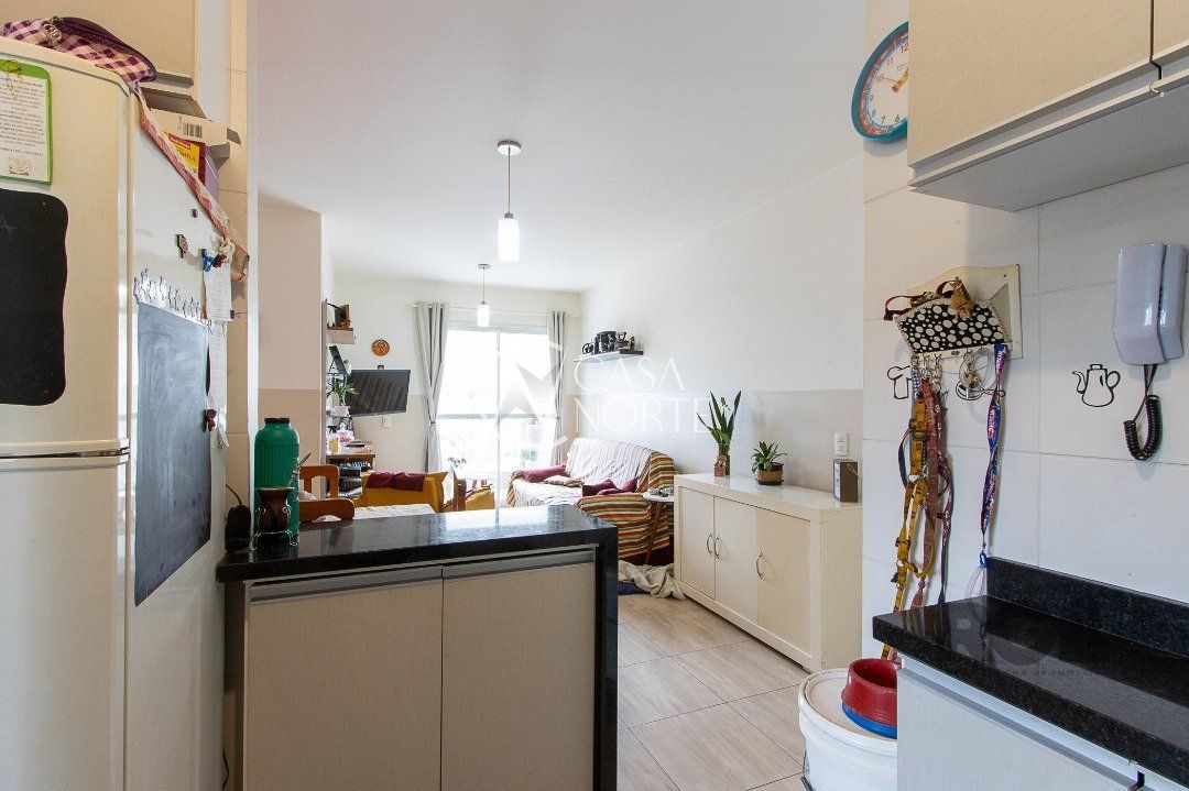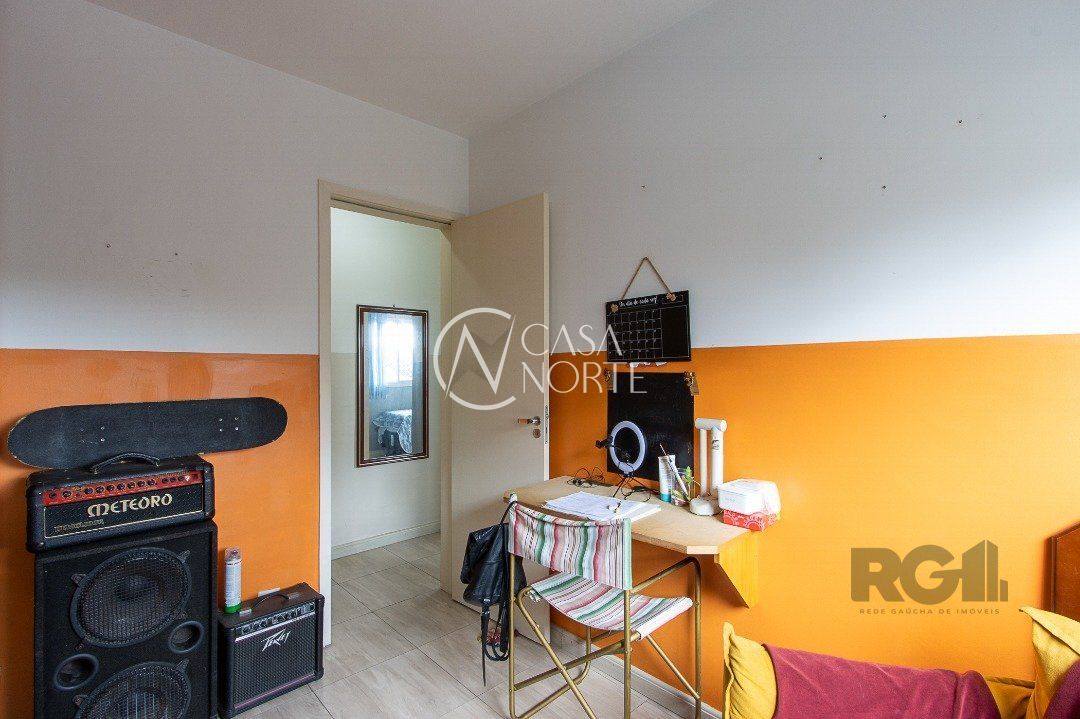 Apartamento de três dormitórios, uma suíte, living para dois ambientes, sacada com churrasqueira, cozinha planejada, área de serviço, banheiro social e uma vaga de garagem coberta.