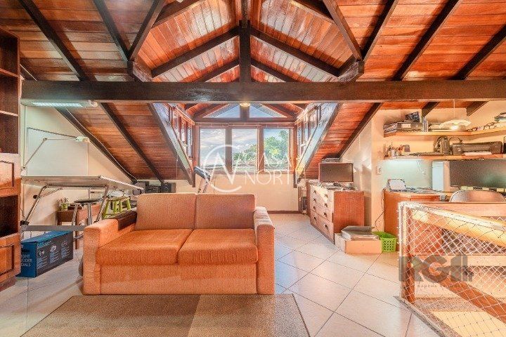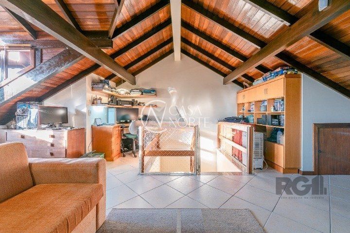 O sótão amplo é um espaço versátil que pode ser utilizado como sala de estar,
