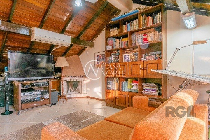 sala de jogos ou até mesmo um home office, e possui uma lareira para os dias mais frios.