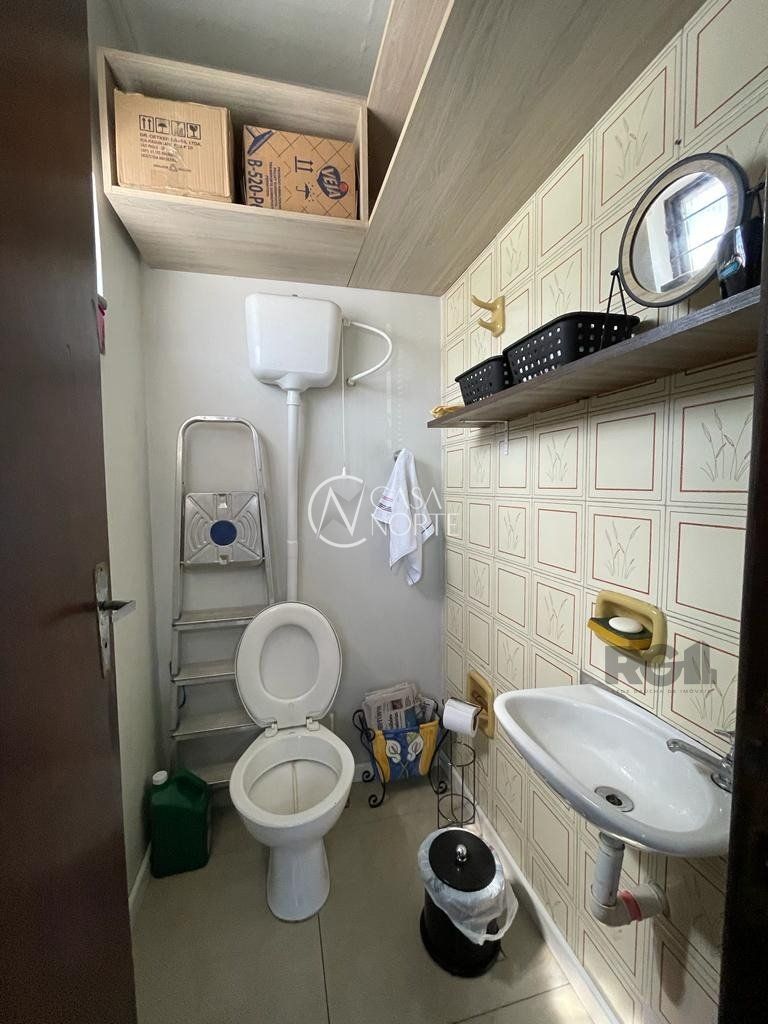 O banheiro, limpo e bem cuidado, está convenientemente localizado nas proximidades, oferecendo comodidade tanto para os ocupantes da sala quanto para os visitantes.