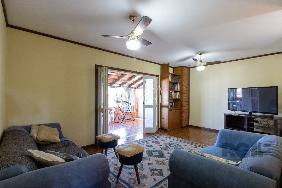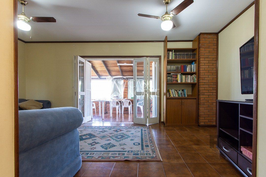 Bellíssimo sobrado nos altos do bairro Santa Teresa, emoldurado por um lindo jardim, com 4 dormitórios sendo 1 suíte com sacada, amplo living em dois ambientes de estar sendo um com lareira, sala de jantar, cozinha semi-mobiliada, área gourmet com churrasqueira, sala de TV, home office opção para atelier, edícula, 3 vagas de garagem cobertas e mais 2 descobertas. Permanecem no imóvel todos os móveis fixos.