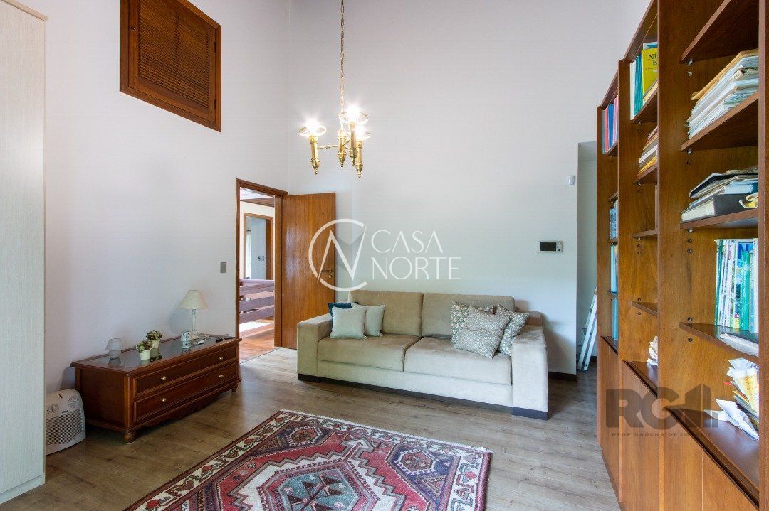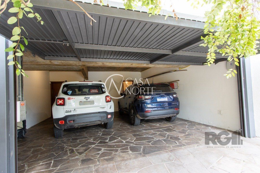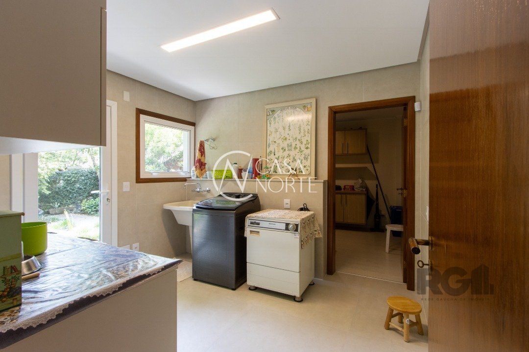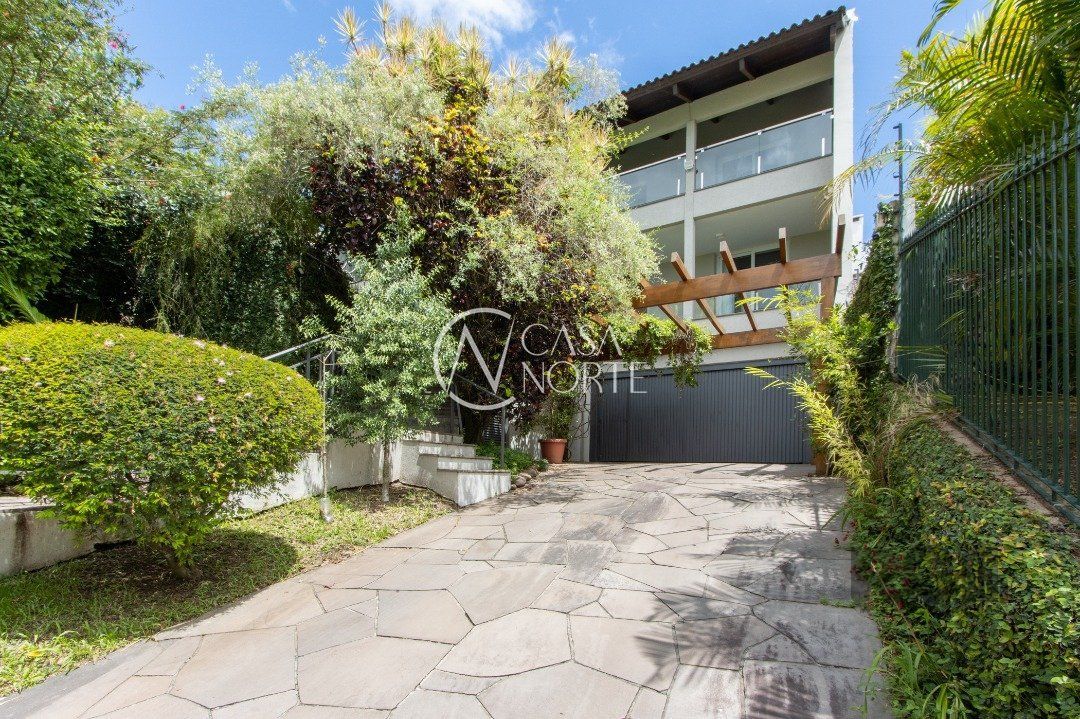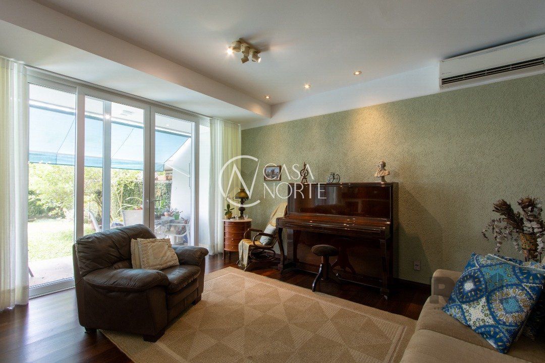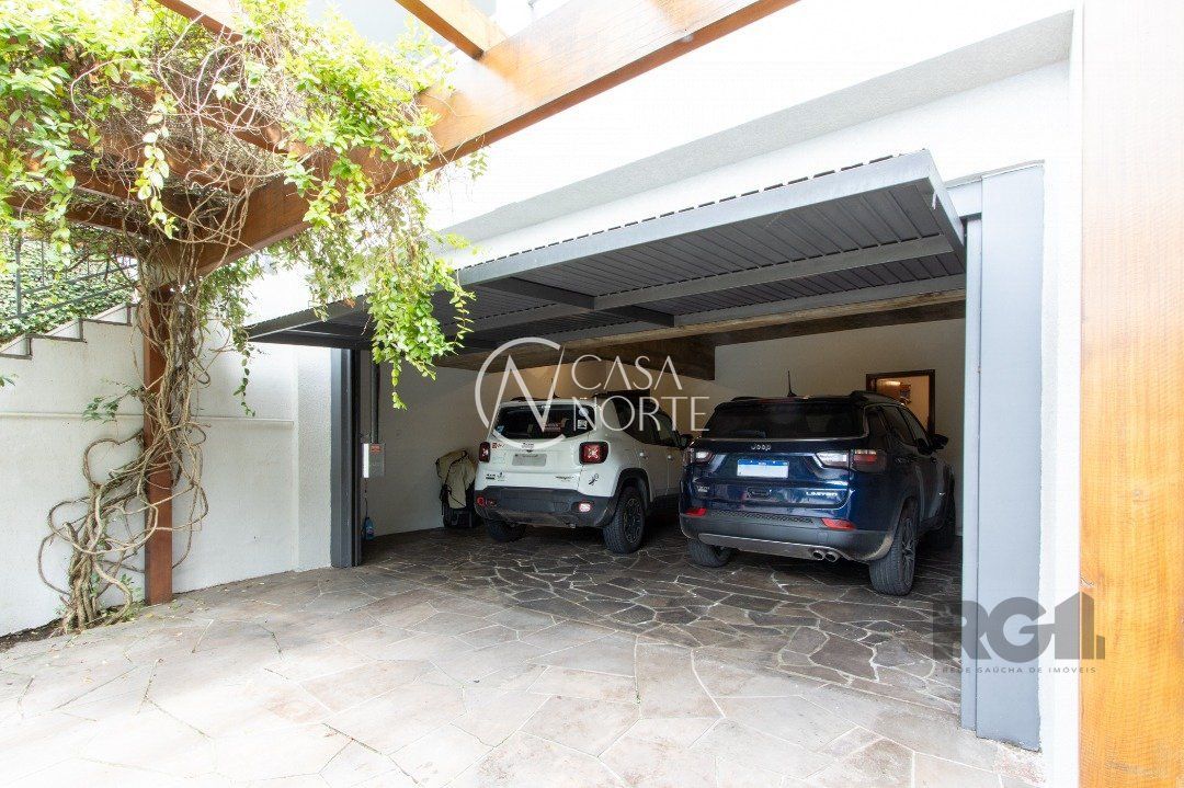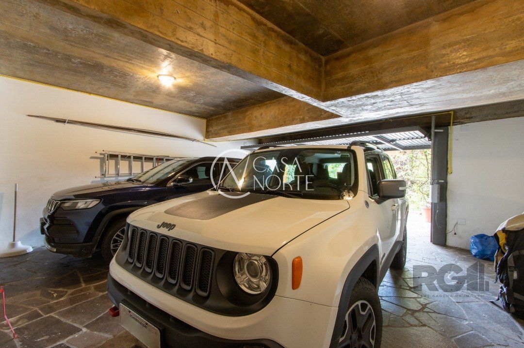 Impecável sobrado com bela vista para o Rio, 3 dormitórios, 2 suítes, sendo uma com closet e banheira de hidromassagem, living 3 ambientes com lareira, gabinete, lavabo, sala de jantar, cozinha com móveis sob medida, espaço gourmet com churrasqueira e fogão à lenha, lavanderia, dependência de empregada completa, garagem coberta para 4 carros e pátio com piscina. Com 460 m² de área construída, em terreno com 569 m².