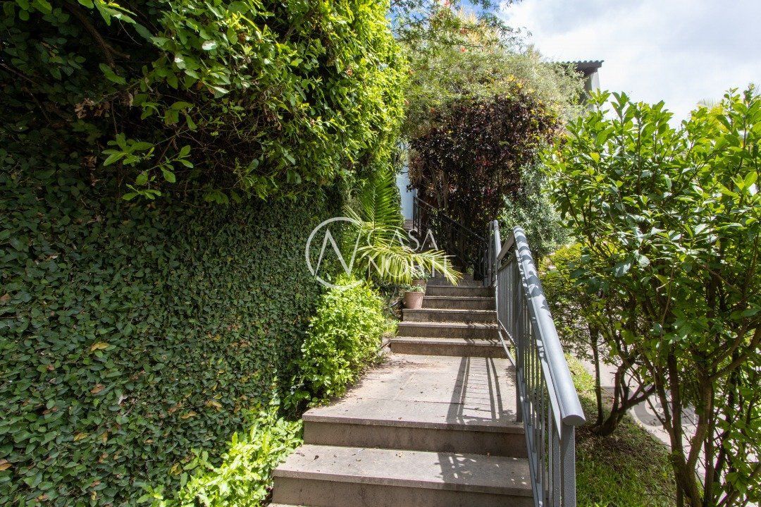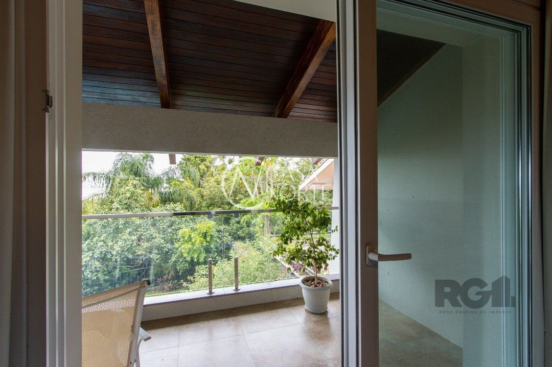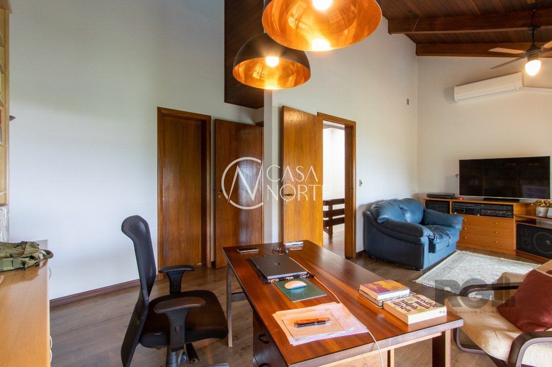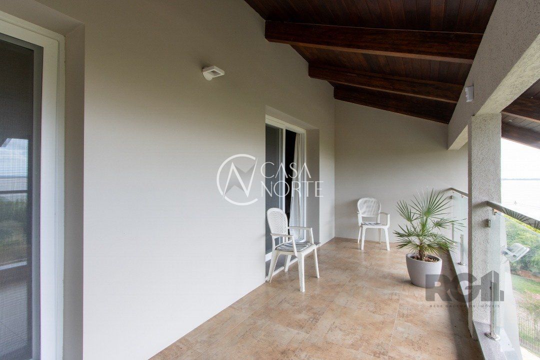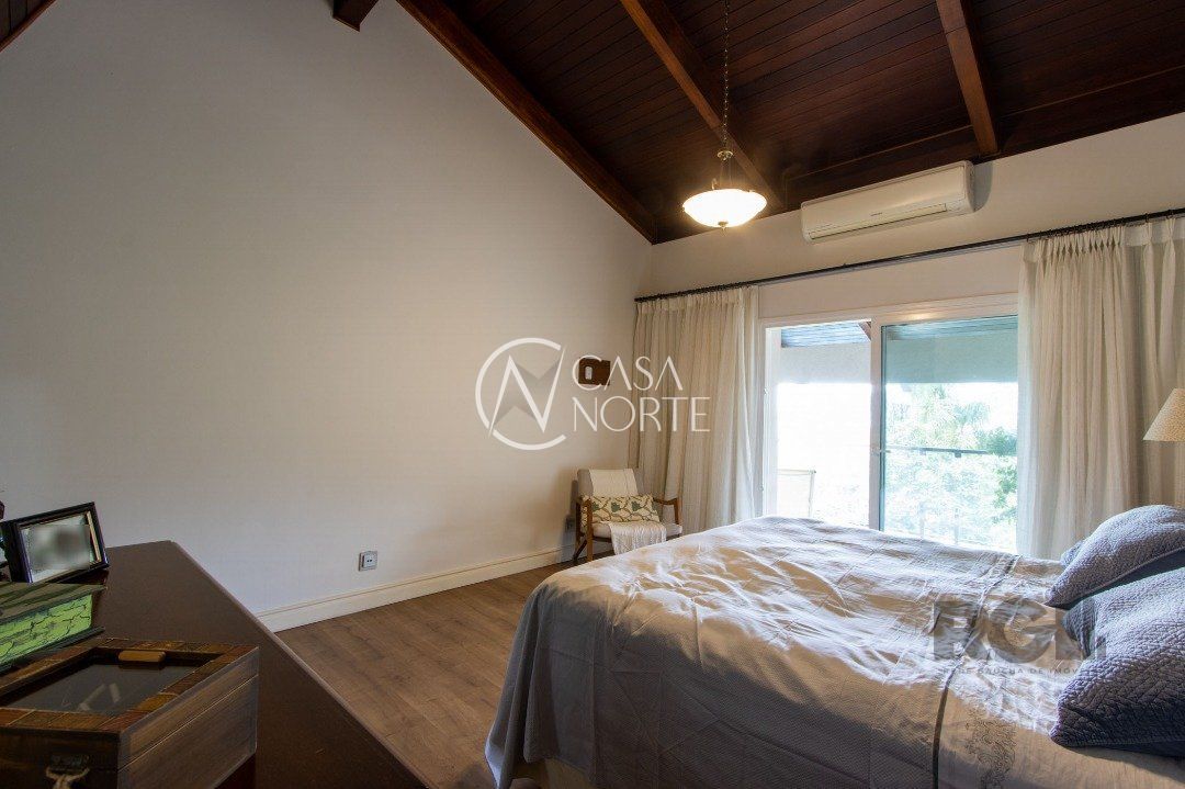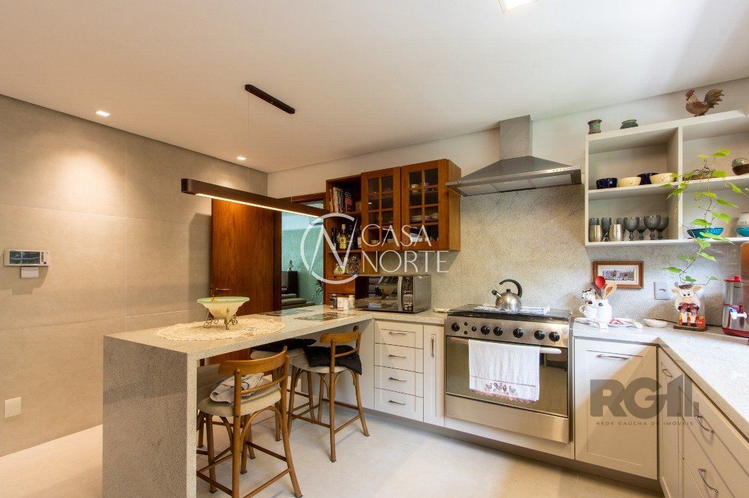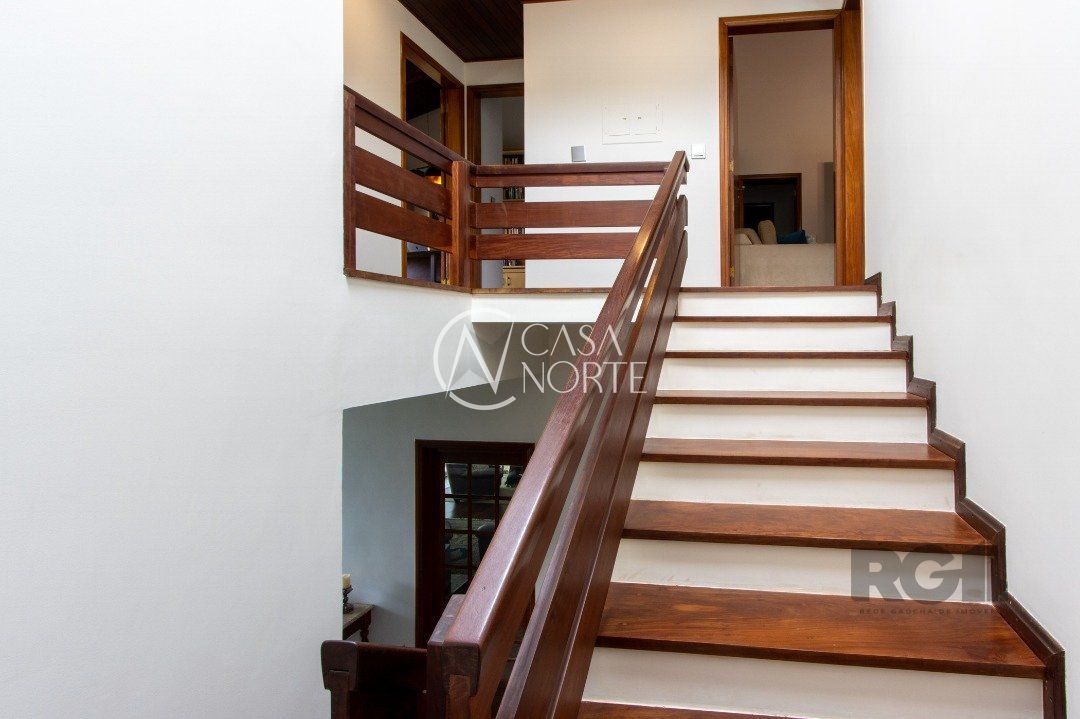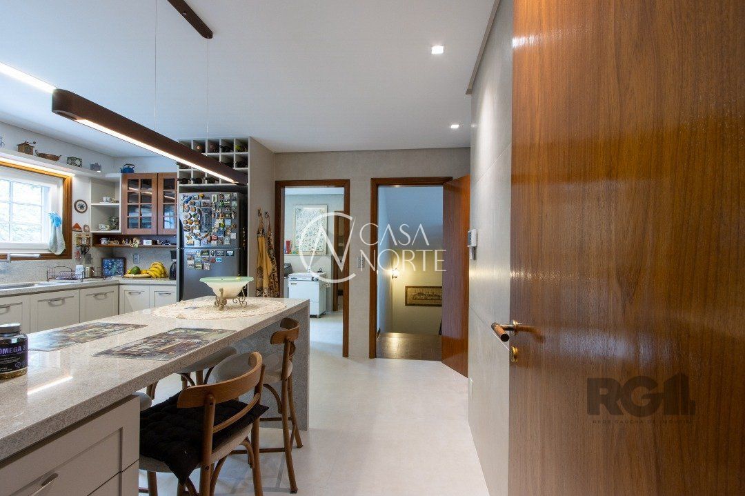 Impecável sobrado com bela vista para o Rio, 3 dormitórios, 2 suítes, sendo uma com closet e banheira de hidromassagem, living 3 ambientes com lareira, gabinete, lavabo, sala de jantar, cozinha com móveis sob medida, espaço gourmet com churrasqueira e fogão à lenha, lavanderia, dependência de empregada completa, garagem coberta para 4 carros e pátio com piscina. Com 460 m² de área construída, em terreno com 569 m².