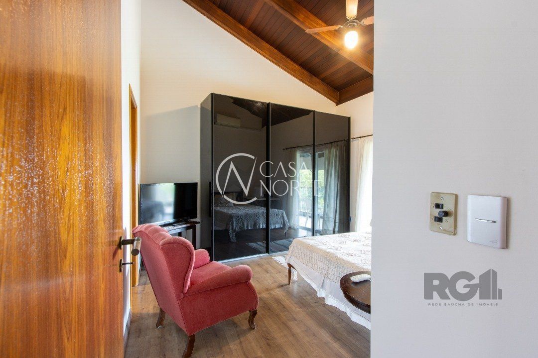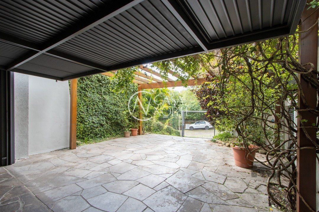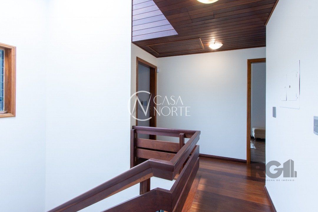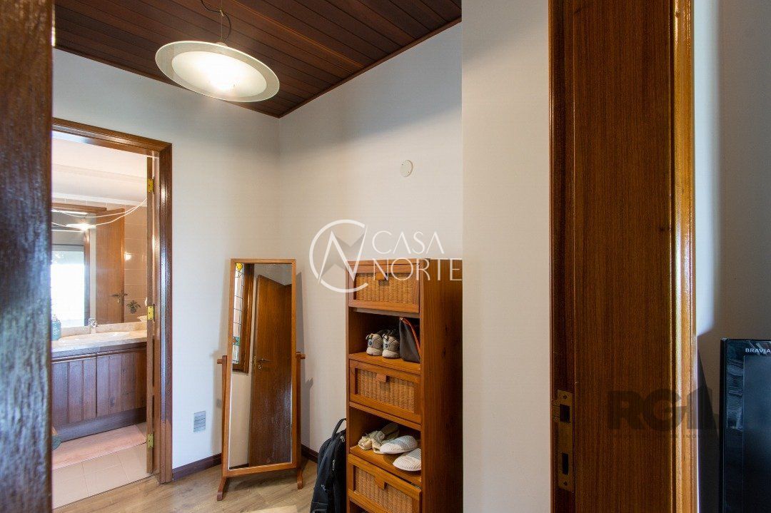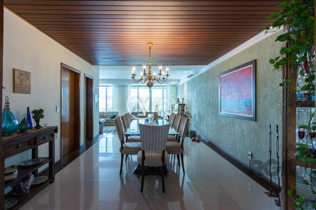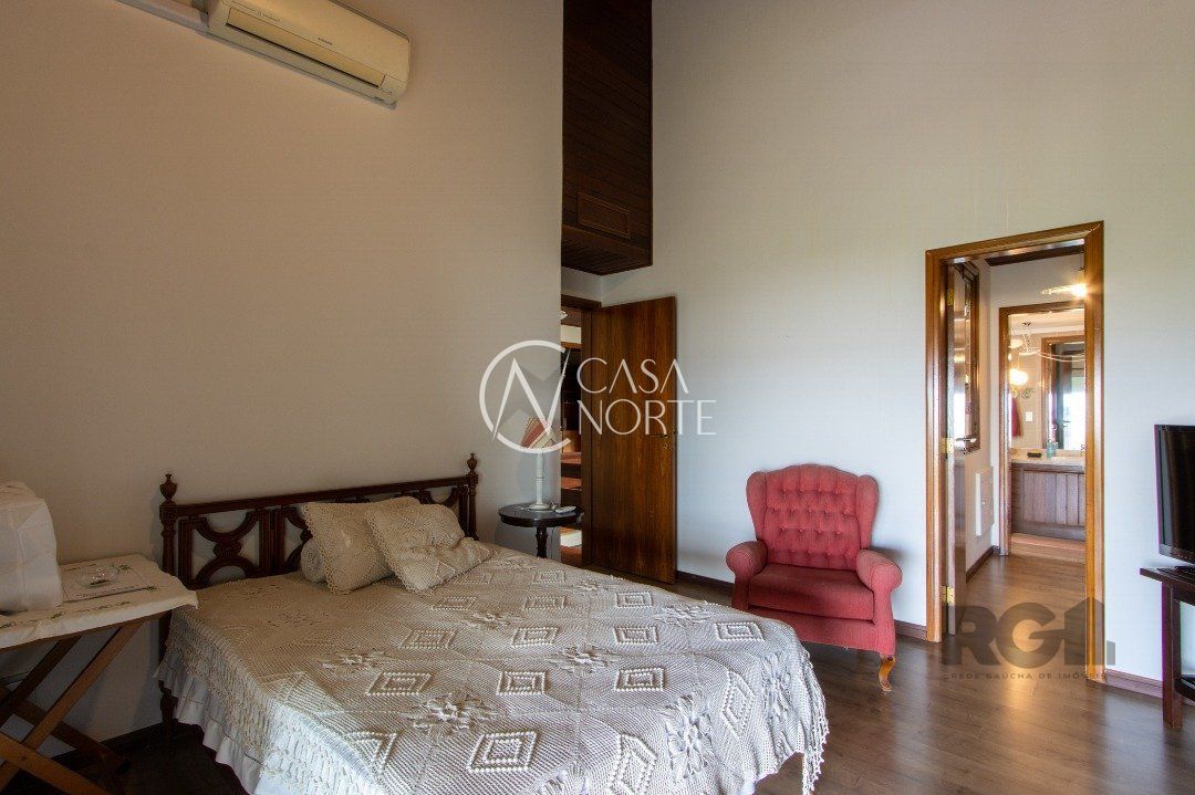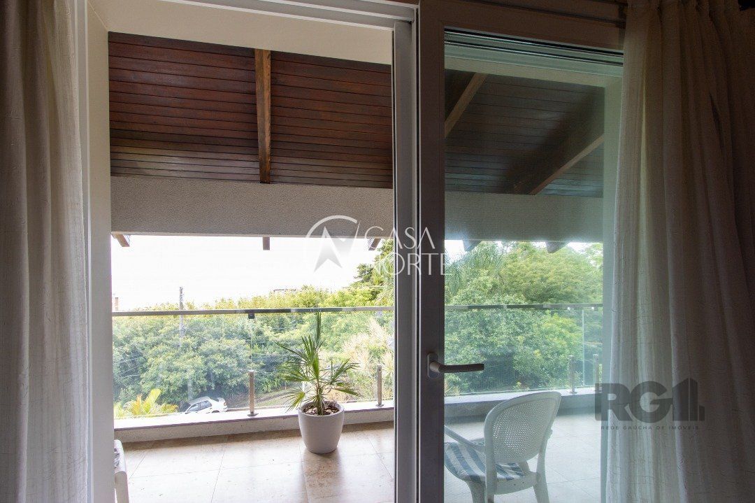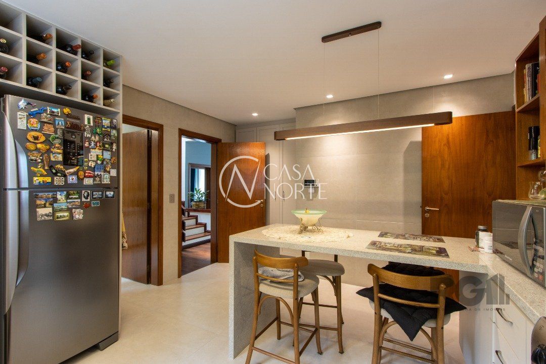 Impecável sobrado com bela vista para o Rio, 3 dormitórios, 2 suítes, sendo uma com closet e banheira de hidromassagem, living 3 ambientes com lareira, gabinete, lavabo, sala de jantar, cozinha com móveis sob medida, espaço gourmet com churrasqueira e fogão à lenha, lavanderia, dependência de empregada completa, garagem coberta para 4 carros e pátio com piscina. Com 460 m² de área construída, em terreno com 569 m².
