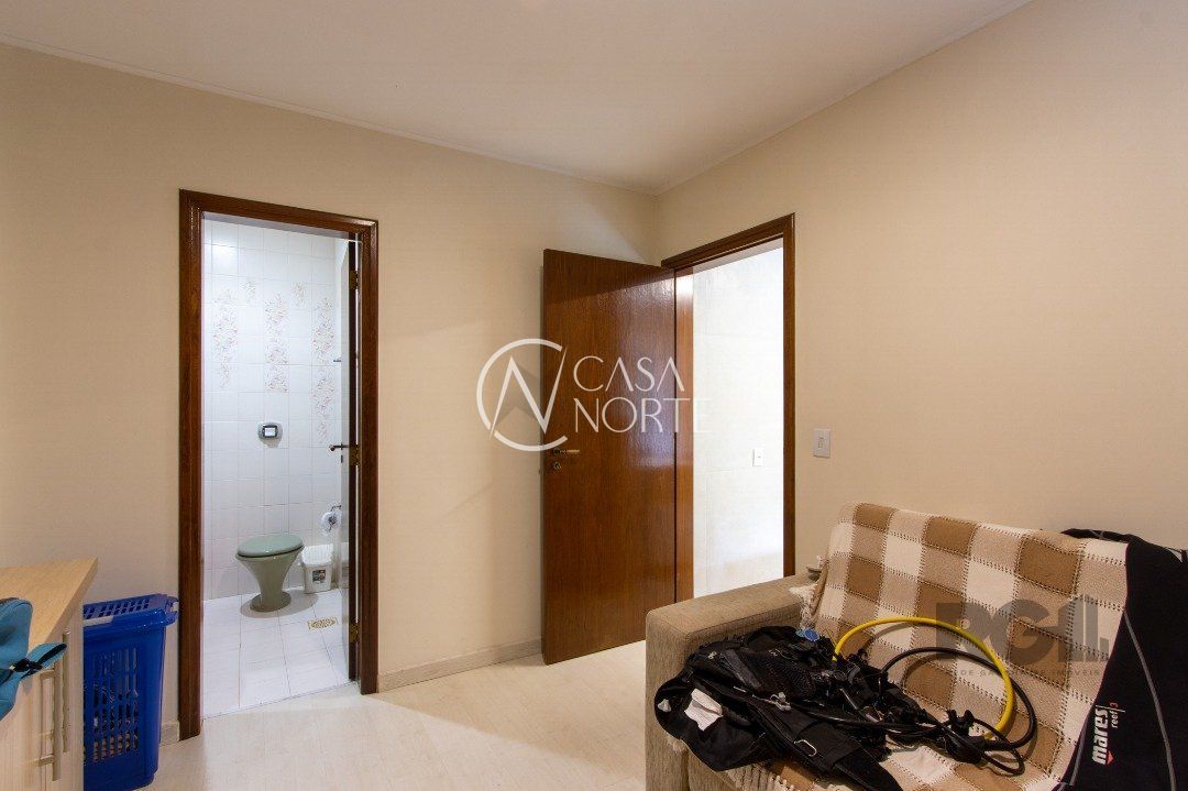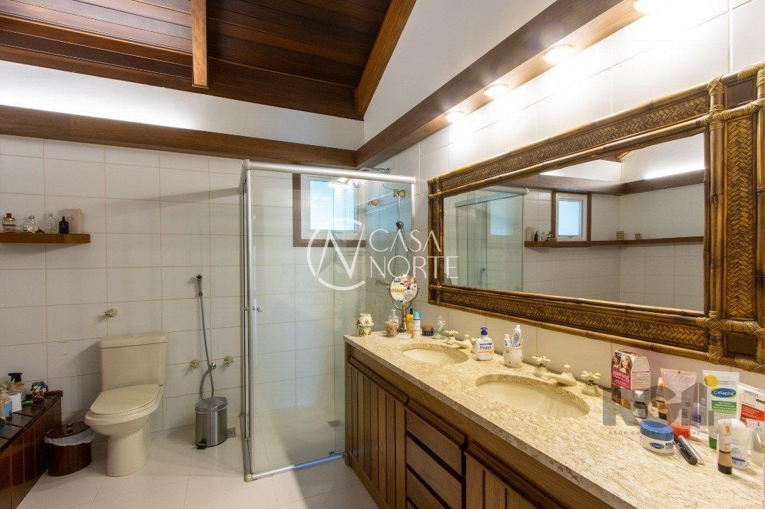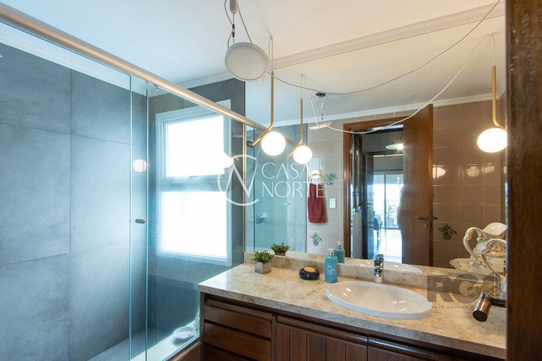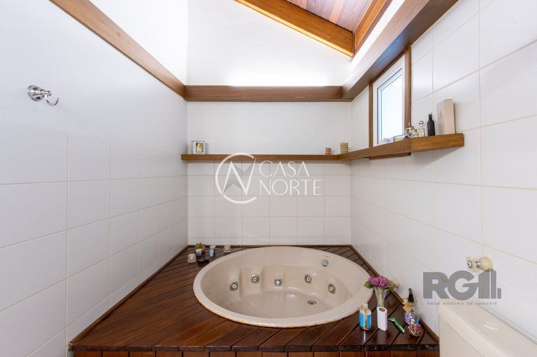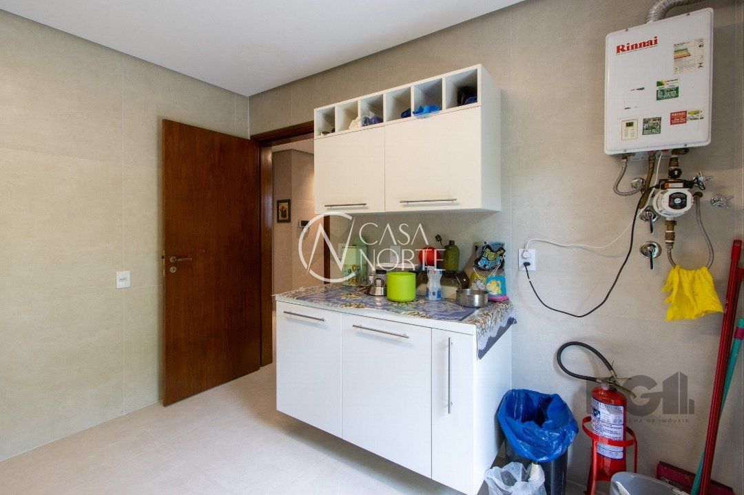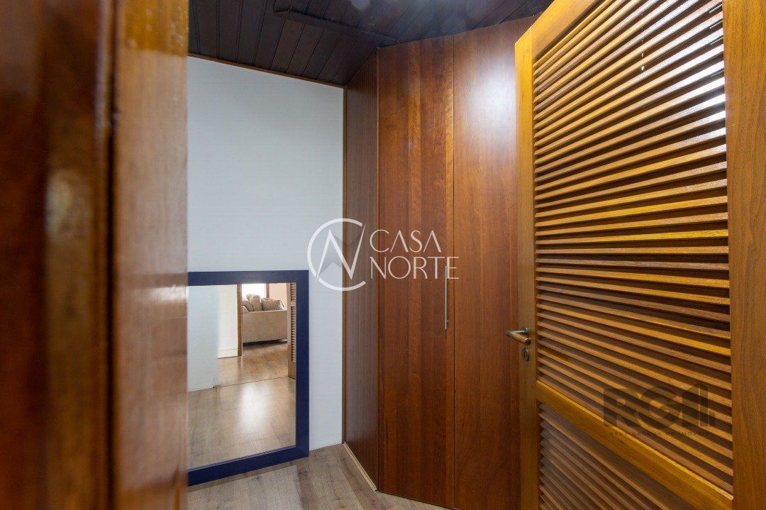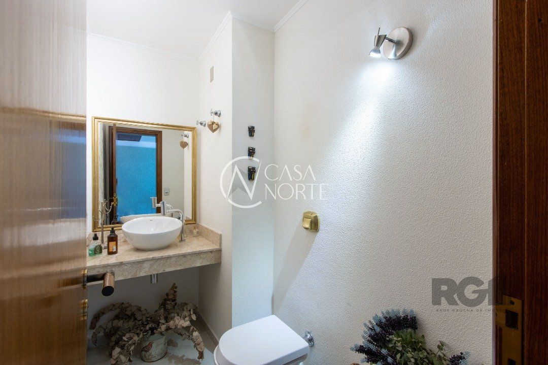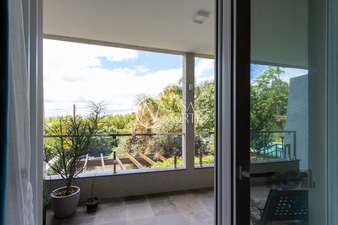 Impecável sobrado com bela vista para o Rio, 3 dormitórios, 2 suítes, sendo uma com closet e banheira de hidromassagem, living 3 ambientes com lareira, gabinete, lavabo, sala de jantar, cozinha com móveis sob medida, espaço gourmet com churrasqueira e fogão à lenha, lavanderia, dependência de empregada completa, garagem coberta para 4 carros e pátio com piscina. Com 460 m² de área construída, em terreno com 569 m².