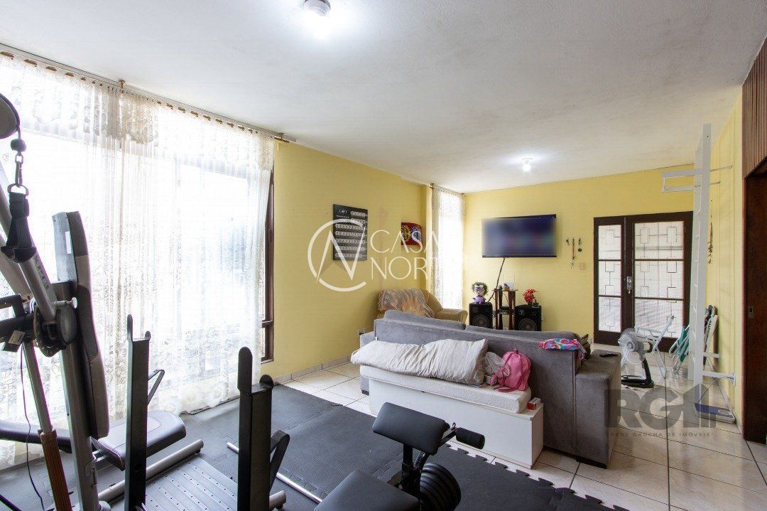 Excelente casa térrea com área privativa de 200m², esta casa conta com 3 dormitórios, 2 banheiros, living 2 ambientes, cozinha, sala de jantar com lareira, churrasqueira em área externa, lavanderia e banheiro auxiliar. Pátio com espaço para 6 carros e portão eletrônico. O estado de conservação do imóvel é ótimo. Piso cerâmico em todas as áreas da casa, incluindo a área íntima. A localização é privilegiada, com topografia plana e uma ótima orientação solar. Próximo a comércios, escolas e com fácil acesso aos principais pontos da cidade. Não perca essa oportunidade de morar em uma casa espaçosa e bem localizada! Agende visita com corretora licenciada, indicada ao lado. Disponível também pelo WhatsApp