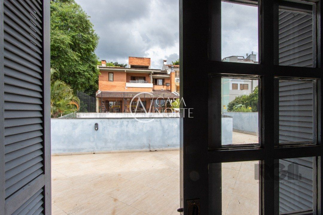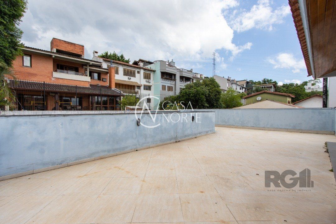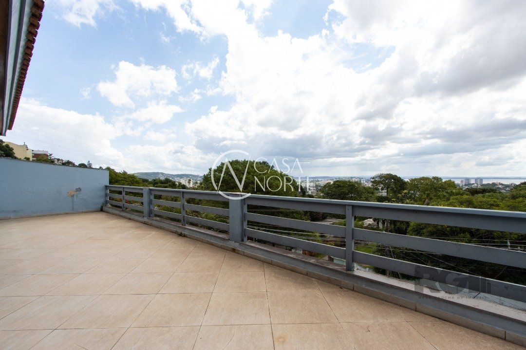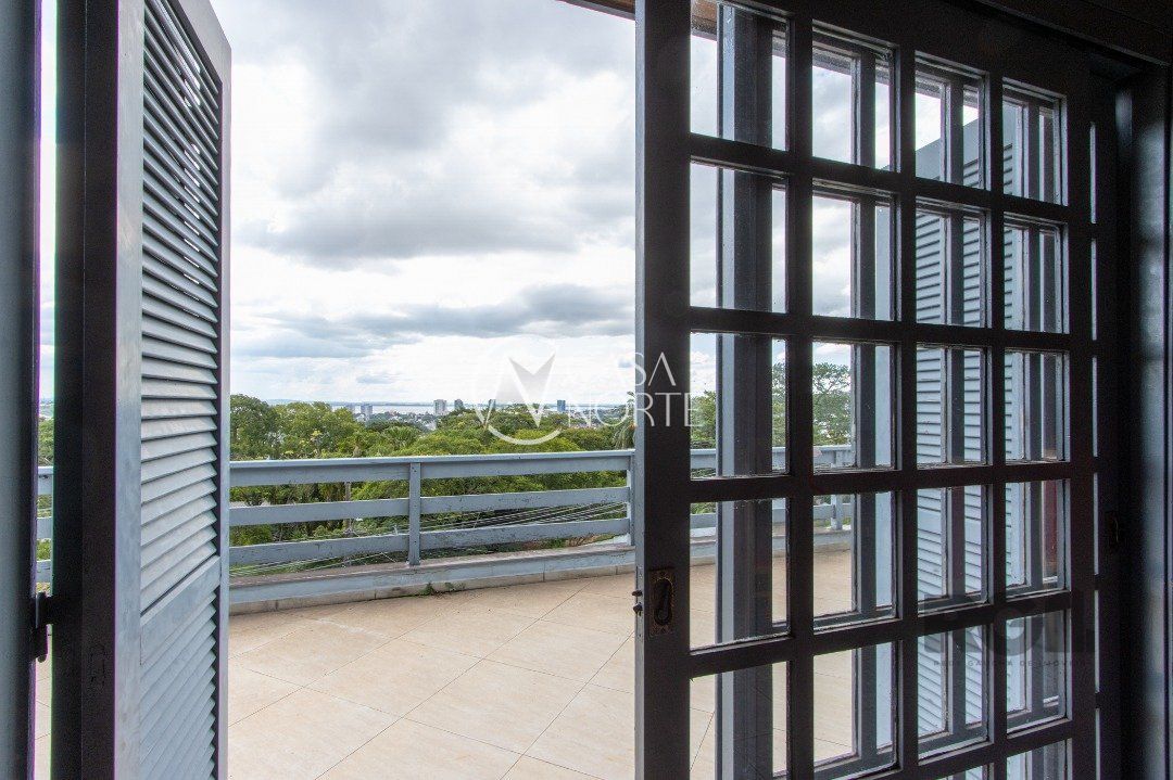 essa casa conta com 4 quartos, sendo 1 suíte, 3 banheiros, living com 3 ambientes , salão de festas com 90m², escritório , hall de entrada ,terraço e sacada com vista para o Guaíba mais 3 vagas de garagem.