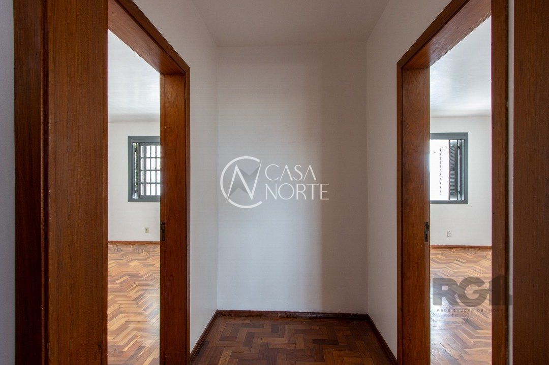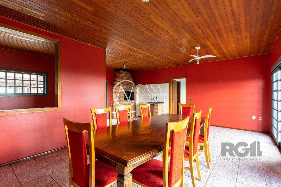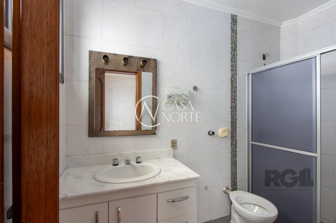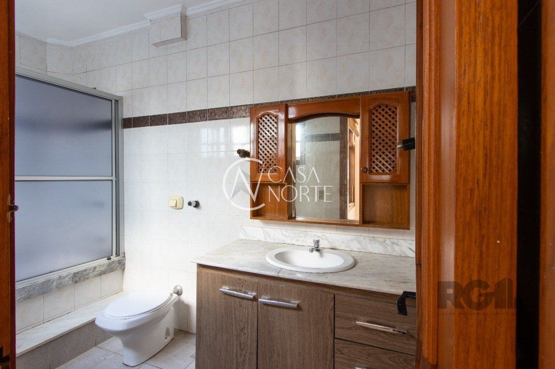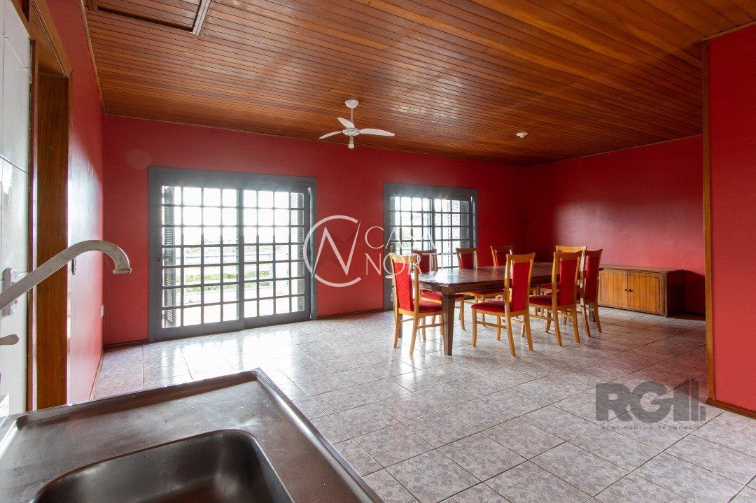 essa casa conta com 4 quartos, sendo 1 suíte, 3 banheiros, living com 3 ambientes , salão de festas com 90m², escritório , hall de entrada ,terraço e sacada com vista para o Guaíba mais 3 vagas de garagem.