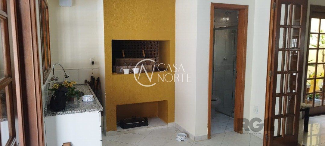 Amplo living com lareira para 2 ambientes, sala de jantar, lavabo, cozinha, churrasqueira, lavanderia e despensa.