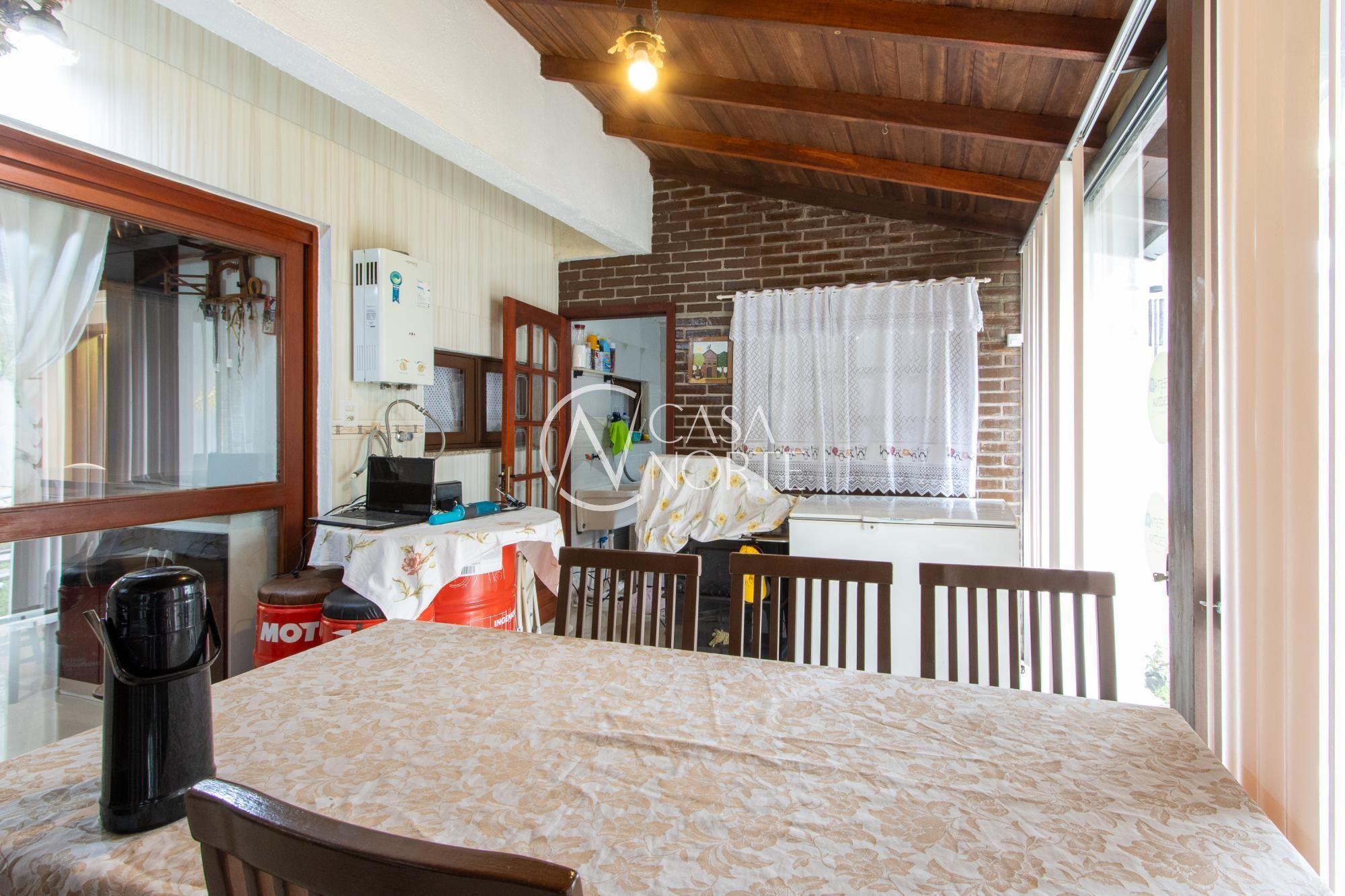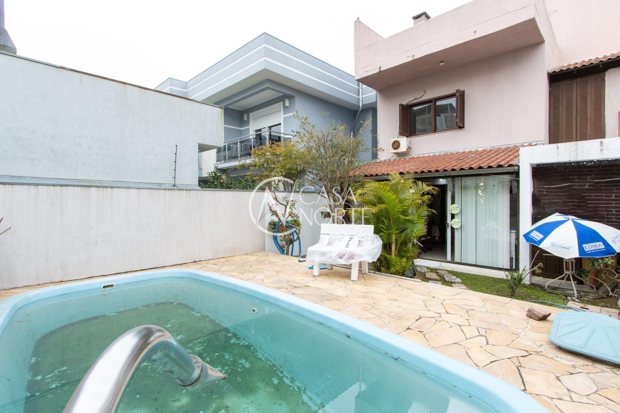 Excelente sobrado com 149,54m², possui 03 dormitórios, sendo 1 suíte com armários/depósito (podendo ser um closet), living para 02 ambientes com jantar, cozinha americana mobiliada, lavabo, lindo espaço gourmet, lavanderia, junker, amplo pátio com piscina, sótão com 2 amplos terraços (podendo ser transformados em mais 1 dormitório), banho social, Split nos dormitórios/living e sótão, 03 vagas cobertas, portão eletrônico e jardim. Estuda dação casa térrea com 3 dormitórios, ou sobrado 2 pavimentos com suíte no térreo no Lagos de Nova Ipanema.