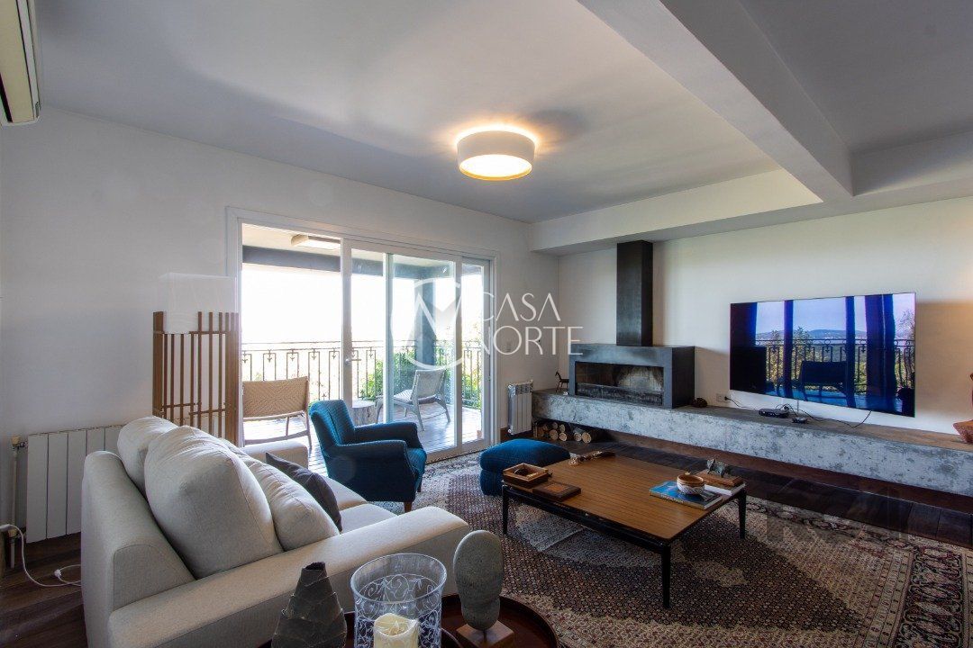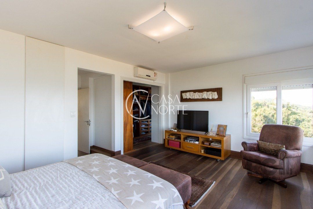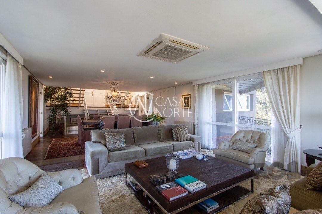 Imóvel em níveis com lances curtos de escada, living com sacada vista panorâmica do rio, integrado a grande copa cozinha com churrasqueira. Na parte inferior, estar com lareira, também com sacada e vista panorâmica, salão de festas com churrasqueira e gabinete. A Casa conta com 3 dormitórios, sendo 1 suite master com closet e banheira de hidro com vista para o rio. Contando também com lindo pátio, quiosque gourmet com churrasqueira e piscina.