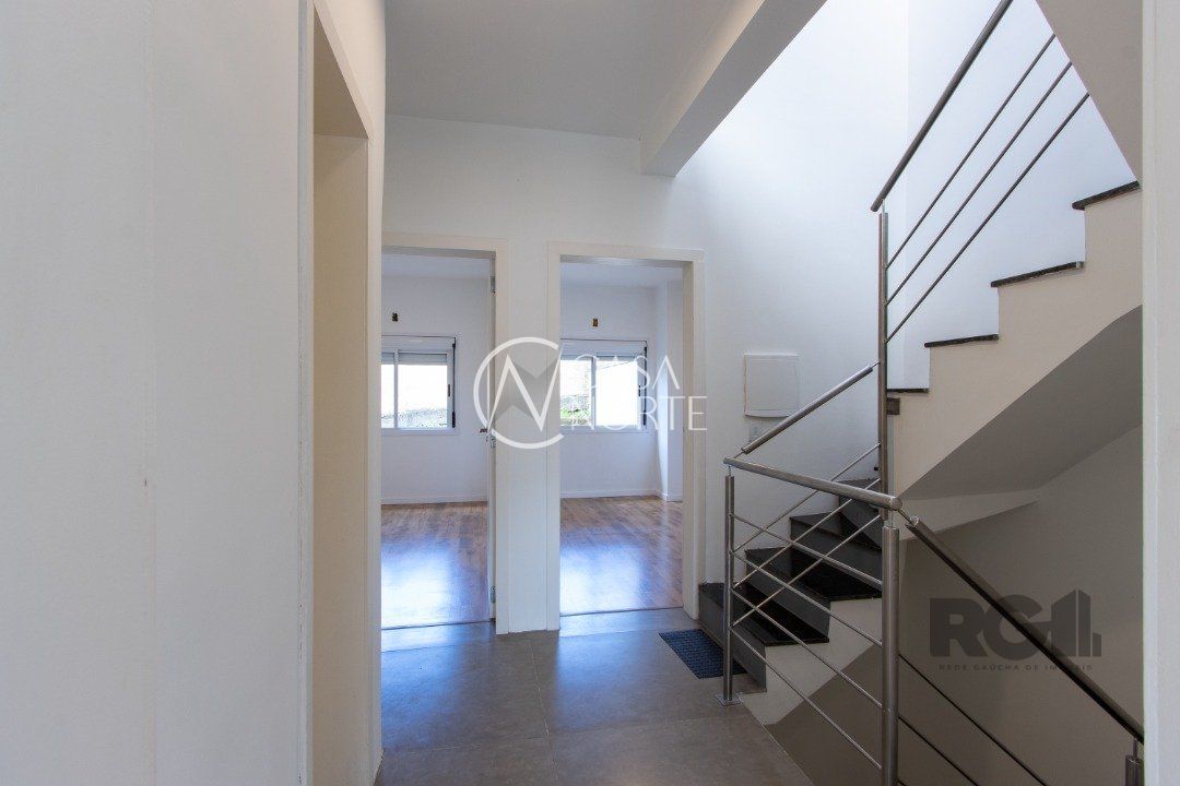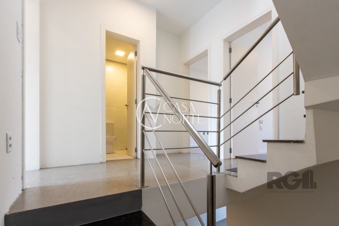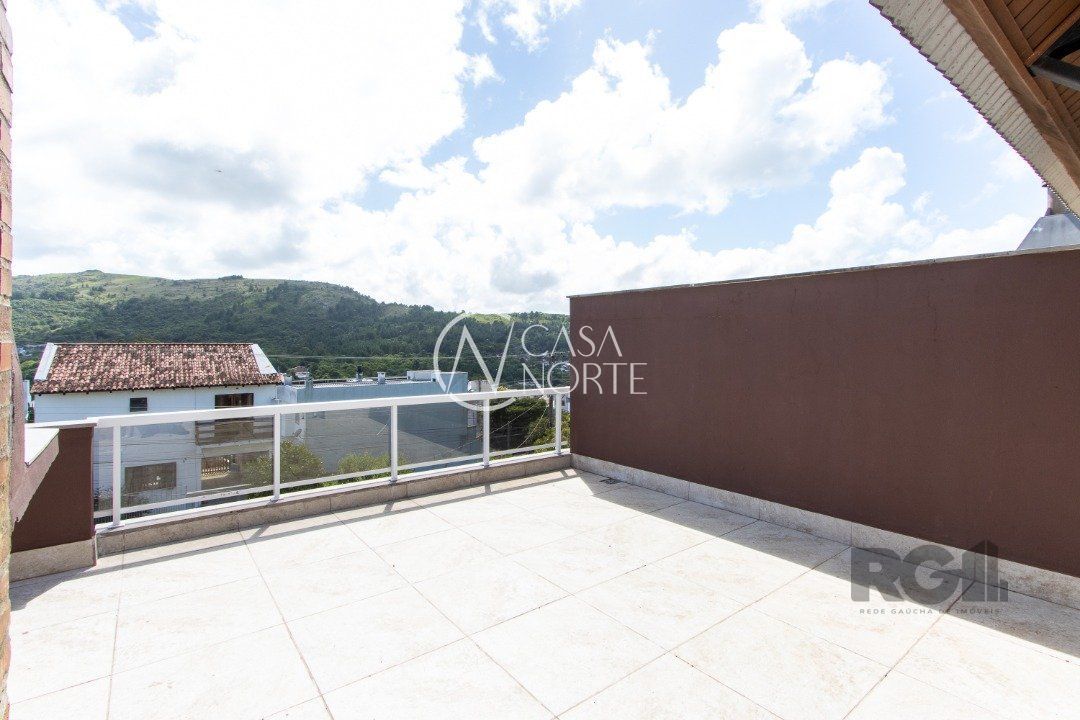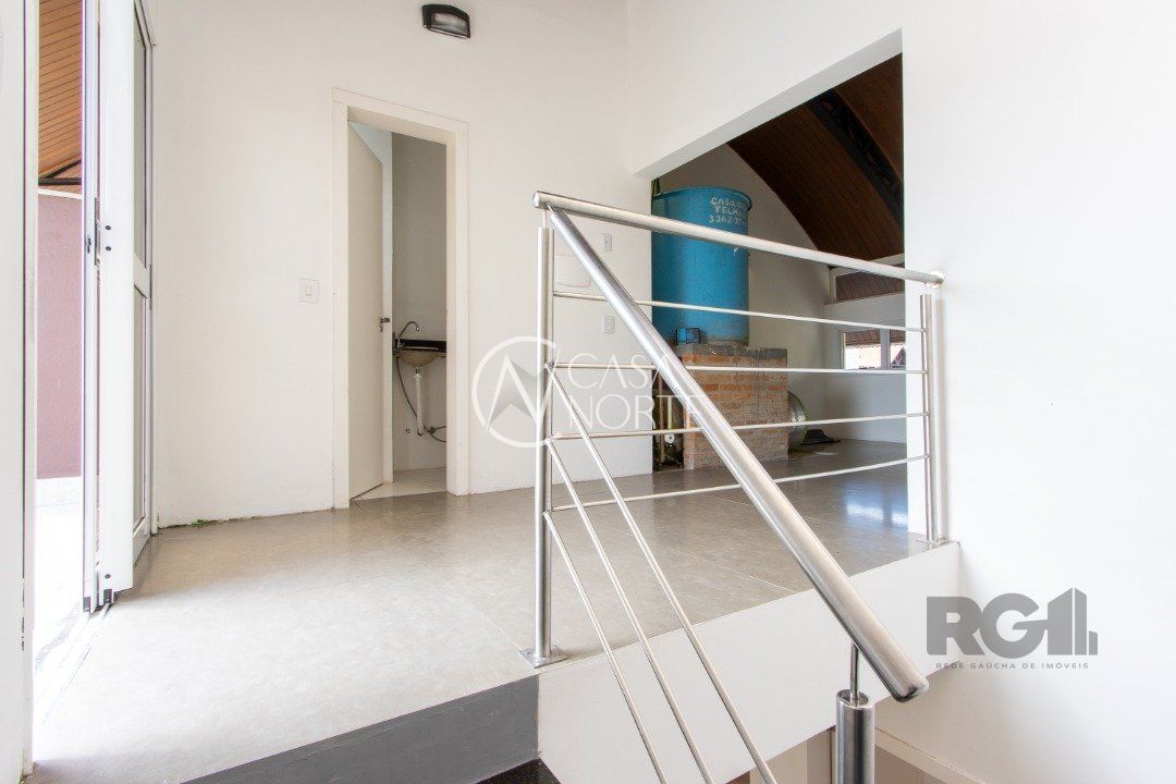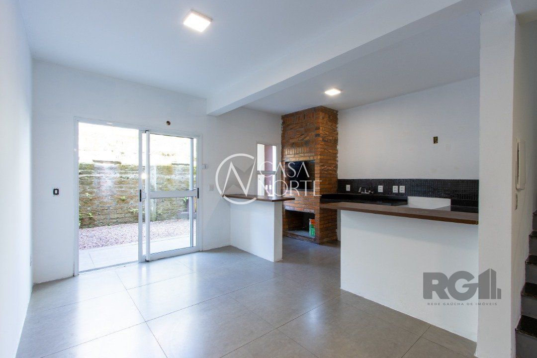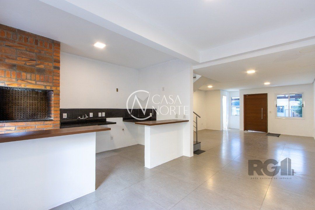 Casa triplex para venda no bairro Hípica, com aproximadamente 150m² de área privativa, piso porcelanato, 03 dormitórios sendo 01 suíte e espera para banheira de hidromassagem, 04 banheiros, living de 2 ambientes, cozinha americana com pia e churrasuqueira, área de serviço com tanque, esquadrias externas em aluminio branco com vidro de 4mm, ja instalada placa de energia solar, clarabóia, espera para lareira, lavabo e hall.