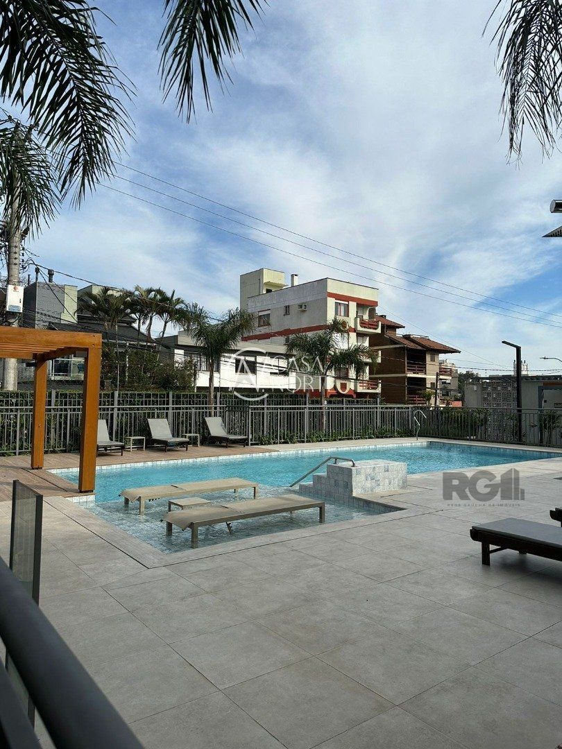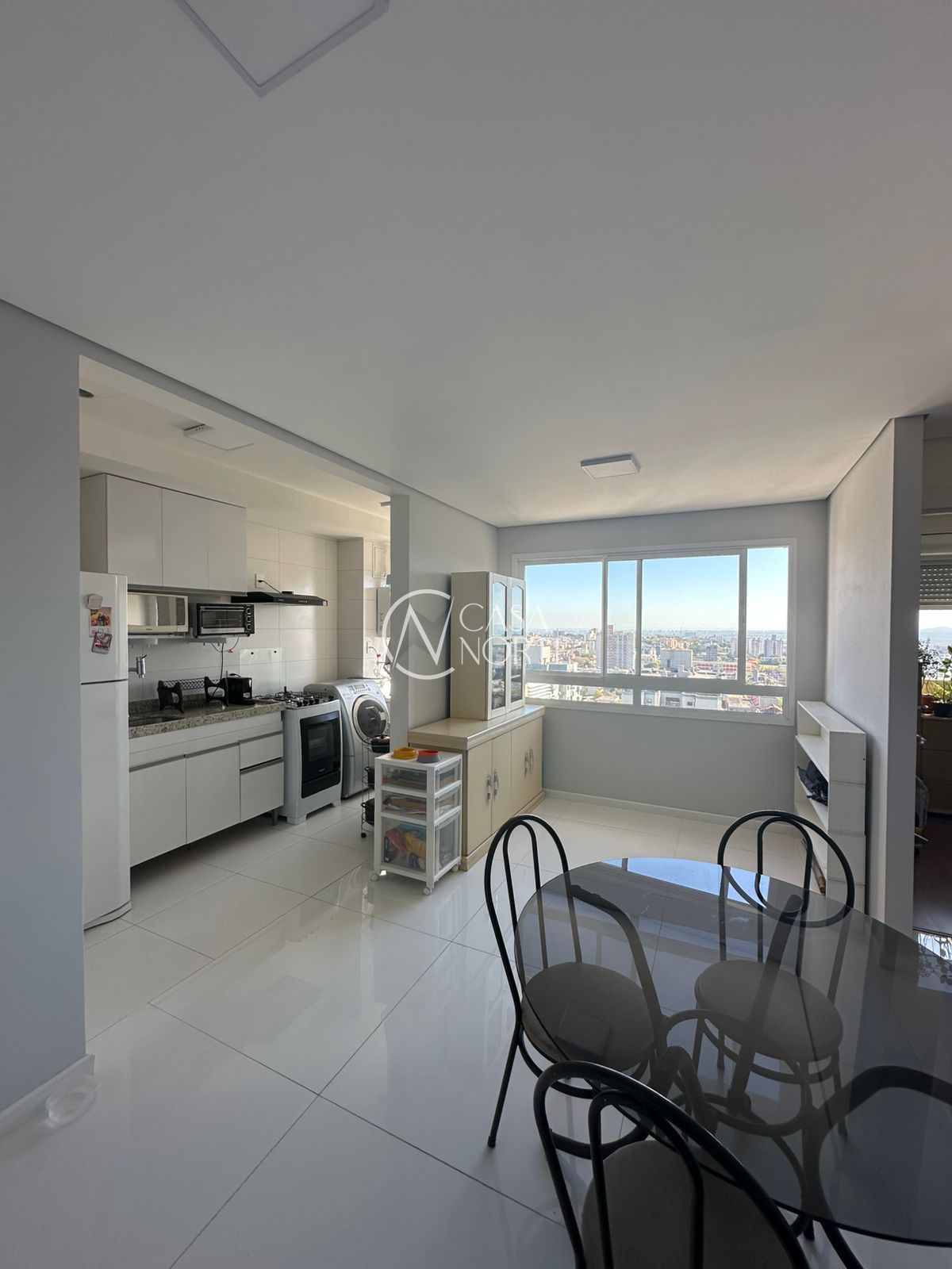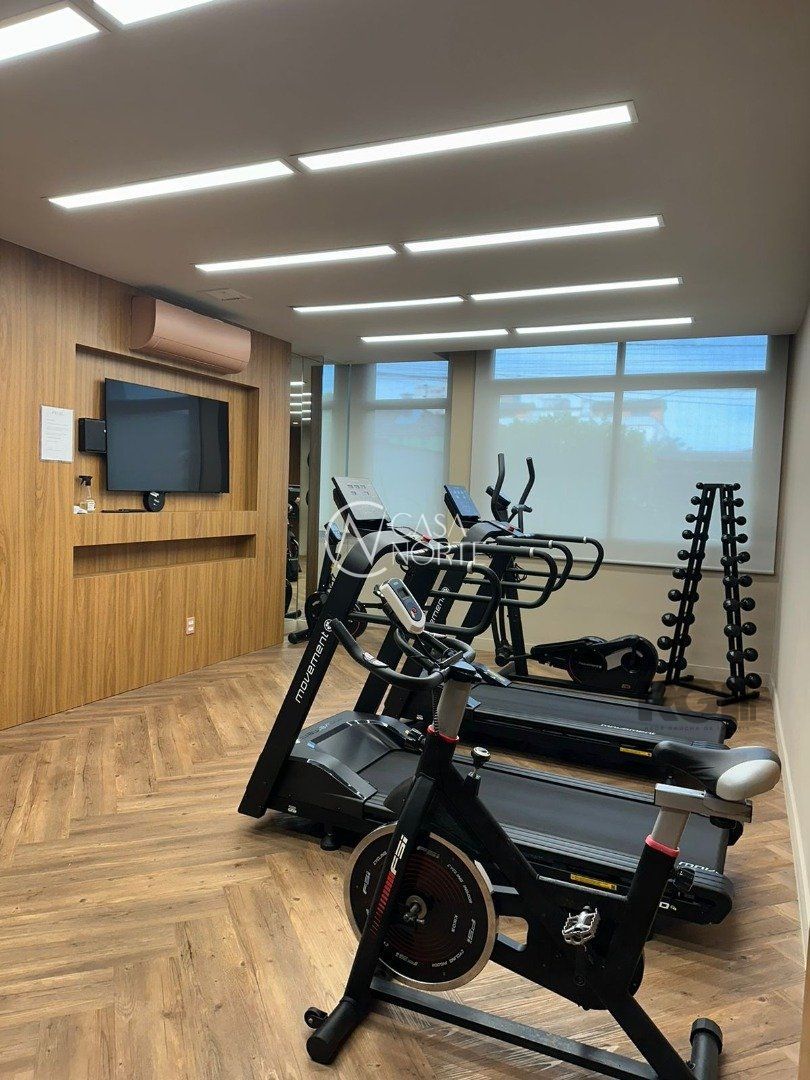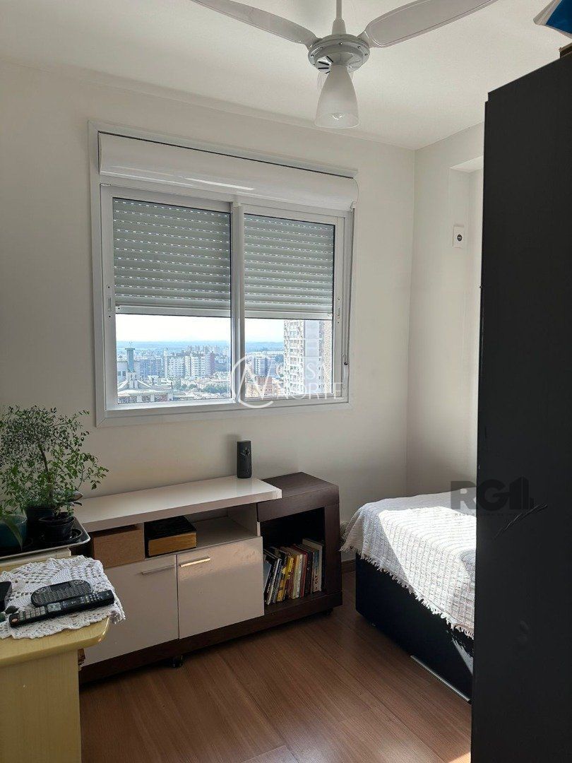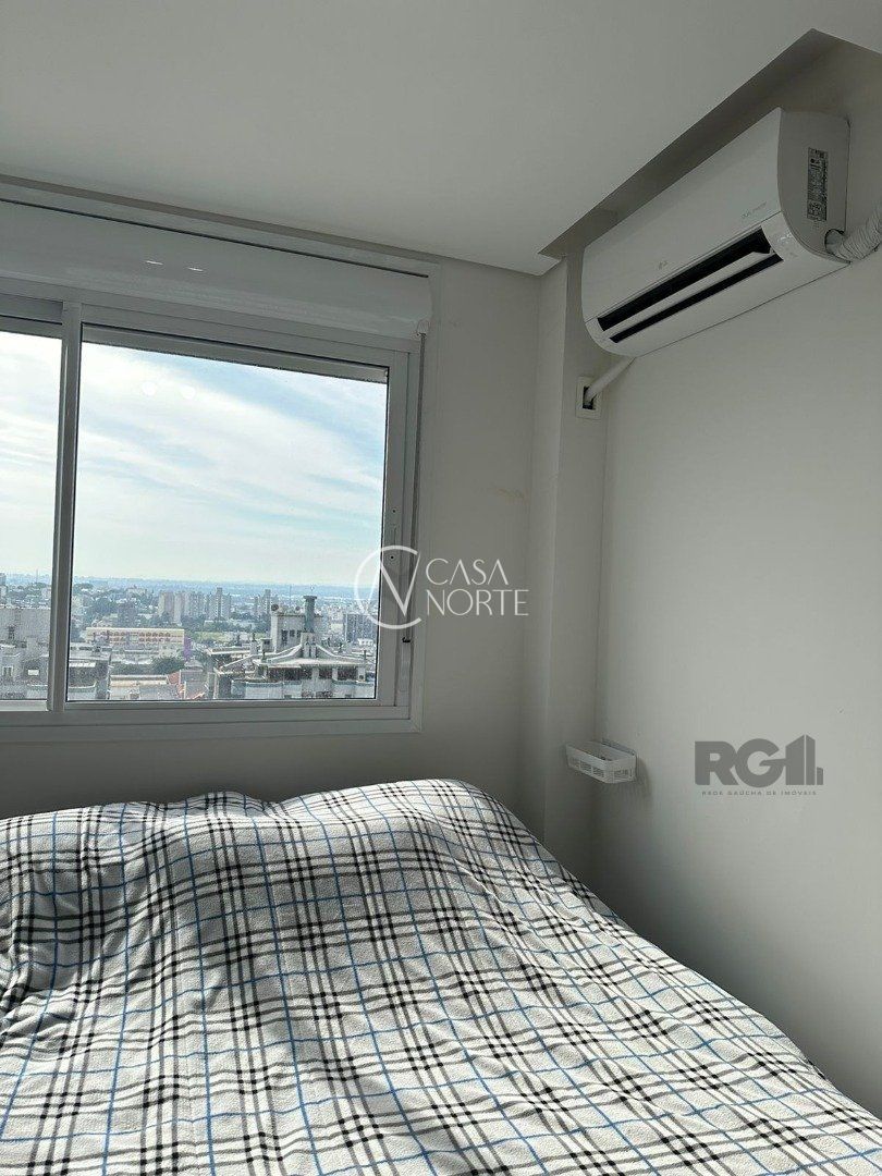 Lindo apartamento de 2 dormitórios, com 2 banheiros, sendo 1 suíte. Vista excelente do 12º andar, O apartamento vem com junker, piso em porcelanato, teto de gesso, churrasqueira, ar-condicionado, espelho com led na suíte e roupeiro duas portas grandes com espelho em ambas. Pega o sol pela manhã e início de tarde.