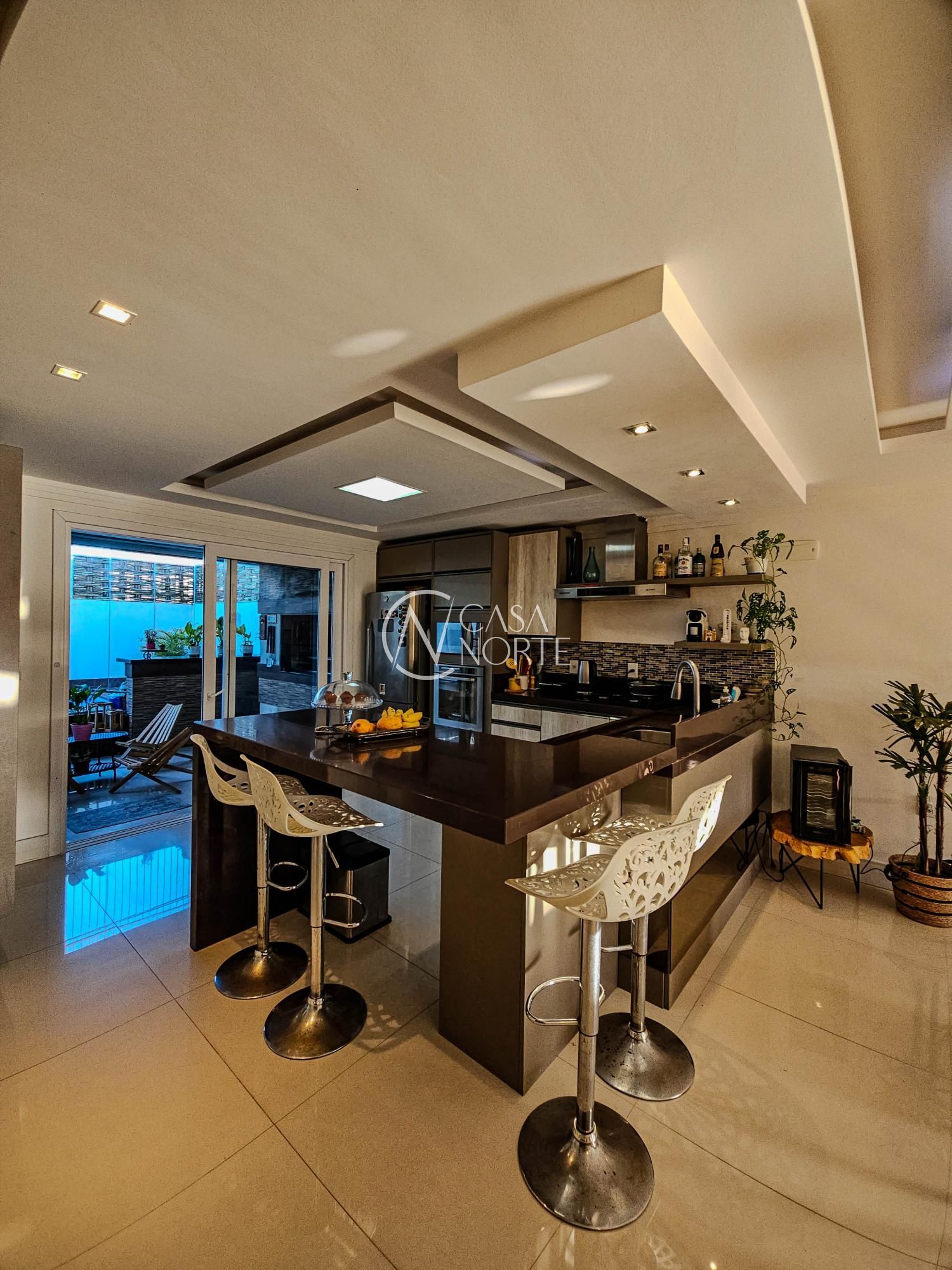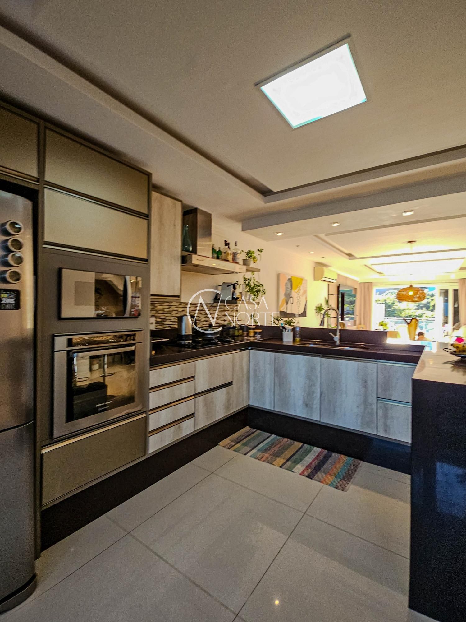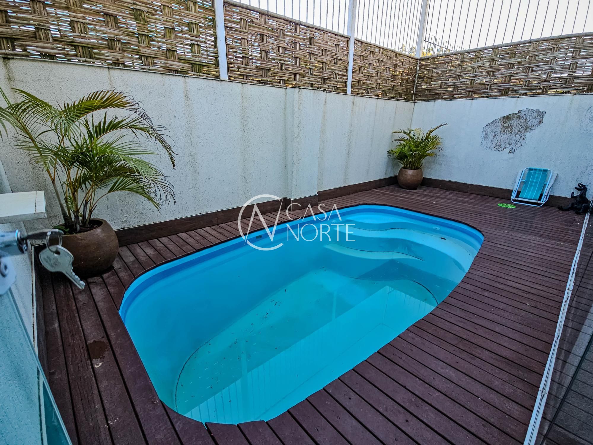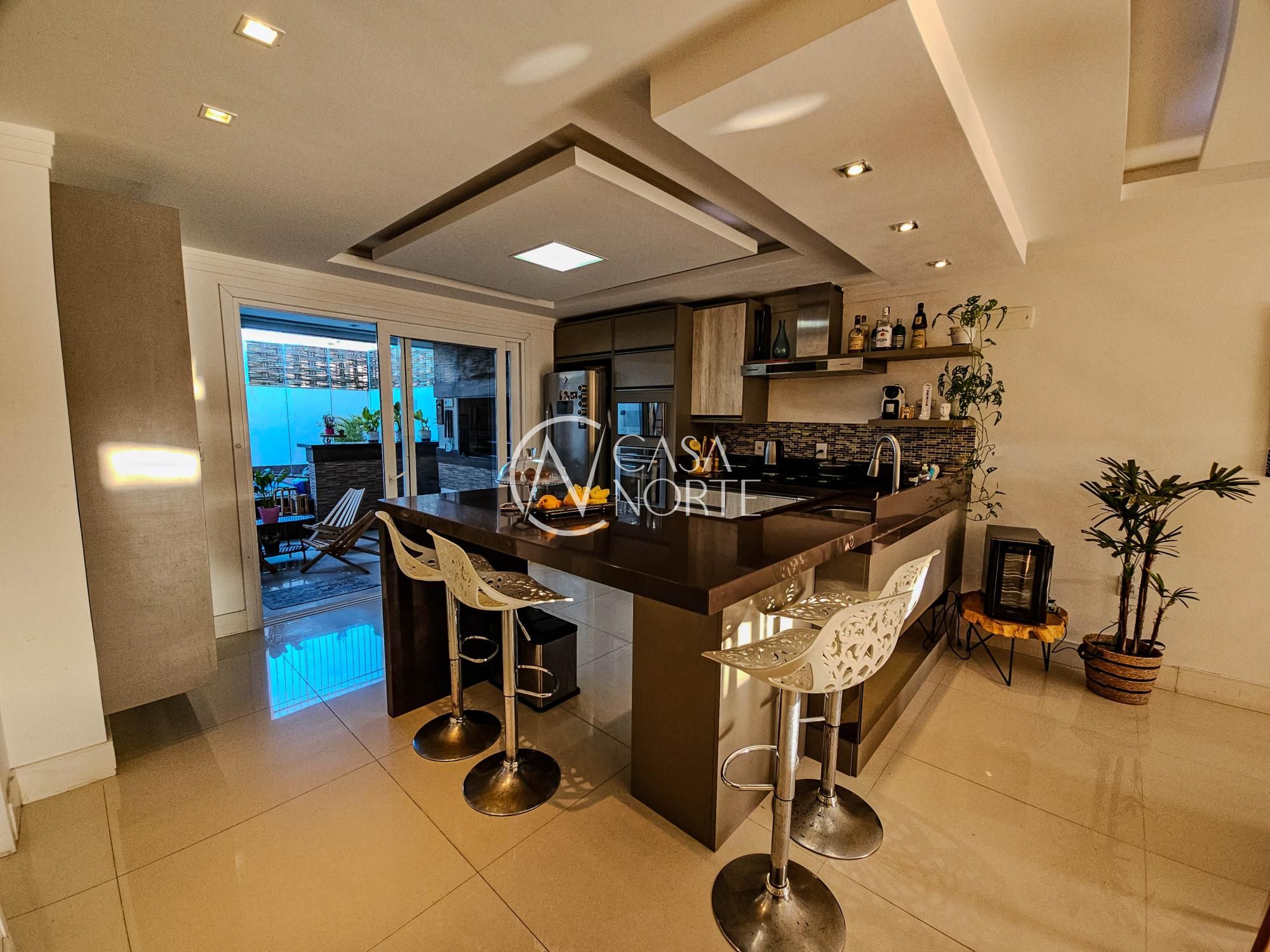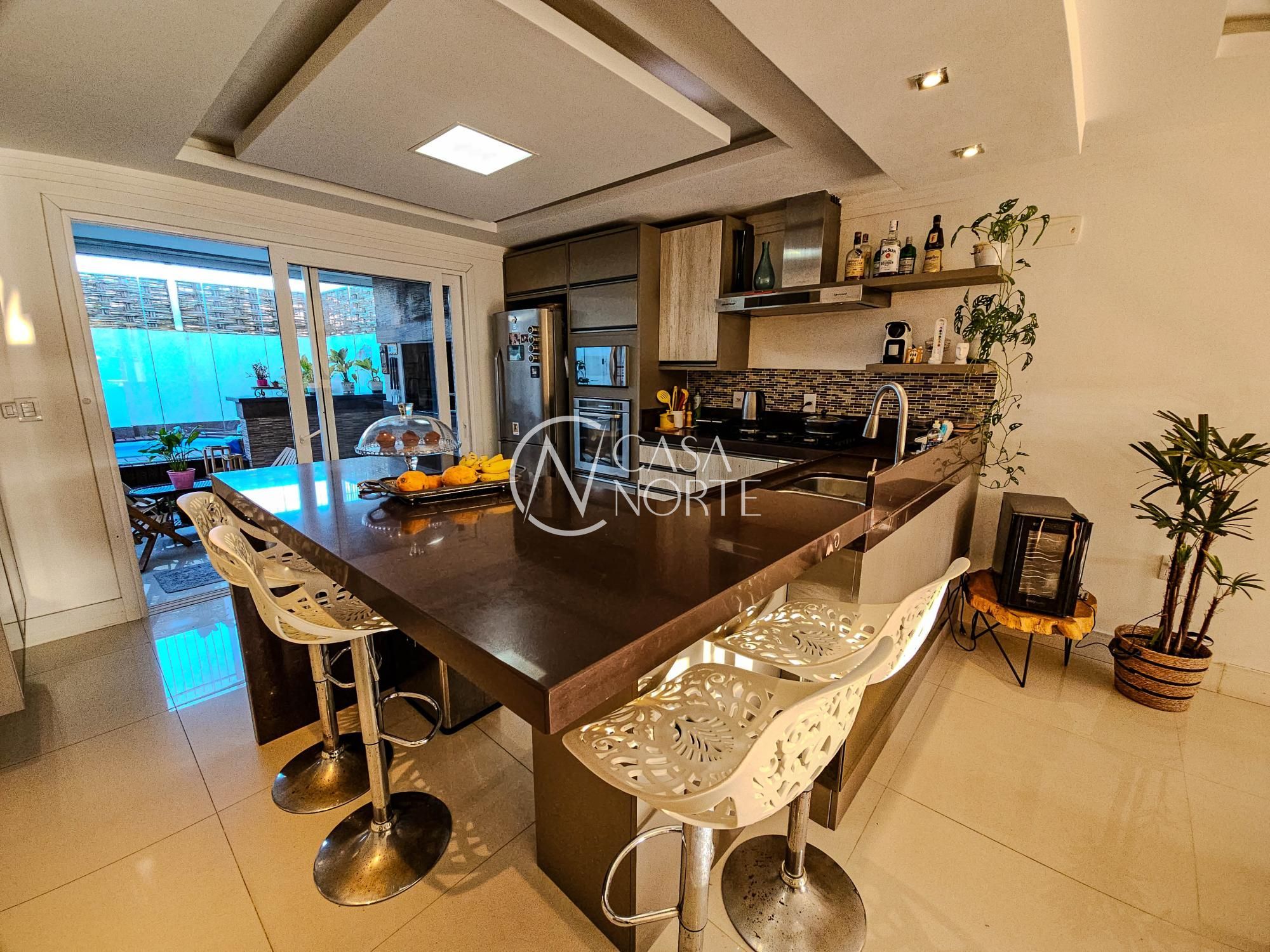 Aos fundos, churrasqueira em varanda gourmet fechada com vidros retráteis que a separam do ambiente do deck com piscina, tudo planejado e de muito bom gosto. Conta ainda com lavanderia, depósito amplo e garagem fechada para 2 veículos.