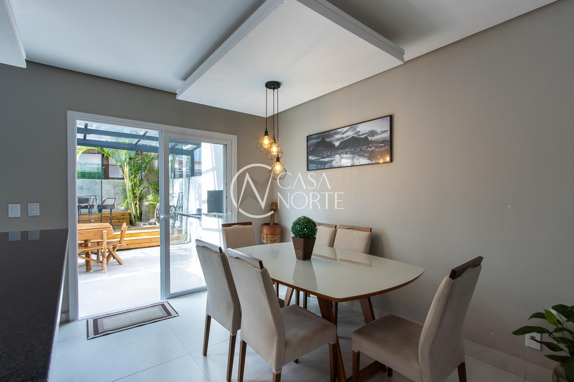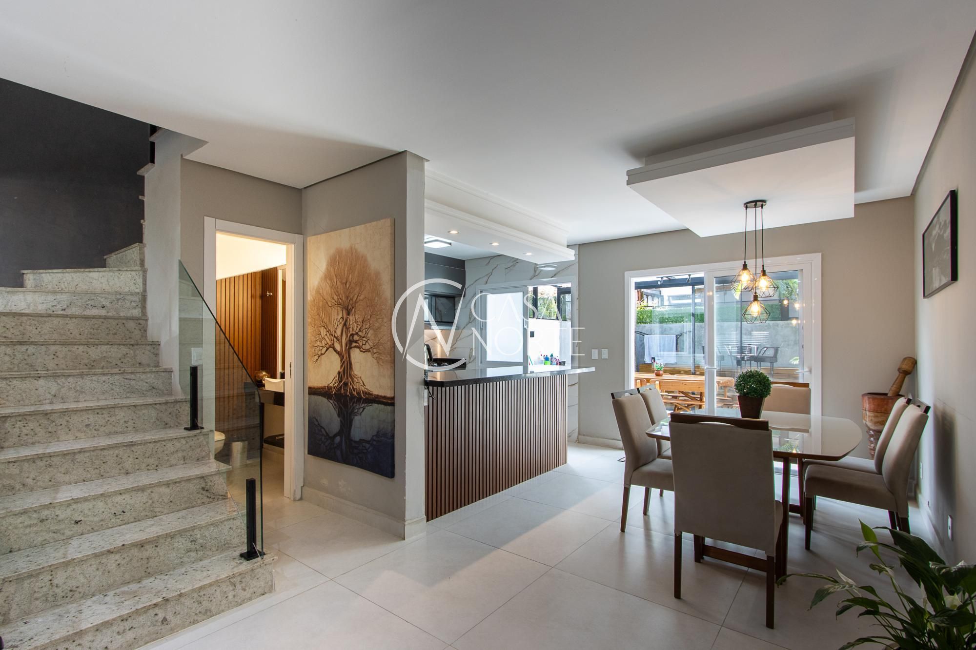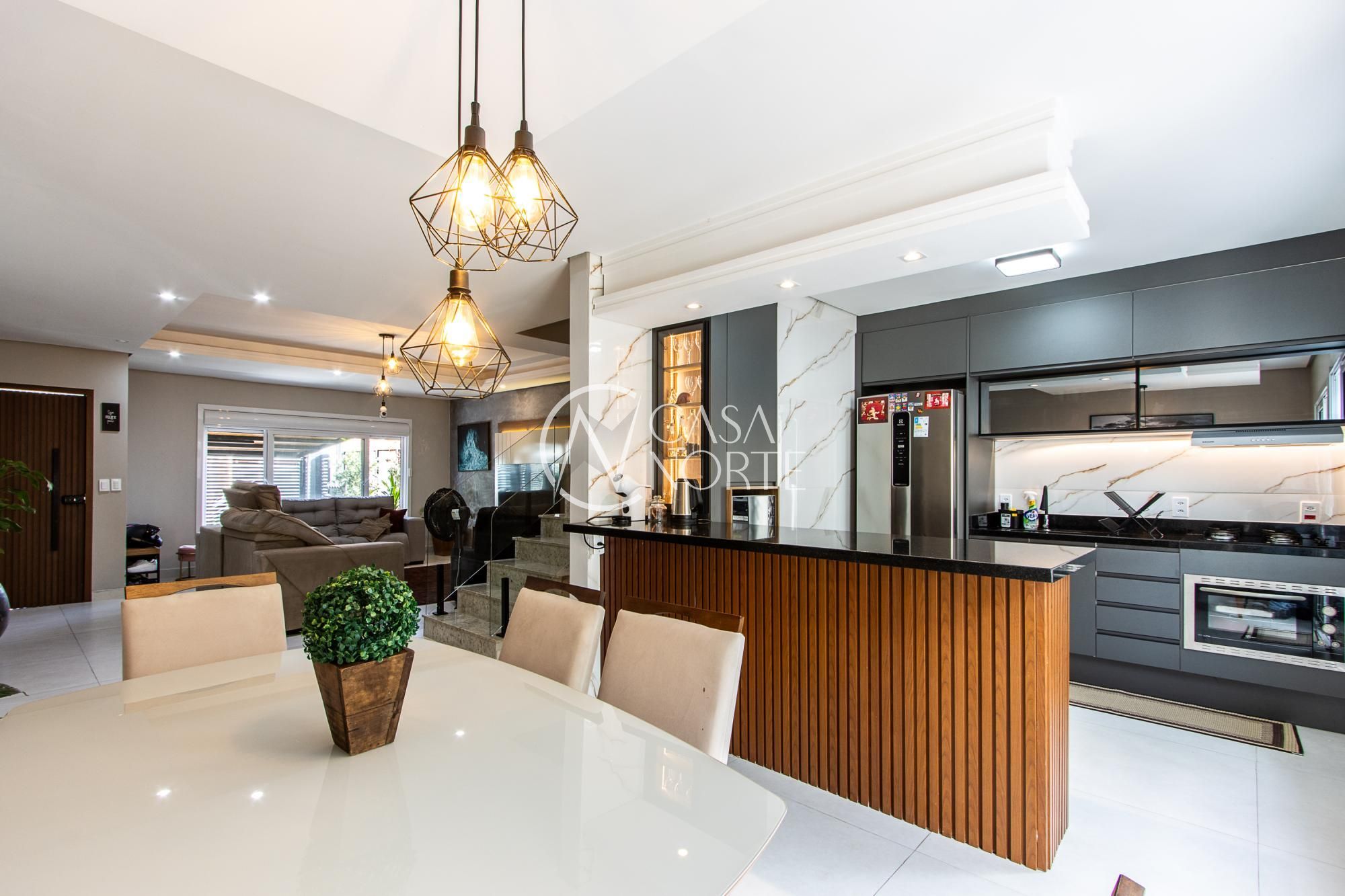 Linda casa mobiliada, com 3 dormitórios, sendo uma suíte e com aproximadamente 127,62m² privativos. Você pode contar também com um amplo living que integra a sala de estar à sala de jantar, lavabo, cozinha em conceito aberto e com móveis planejados, pátio privativo e com churrasqueira, banheiro social no segundo pavimento, além de uma vaga de garagem descoberta.