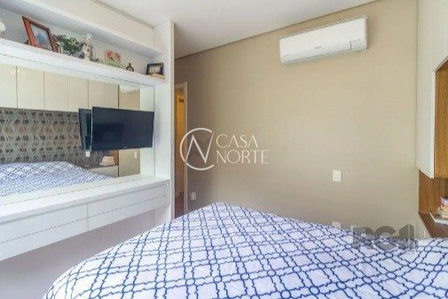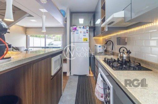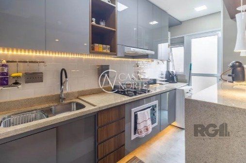 Casa impecável e mobiliada, com 3 niveis, possui 3 dormitórios sendo 1 suíte, 4 banheiros. 1º piso com dois ambientes integrados e uma cozinha americana projetada com tampos e bancadas em granito preto, lavabo com cuba esculpida em silestone, pátio com churrasqueira e um jardim de inverno com irrigação automática. 2º piso , 1 banheiro social, 3 dormitórios, 3º piso, 1 ampla sala para home-office, sala de cinema e um lavabo, 2 vagas de garagem.