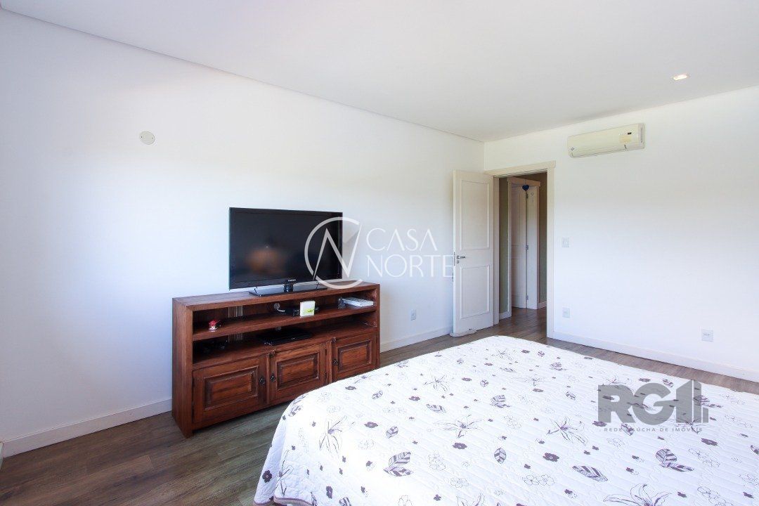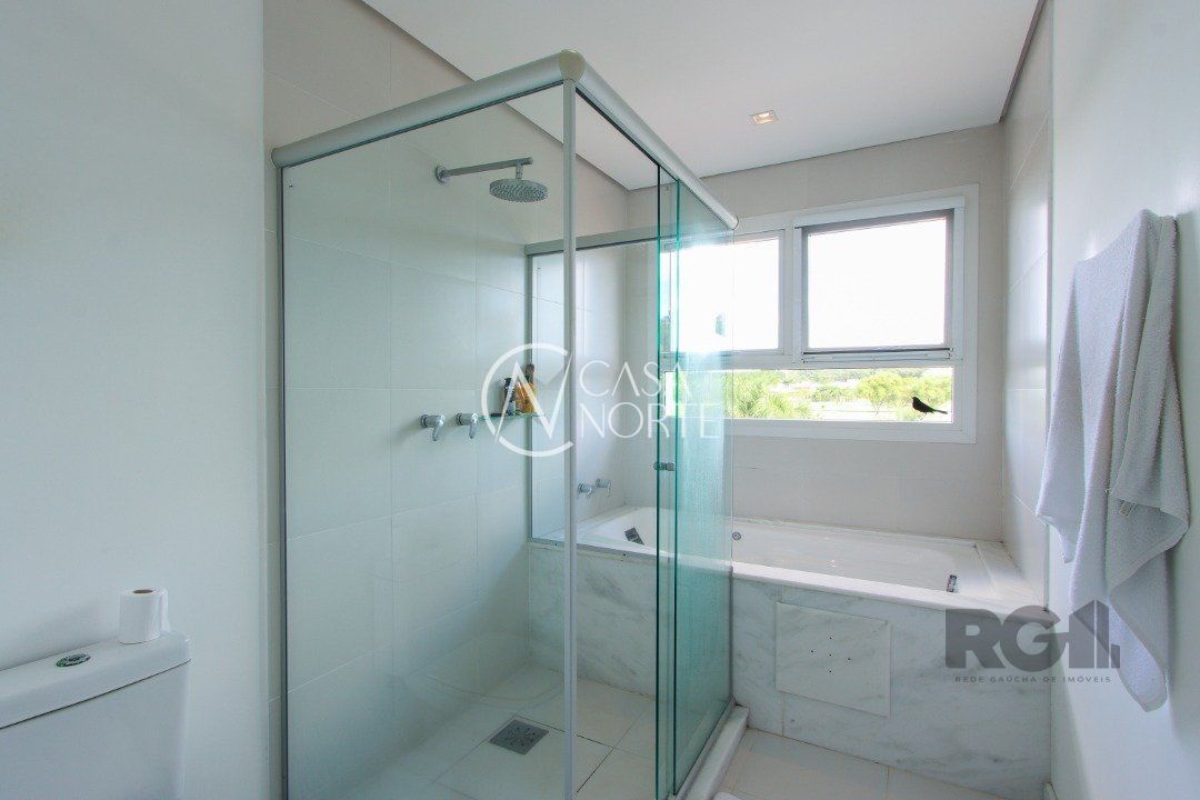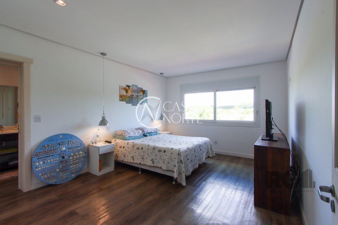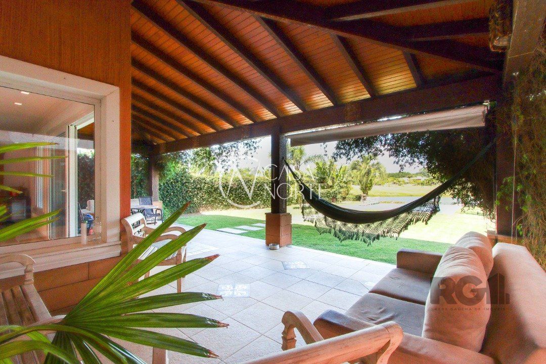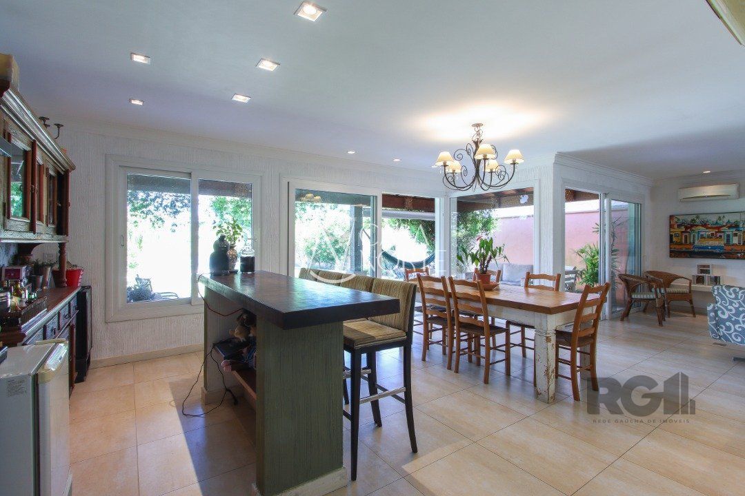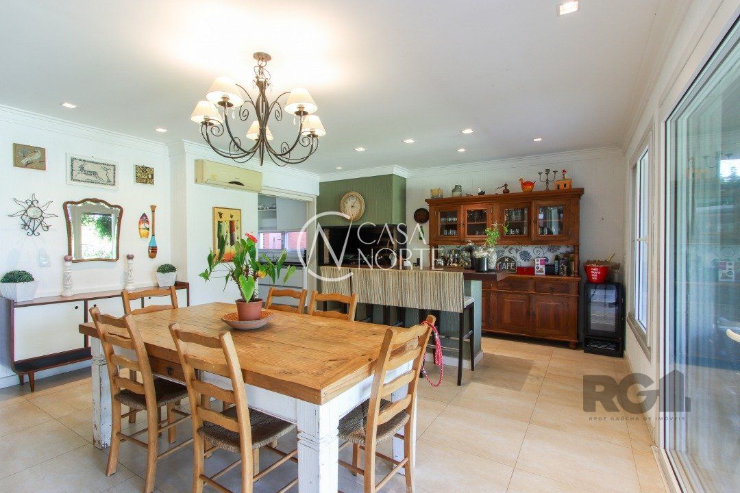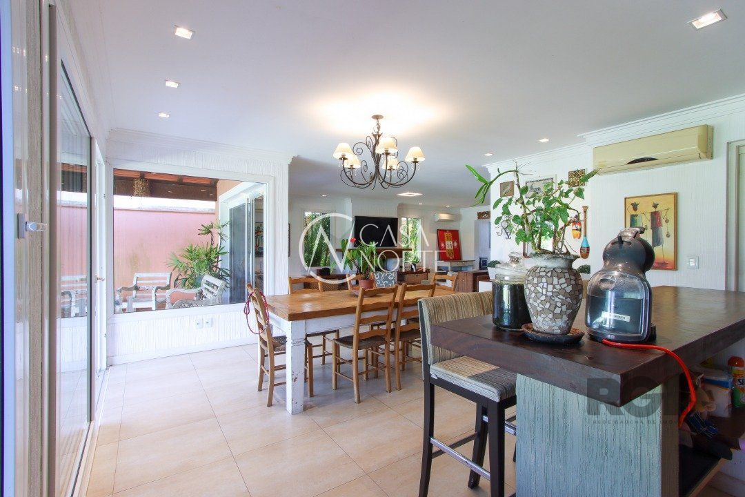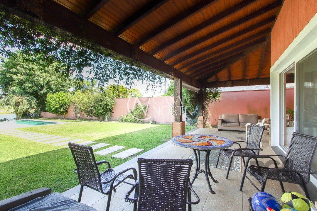 A área externa é um dos grandes destaques, com uma piscina de borda infinita à beira do lago, ideal para relaxar e apreciar a paisagem. Há também abrigo para quatro carros.