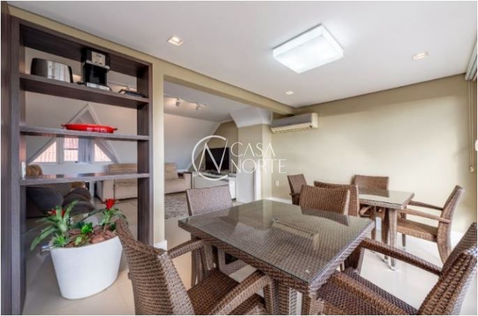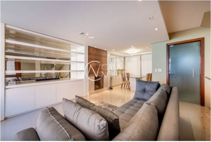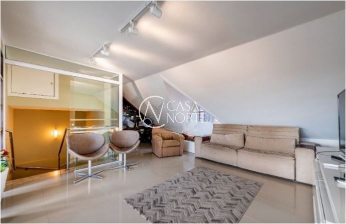 No último pavimento, o sótão surpreende com um living adicional e um espaço gourmet completo, ideal para momentos de lazer e confraternização, com uma vista deslumbrante para o Guaíba.
